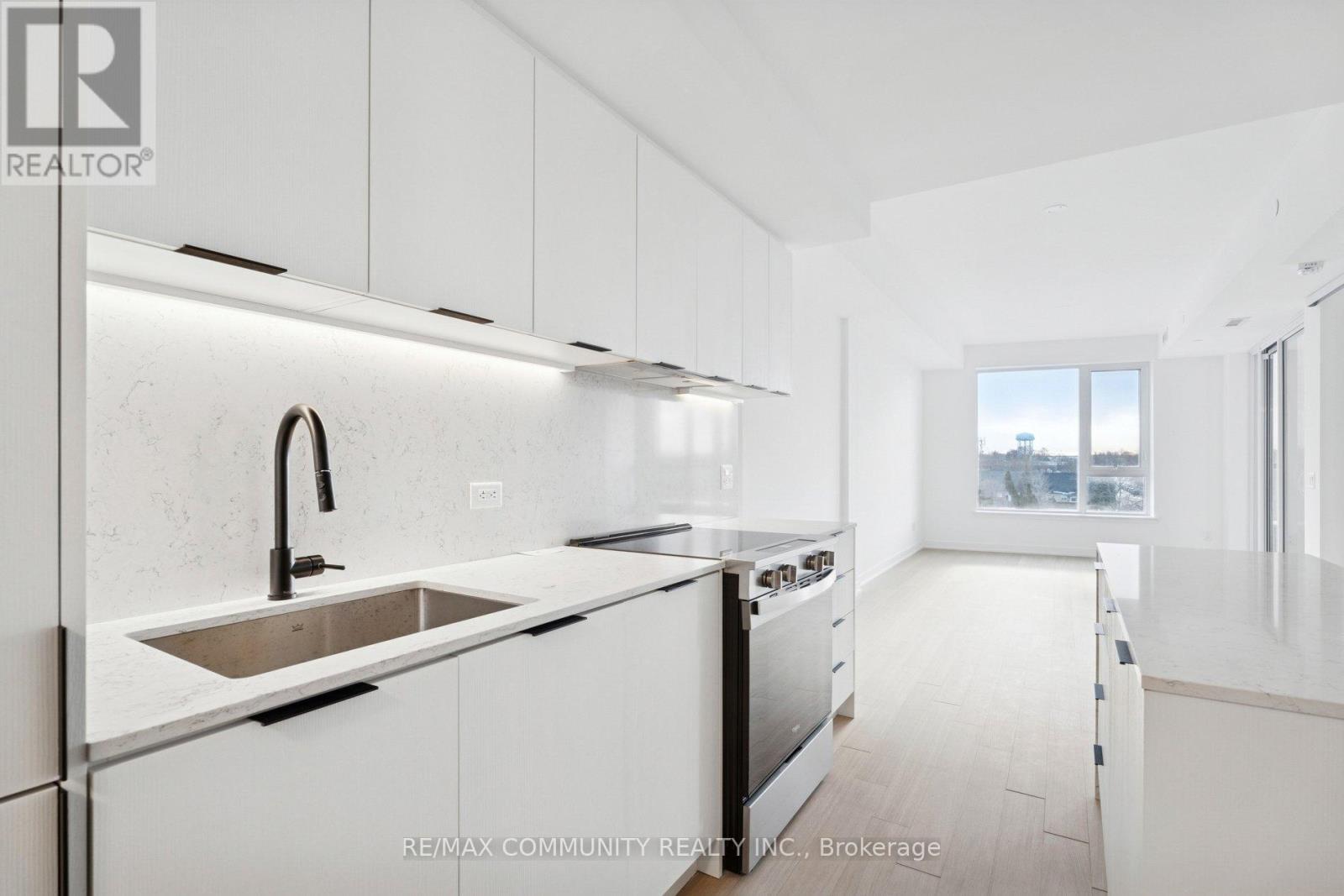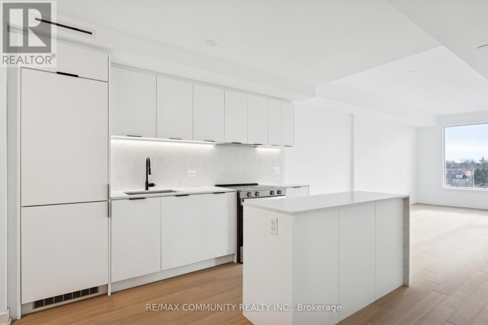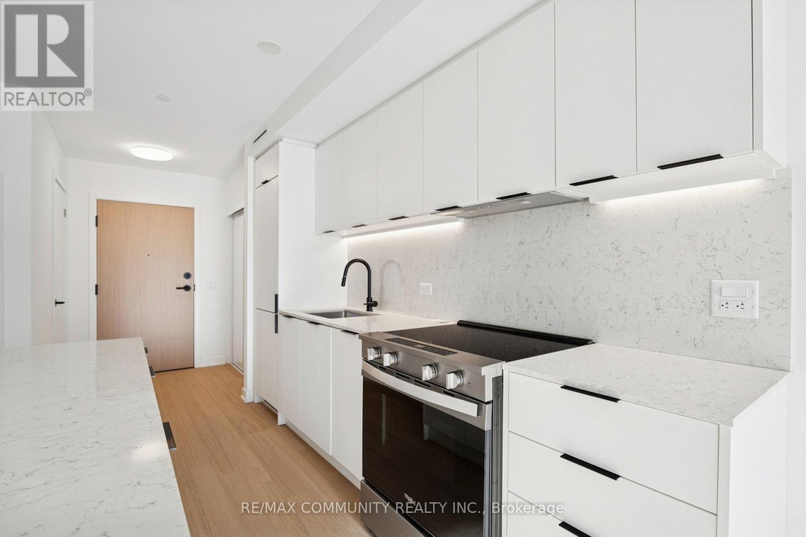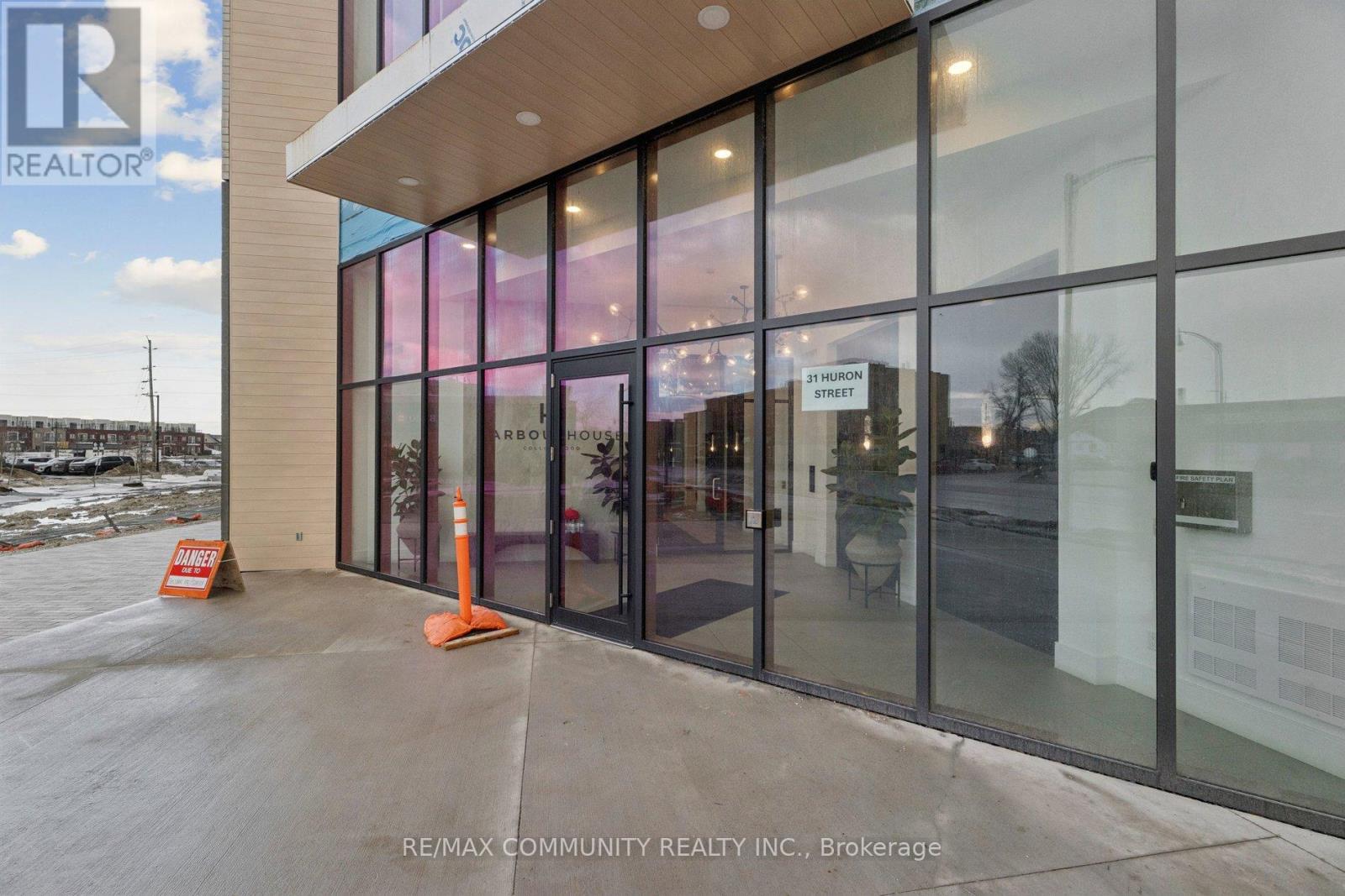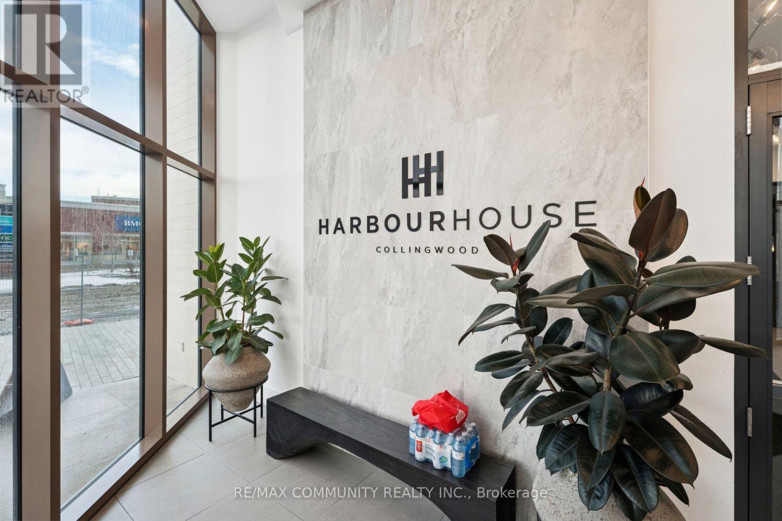 Exquisite never-lived-in 1 bed + den suite in the heart of Harbour House, Collingwood's premier waterfront condominium residence. Boasting approximately 745 sq ft of thoughtfully designed living space, this sophisticated suite features an open-concept layout with abundant natural light from oversized windows and seamless indoor-outdoor flow to your private balcony. The modern kitchen is finished with quartz countertops, integrated appliances, stylish cabinetry and a functional breakfast bar -- perfect for entertaining or everyday living. The spacious living/dining area connects to the balcony, extending your living space and providing views toward the vibrant downtown and waterfront. A serene primary bedroom offers comfort and convenience, while the versatile den creates an ideal home office, guest nook or extra storage. Premium suite features include 9-ft ceilings, contemporary finishes and an underground parking space with private storage locker. Residents of Harbour House enjoy an inspired amenity collection including a fitness studio, rooftop party room and terrace with panoramic water views, guest suites, dedicated pet wash and gear wash room -- all just steps from the harbour, trails, boutique shops and dining that define Collingwood's vibrant lifestyle. (id:4555)