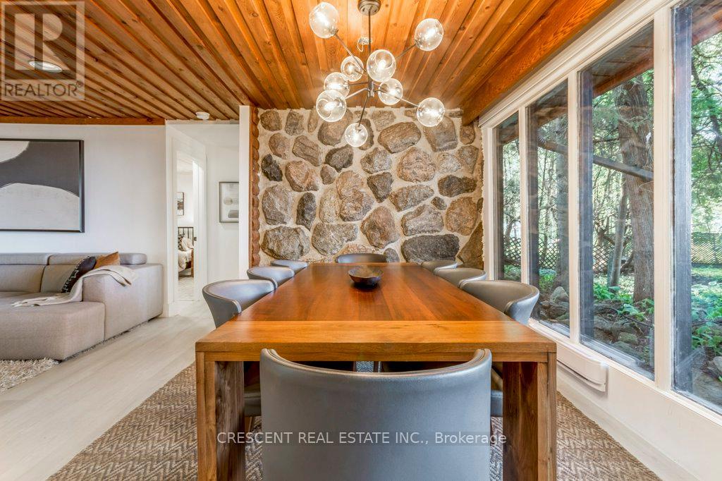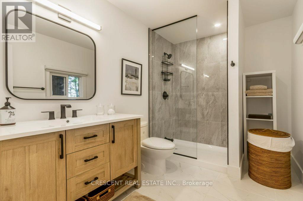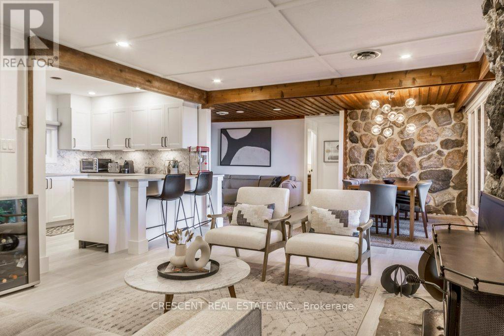 Discover the ultimate year-round, four season gem - a spacious, fully furnished waterfront getaway nestled in a peaceful, serene, private wooded setting along Georgian Bay with lots of trees in the friendly town of Collingwood. This fully furnished ~1750 sq ft of living space detached bungalow retreat welcomes you to embrace the beauty of autumn & winter, where golden leaves give way to snow-covered treetops & the bay transforms into a shimmering winter wonderland. Gather w/family or friends (up to 10 guests, comfortably) for a cozy stay - curl up by the crackling wood-burning fireplace as snowflakes drift outside, or walk to the private beach shore to take in breathtaking lake views under crisp seasonal skies. Spend evenings, roasting snacks, sharing laughter & warm drinks around the firepit, in the gorgeous hot tub under the stars, or enjoy outdoor dining on the back patio. Adventure awaits nearby with various outdoor activities - explore scenic hiking, biking, and ski trails at Blue Mountain, explore the Bruce Trail, or unwind at the Scandinave Spa after a day of activities. Inside, you'll find comfort & convenience in every detail: WiFi & TV w/Streaming Apps for movie nights, a Hi-Tech Security System w/outdoor cameras for peace of mind, & an abundance of cupboards & closets to keep your stay organized. Kayaks & a paddle board await for those mild autumn days, while winter invites peaceful moments by the bay, watching waves roll gently against the icy shore. Located minutes from Collingwood's vibrant dining, shopping, bars, & entertainment scene, this pet-friendly getaway blends tranquility w/easy access to year-round fun. Parking for 5 vehicles means there is room for everyone to join in creating cherished memories. Offered for 30+ day stays, this exceptional property invites you to experience comfort, connection & the pure magic of Georgian Bay through every season. Minimum 30 day vacation rental - do not walk the lot. (id:4555)