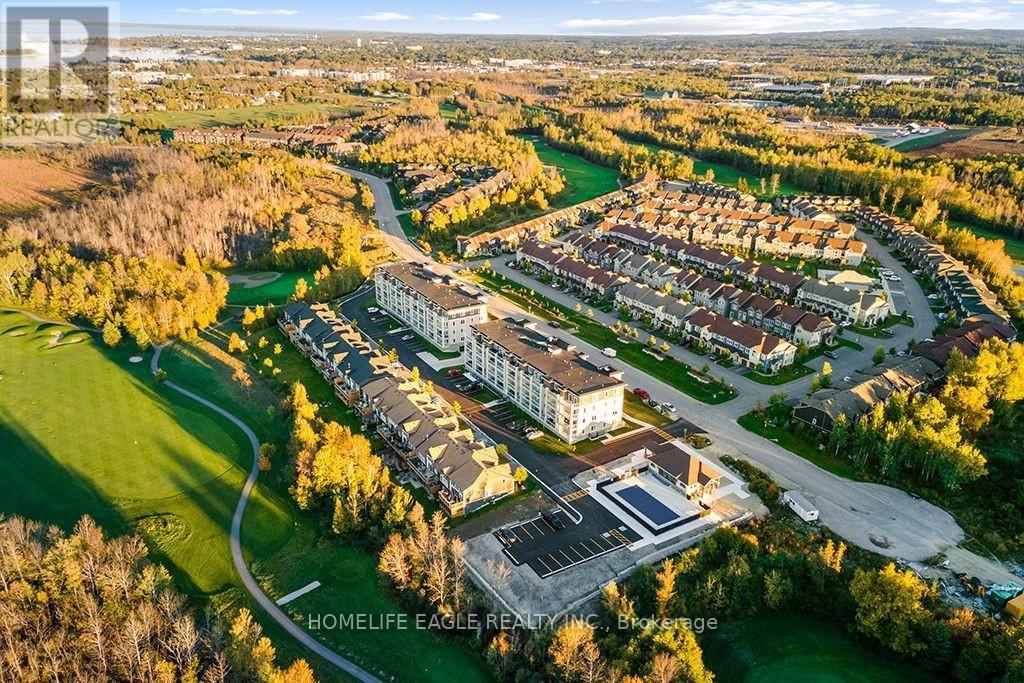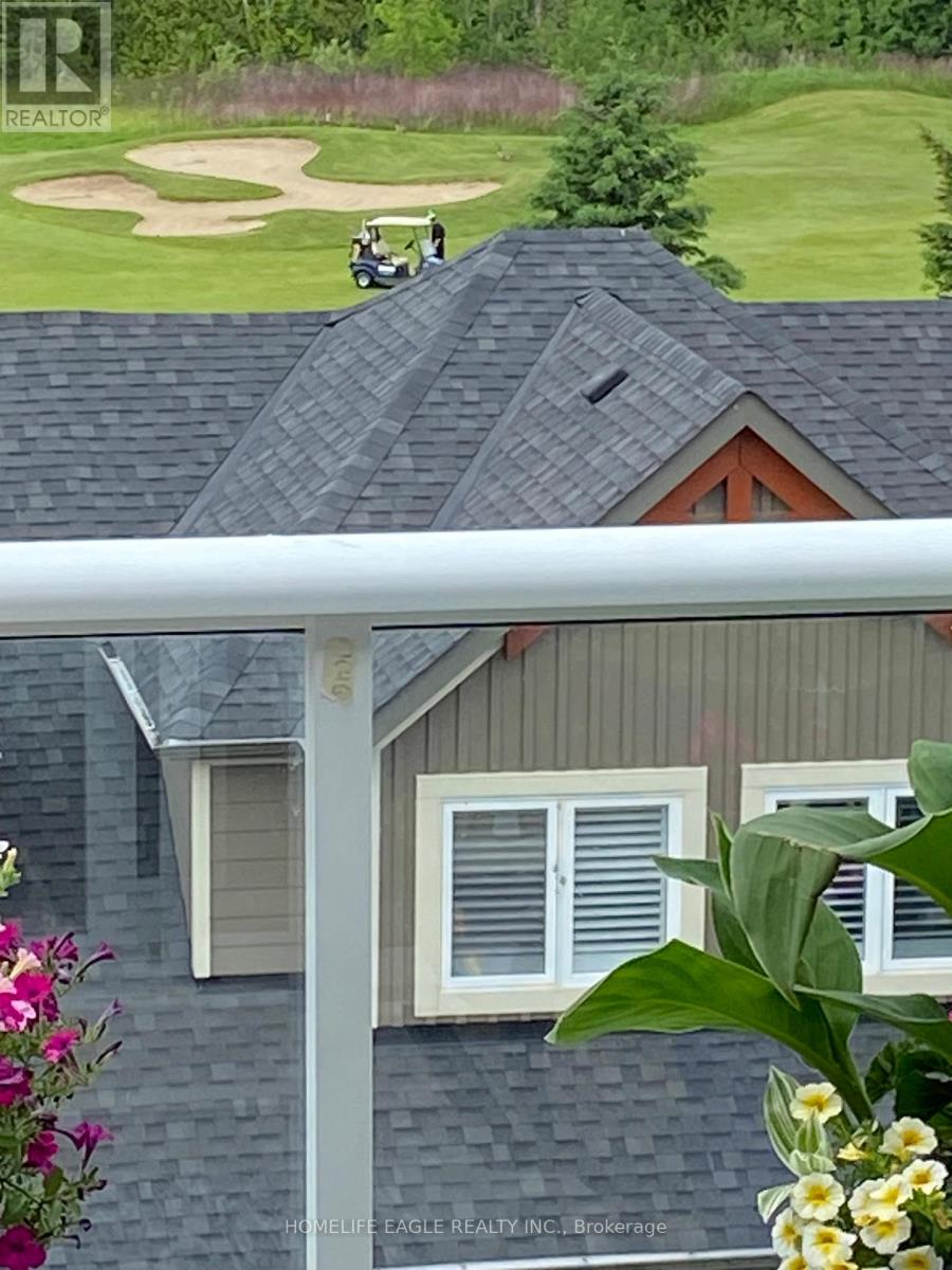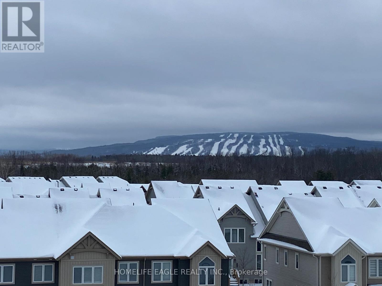 The View - this brand new building in the Cranberry Golf Course community doesn't need an introduction. Top-floor unit with breathtaking views of the golf course and Blue Mountain. This 887 sq. ft. suite features 2 spacious bedrooms, 2 full bathrooms, and a large 17' x 8' terrace balcony with glass railings, BBQ gas line, water bib, light fixture, and electrical outlet - ideal for four-season living. The unit offers upgraded flooring in the main living areas, 9-foot ceilings, smooth ceilings in the kitchen and bathrooms, and California knockdown ceilings throughout. The gourmet kitchen includes granite countertops, under-cabinet lighting, an upgraded under-mount stainless steel sink, gas stove, venting microwave, and brand-new appliances. The primary bedroom features a walk-in closet and ensuite with granite countertop, while the second bedroom includes a regular closet and its own ensuite with granite countertop and a glass walk-in shower. Additional features include an oversized attached storage locker next to the entry door and one indoor parking space. Amenities include an outdoor pool, clubhouse, and gym. Enjoy true bungalow-style, one-level living with self-controlled heating and air conditioning, plus an open-air terrace balcony that feels like a private backyard in the sky. (id:4555)