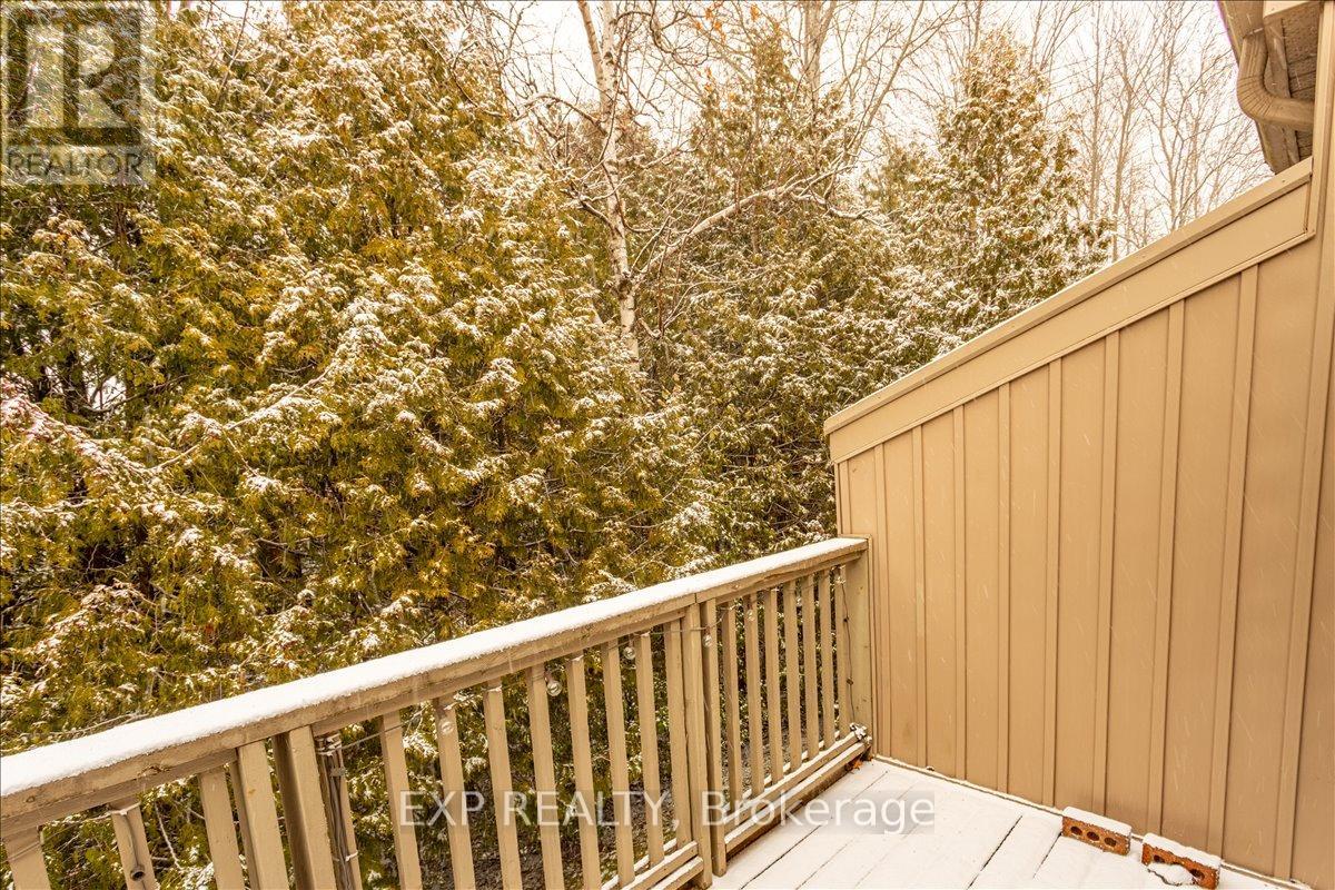Rarely offered 4-bedroom, 3-bathroom end-unit townhome in the heart of Cranberry Village, perfectly positioned for Collingwood's four-season lifestyle. Backing onto trees with a desirable west exposure, this bright, private home offers warm afternoon light and a peaceful, natural setting. The open-concept main floor is ideal for entertaining, featuring granite kitchen counters, a gas fireplace, and updated windows and sliding patio doors that enhance comfort and efficiency. Upstairs, the spacious primary suite includes a 4-piece ensuite with a jetted tub and a walk-out to a private deck - perfect for morning coffee or relaxing after a day outdoors. Three additional bedrooms provide flexible space for guests, family, or a home office, along with an updated bathroom with a walk-in shower. Located just minutes from Blue Mountain skiing, Georgian Trail, biking, hiking, golf, marinas, and Georgian Bay beaches, this low-maintenance home is ideal for full-time living or a weekend retreat. Designated parking spot and guest parking. (id:4555)