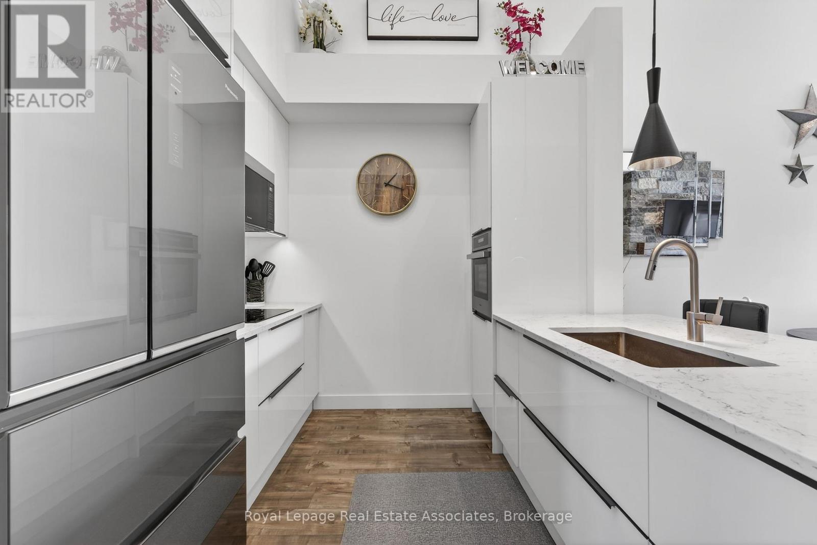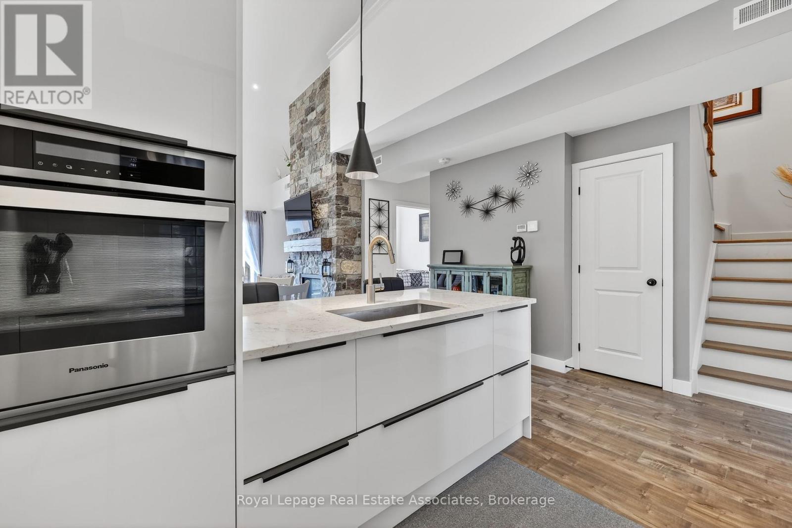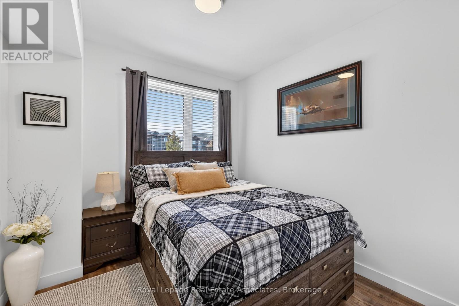 Four-Season Living at Its Finest in Mountain House. Welcome to this beautifully maintained, top-floor loft condo in one of Blue Mountain's most desirable communities. Freshly painted, this turnkey 3-bedroom, 2-bathroom retreat is ready for enjoyment - simply arrive and start living the lifestyle.The bright, open-concept layout is highlighted by soaring vaulted ceilings, expansive windows, and a warm gas fireplace that creates an inviting space to relax after a day outdoors. The modern kitchen features built-in appliances and flows seamlessly into the living and dining areas, while stylish laminate flooring adds a clean, contemporary feel throughout. Step outside to your private balcony and take in partial escarpment views - the perfect spot for morning coffee or evening unwinding.Designed with adventure in mind, the unit includes convenient ski and snowboard storage at the entrance plus the rare bonus of two exclusive-use parking spaces, a standout feature within Mountain House.Enjoy resort-style amenities just steps from your door, including a year-round heated outdoor pool and hot tub, fitness centre with yoga studio, and a welcoming après-ski lounge with gas fireplace. Ideally located along the trail system with easy access to Blue Mountain Village, private and public ski clubs, golf courses, Scandinave Spa, beaches, and downtown Collingwood.Whether you're searching for a weekend escape, full-time lifestyle property, or income-generating investment, this exceptional condo offers comfort, convenience, and year-round appeal. (id:4555)