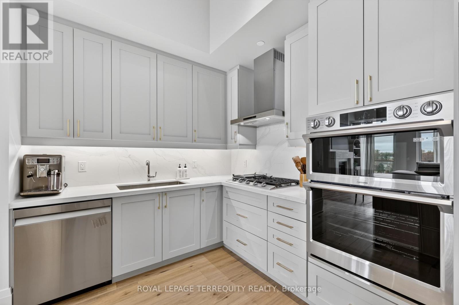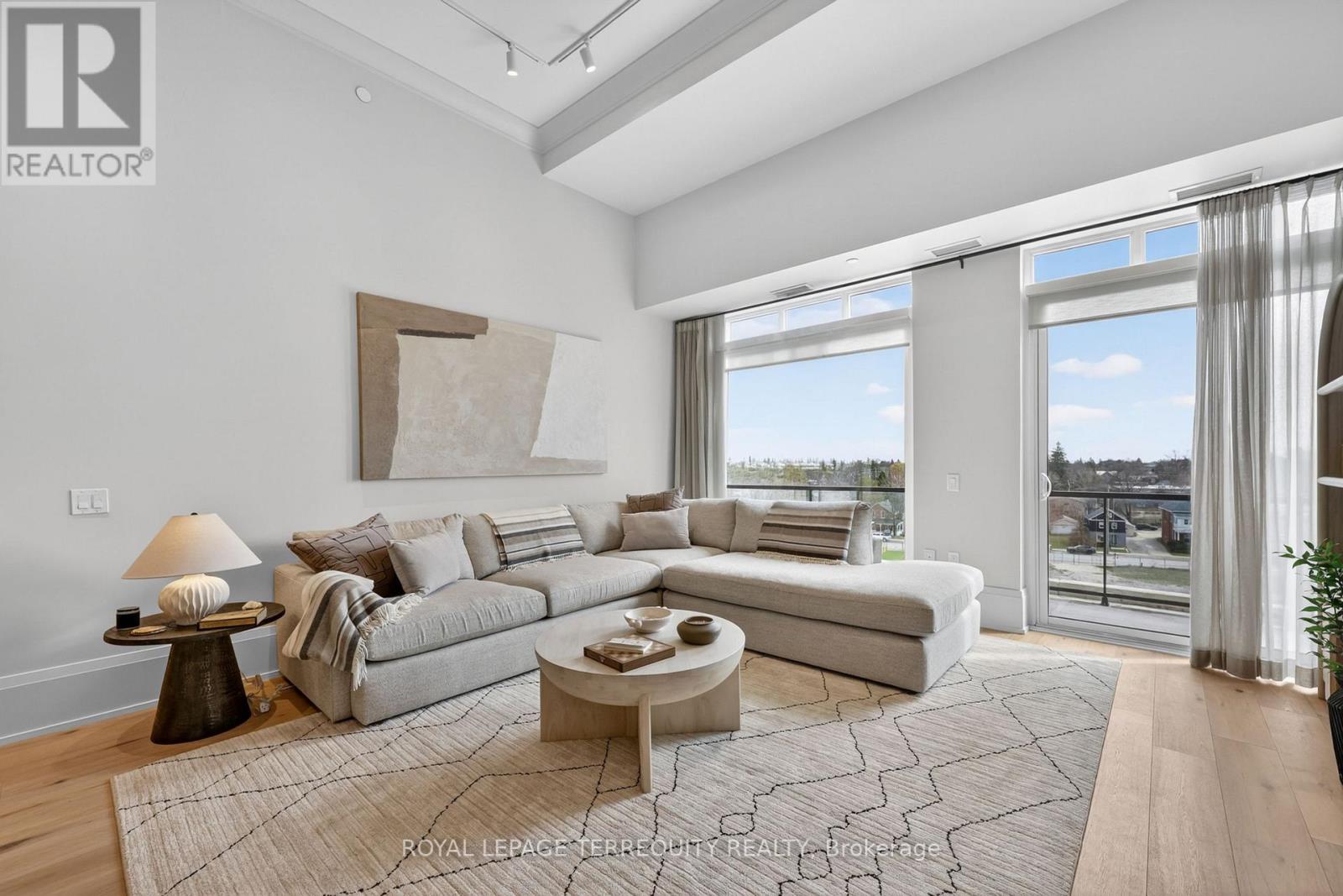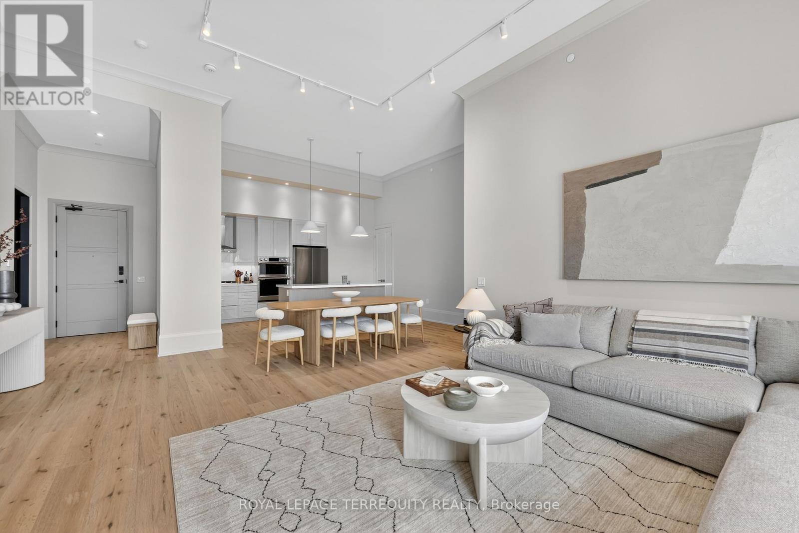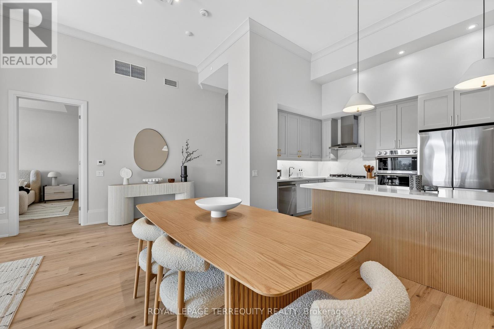 Welcome to Penthouse 615 at Monaco - a landmark of sophisticated living in historic downtown Collingwood! Experience elevated living in this Architectural Digest-inspired penthouse, thoughtfully designed for the most discerning buyer. Spanning 1,545sf., this exceptional 2+1 bed, 2 bath, residence offers a bright, expansive layout with breathtaking panoramic views of the Niagara Escarpment, Blue Mountain, & Georgian Bay. Perched above the heart of Collingwood, this brand-new, never-lived-in suite blends luxury, comfort, and a true 4-season lifestyle. Step inside to soaring 13 ft ceilings, rich hardwood flooring throughout, and upgraded solid-core 8 ft doors that create an immediate sense of grandeur. The open-concept living and dining area is anchored by a cozy gas fireplace and framed by oversized windows, seamlessly extending to a spectacular west-facing over sized terrace with a gas BBQ hookup - perfect for entertaining or enjoying sunsets. The designer kitchen is a showpiece, featuring upgraded cabinetry, premium s/s appliances, a gas stove, stone countertops, & b/splash. Over $120,000 in upgrades include crown molding, pot lights, custom window treatments, designer lighting, dimmers, & refined hardware throughout. Retreat to the primary suite with a spacious walk-in closet and spa-inspired ensuite featuring a freestanding soaker tub, glass-enclosed shower, & elegant finishes. The 2nd bedroom boasts a double closet along with large windows. The den offers the perfect backdrop for your WFH needs or third bedroom. Includes two underground parking spots & a large storage locker. Monaco offers virtual concierge, spectacular lounge, state of art fitness centre, party room, & stunning rooftop terrace. Steps to Collingwood's vibrant downtown with shops, dining, cafés, theatres, farmers' markets, waterfront promenade and marina. Enjoy a 4-season lifestyle: skiing, snowshoeing and trails in winter; boating, hiking, golf and beaches in summer - all of this just mins away! (id:4555)
