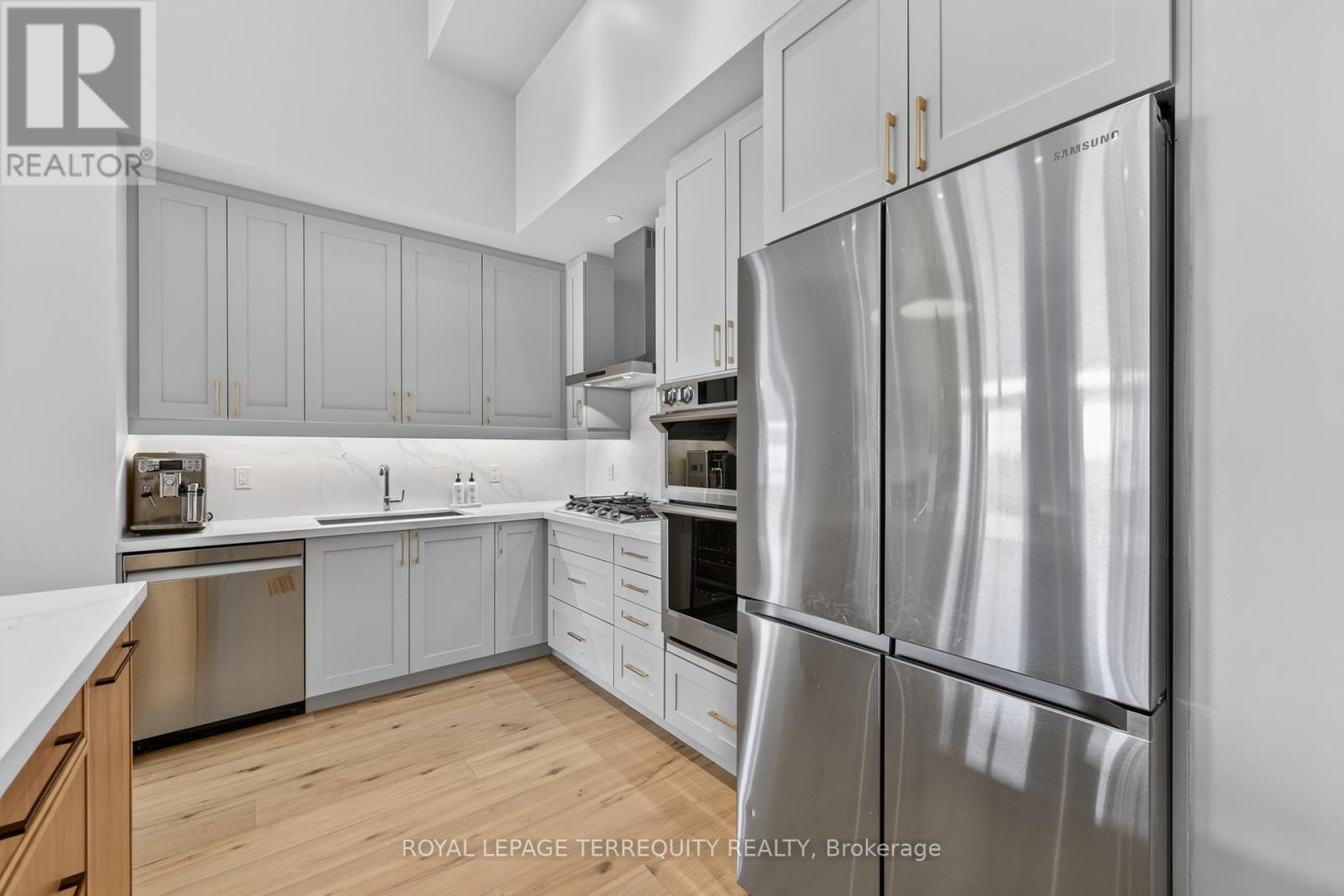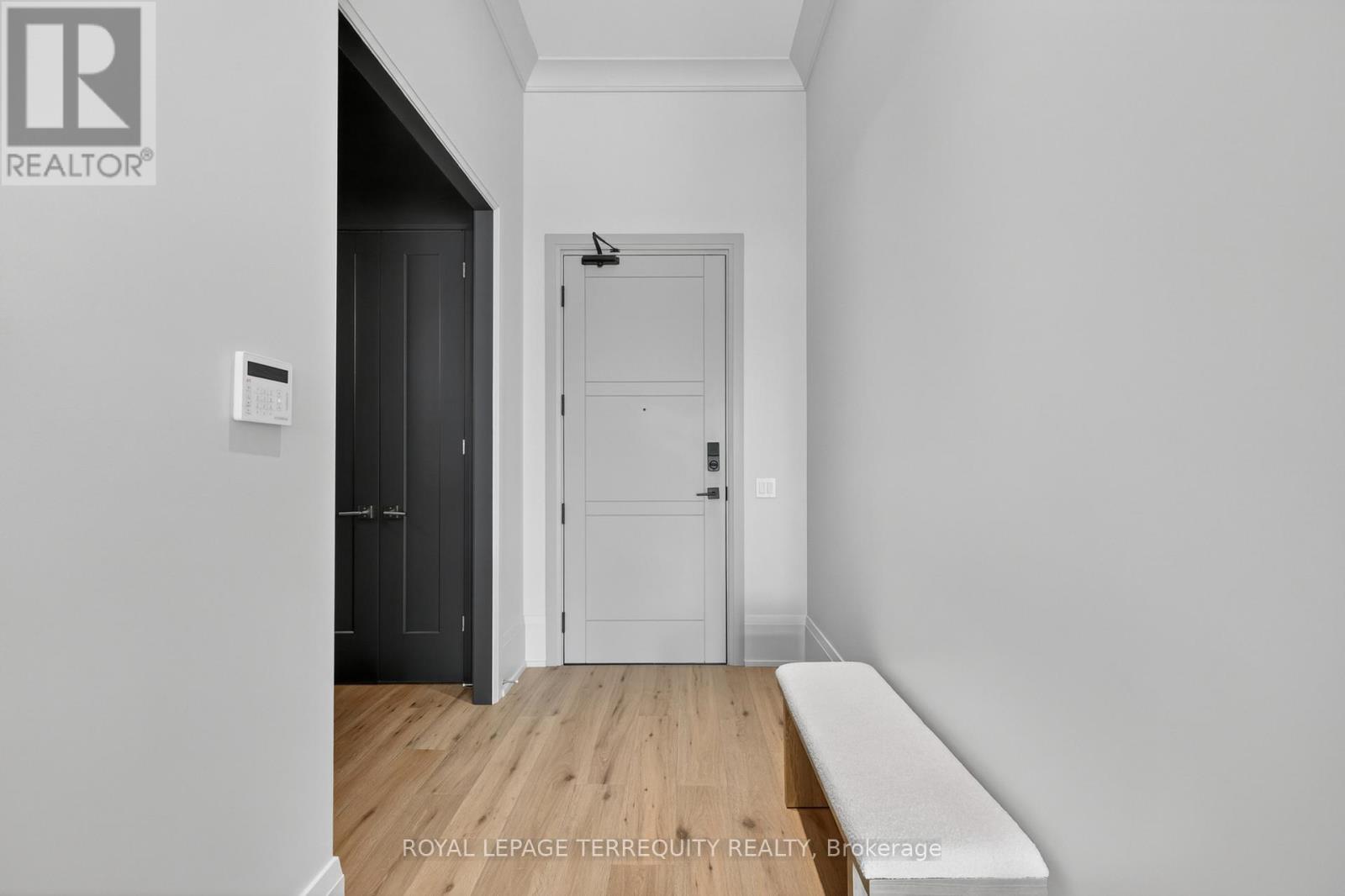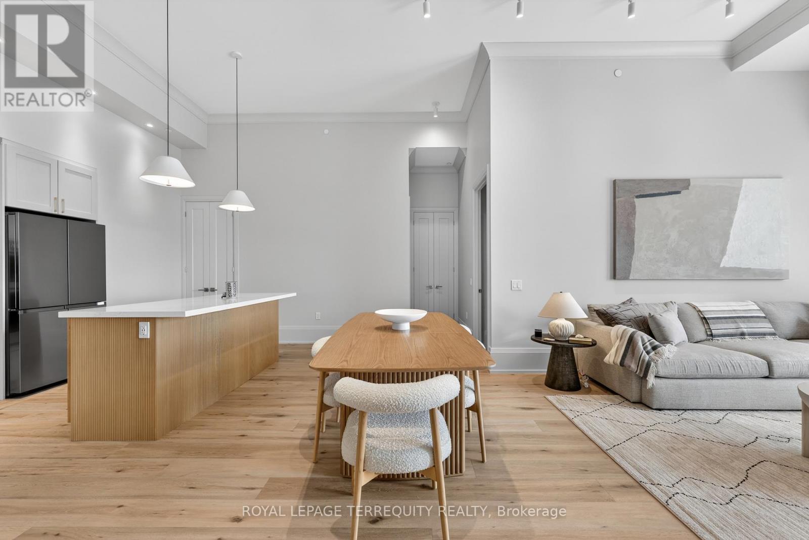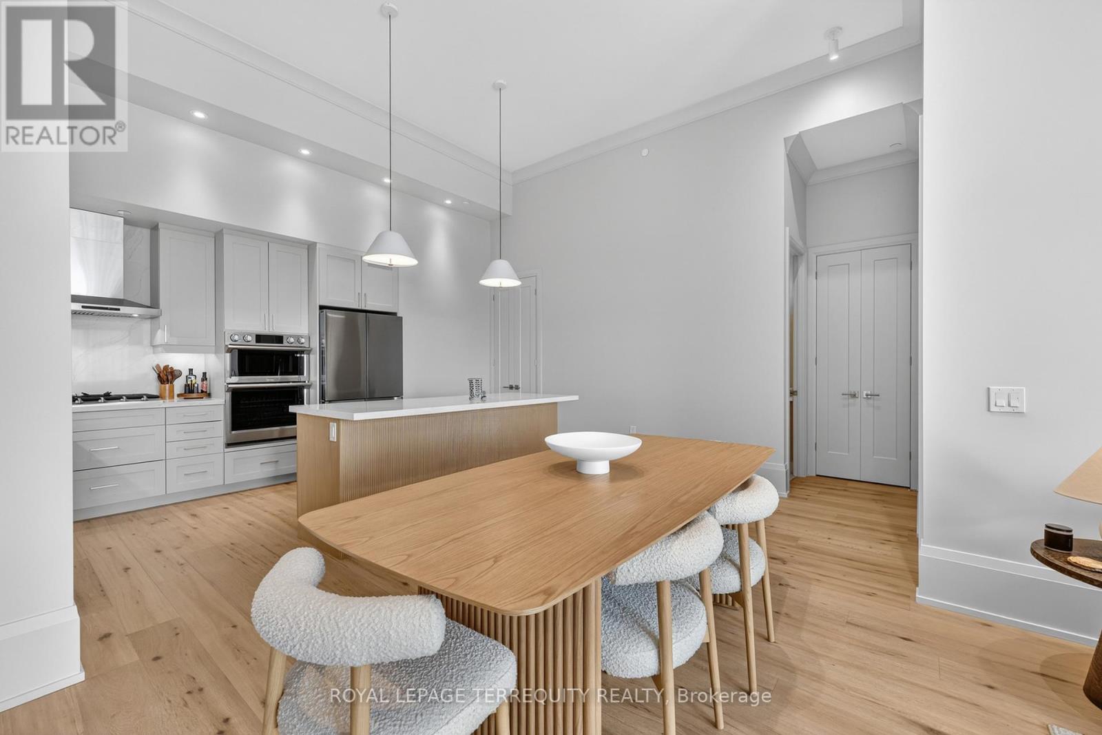 Welcome to Penthouse 615 at Monaco - a landmark of sophisticated living in historic downtown Collingwood! Experience elevated living in this Architectural Digest-inspired penthouse, thoughtfully designed for the most discerning buyer. Spanning 1,545sf., this exceptional 2+1 bed, 2 bath, residence offers a bright, expansive layout with breathtaking panoramic views of the Niagara Escarpment, Blue Mountain, & Georgian Bay. Perched above the heart of Collingwood, this brand-new, never-lived-in suite blends luxury, comfort, and a true 4-season lifestyle. Step inside to soaring 13 ft ceilings, rich hardwood flooring throughout, and upgraded solid-core 8 ft doors that create an immediate sense of grandeur. The open-concept living and dining area is anchored by a cozy gas fireplace and framed by oversized windows, seamlessly extending to a spectacular west-facing over sized terrace with a gas BBQ hookup - perfect for entertaining or enjoying sunsets. The designer kitchen is a showpiece, featuring upgraded cabinetry, premium s/s appliances, a gas stove, stone countertops, & b/splash. Over $120,000 in upgrades include crown molding, pot lights, custom window treatments, designer lighting, dimmers, & refined hardware throughout. Retreat to the primary suite with a spacious walk-in closet and spa-inspired ensuite featuring a freestanding soaker tub, glass-enclosed shower, & elegant finishes. The 2nd bedroom boasts a double closet along with large windows. The den offers the perfect backdrop for your WFH needs or third bedroom. Includes two underground parking spots & a large storage locker. Monaco offers virtual concierge, spectacular lounge, state of art fitness centre, party room, & stunning rooftop terrace. Steps to Collingwood's vibrant downtown with shops, dining, cafés, theatres, farmers' markets, waterfront promenade and marina. Enjoy a 4-season lifestyle: skiing, snowshoeing and trails in winter; boating, hiking, golf and beaches in summer - all of this just mins away! (id:4555)