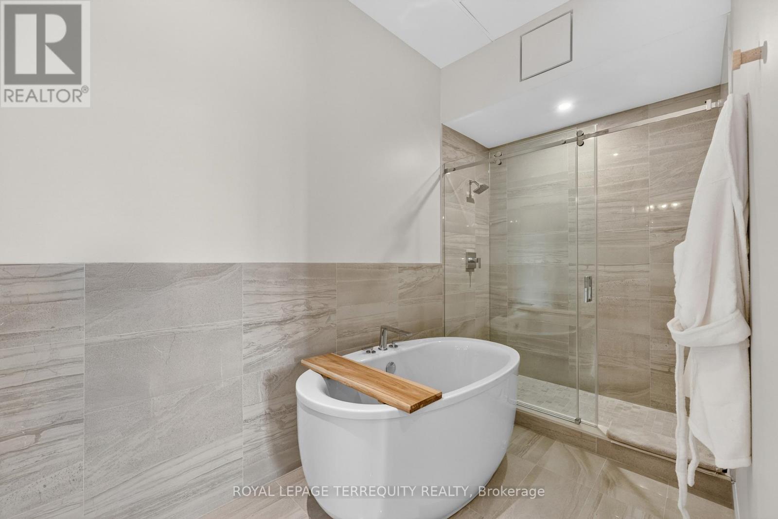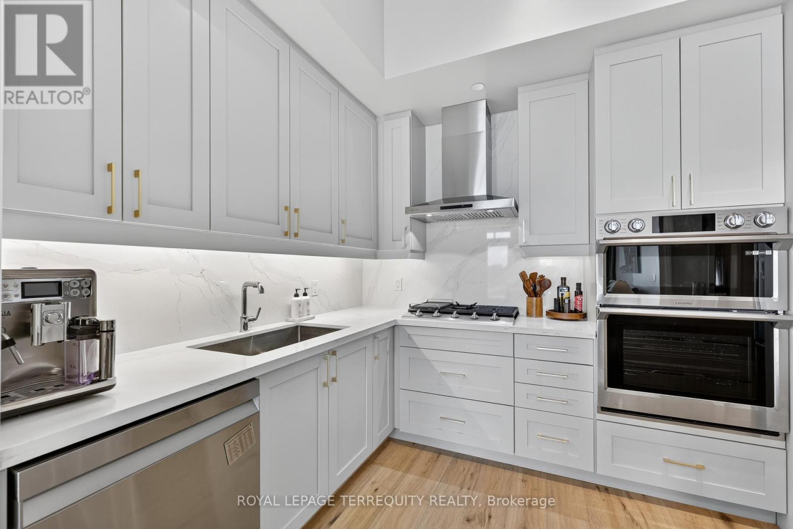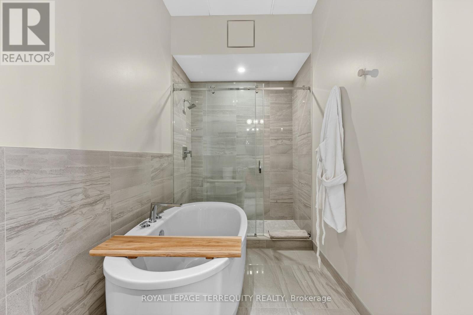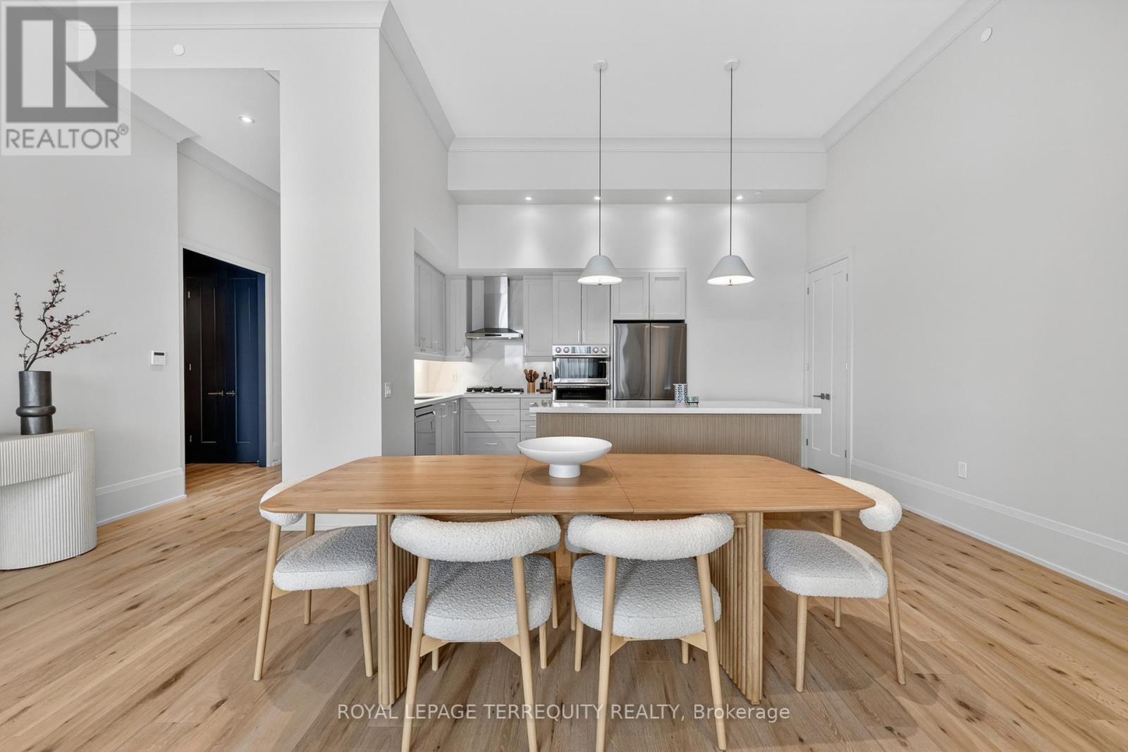 Welcome to Penthouse 615 at Monaco - a landmark of sophisticated living in historic downtown Collingwood! Experience elevated living in this Architectural Digest-inspired penthouse, thoughtfully designed for the most discerning buyer. Spanning 1,545sf., this exceptional 2+1 bed, 2 bath, residence offers a bright, expansive layout with breathtaking panoramic views of the Niagara Escarpment, Blue Mountain, & Georgian Bay. Perched above the heart of Collingwood, this brand-new, never-lived-in suite blends luxury, comfort, and a true 4-season lifestyle. Step inside to soaring 13 ft ceilings, rich hardwood flooring throughout, and upgraded solid-core 8 ft doors that create an immediate sense of grandeur. The open-concept living and dining area is anchored by a cozy gas fireplace and framed by oversized windows, seamlessly extending to a spectacular west-facing over sized terrace with a gas BBQ hookup - perfect for entertaining or enjoying sunsets. The designer kitchen is a showpiece, featuring upgraded cabinetry, premium s/s appliances, a gas stove, stone countertops, & b/splash. Over $120,000 in upgrades include crown molding, pot lights, custom window treatments, designer lighting, dimmers, & refined hardware throughout. Retreat to the primary suite with a spacious walk-in closet and spa-inspired ensuite featuring a freestanding soaker tub, glass-enclosed shower, & elegant finishes. The 2nd bedroom boasts a double closet along with large windows. The den offers the perfect backdrop for your WFH needs or third bedroom. Includes two underground parking spots & a large storage locker. Monaco offers virtual concierge, spectacular lounge, state of art fitness centre, party room, & stunning rooftop terrace. Steps to Collingwood's vibrant downtown with shops, dining, cafés, theatres, farmers' markets, waterfront promenade and marina. Enjoy a 4-season lifestyle: skiing, snowshoeing and trails in winter; boating, hiking, golf and beaches in summer - all of this just mins away! (id:4555)