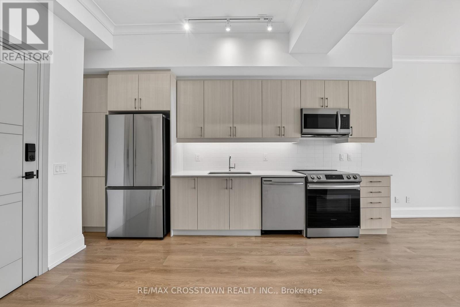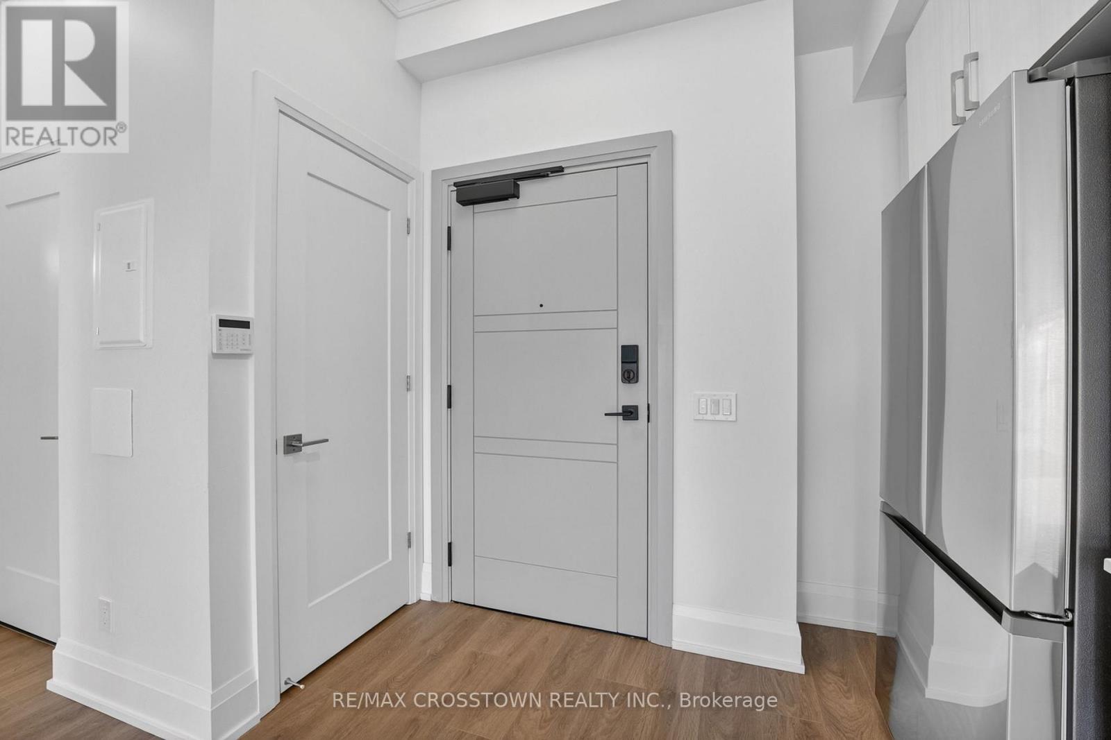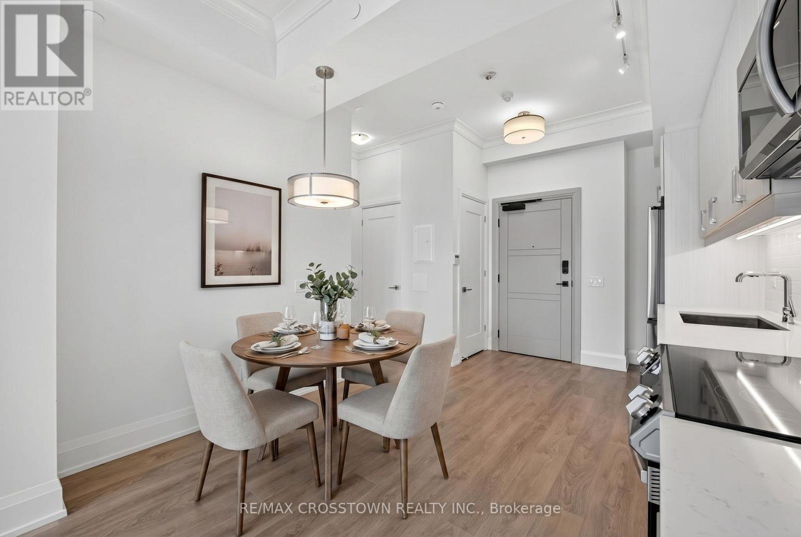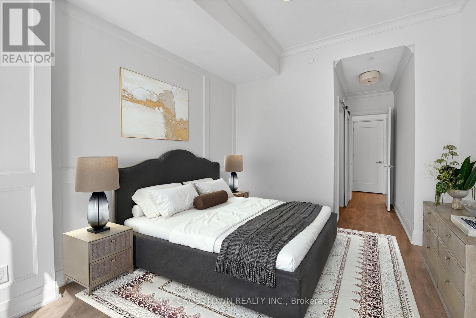 Welcome to Monaco-Collingwood's newest luxury residence-where modern living meets exceptional value just minutes from the waterfront. This exquisite 1-bedroom, 1-bath condo showcases upscale finishes and thoughtful design throughout.Featuring premium trim and door packages, elegant crown moulding, and stylish laminate flooring, every detail has been carefully curated. The contemporary kitchen is equipped with top-of-the-line stainless steel appliances, perfect for both everyday living and entertaining.The spacious primary bedroom offers a one-of-a-kind walk-in closet with custom organizers, maximizing both functionality and storage. A stunning feature wall adds a touch of sophistication, while expansive windows flood the unit with natural light and highlight the impressive 10-foot ceilings.Residents enjoy access to top-tier amenities, including a rooftop terrace with garden oasis and BBQ area, fully equipped fitness centre, party room, and both visitor and underground parking.An outstanding opportunity for first-time buyers, downsizers, or investors alike-experience luxury living in the heart of Collingwood. (id:4555)