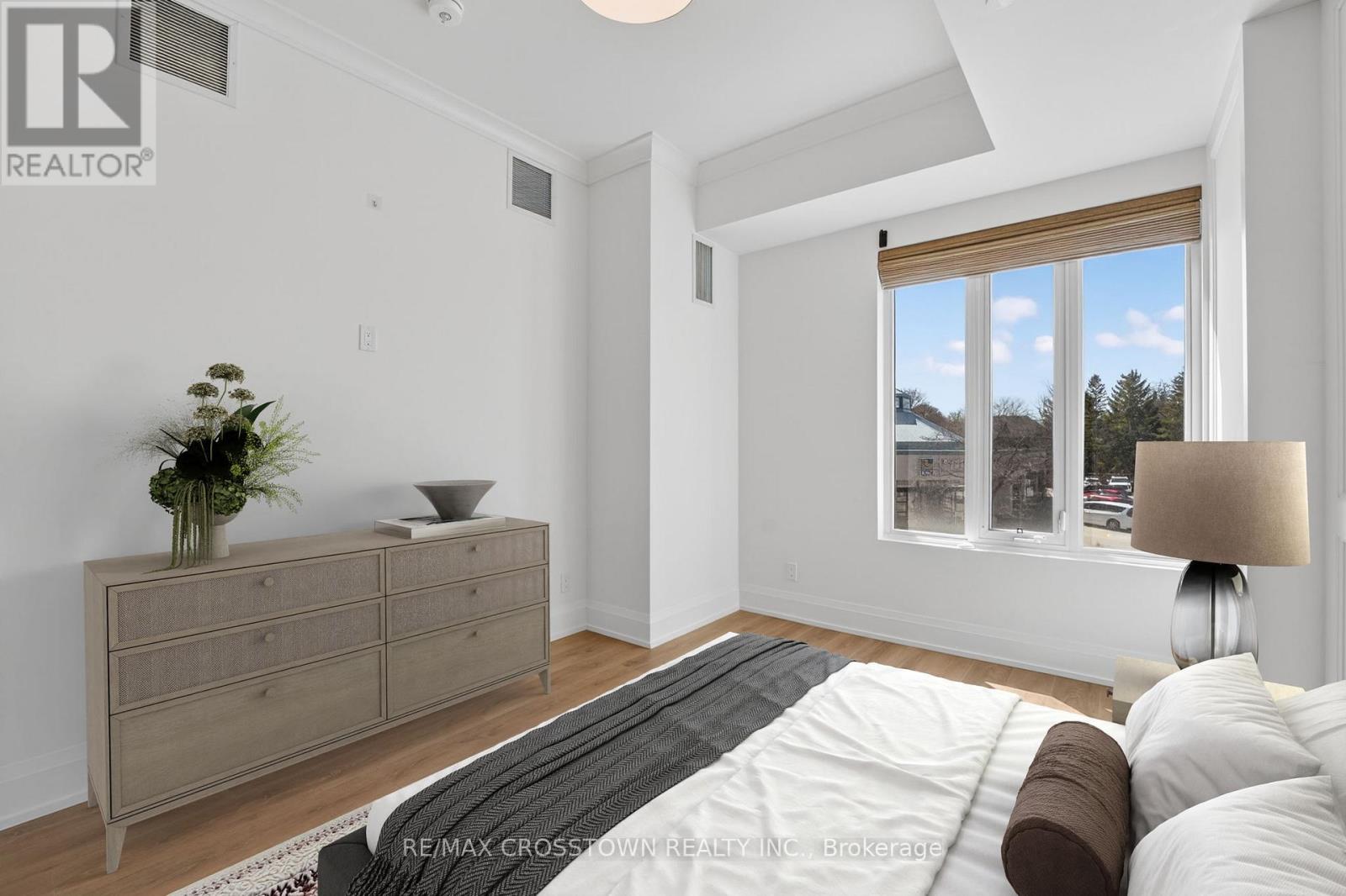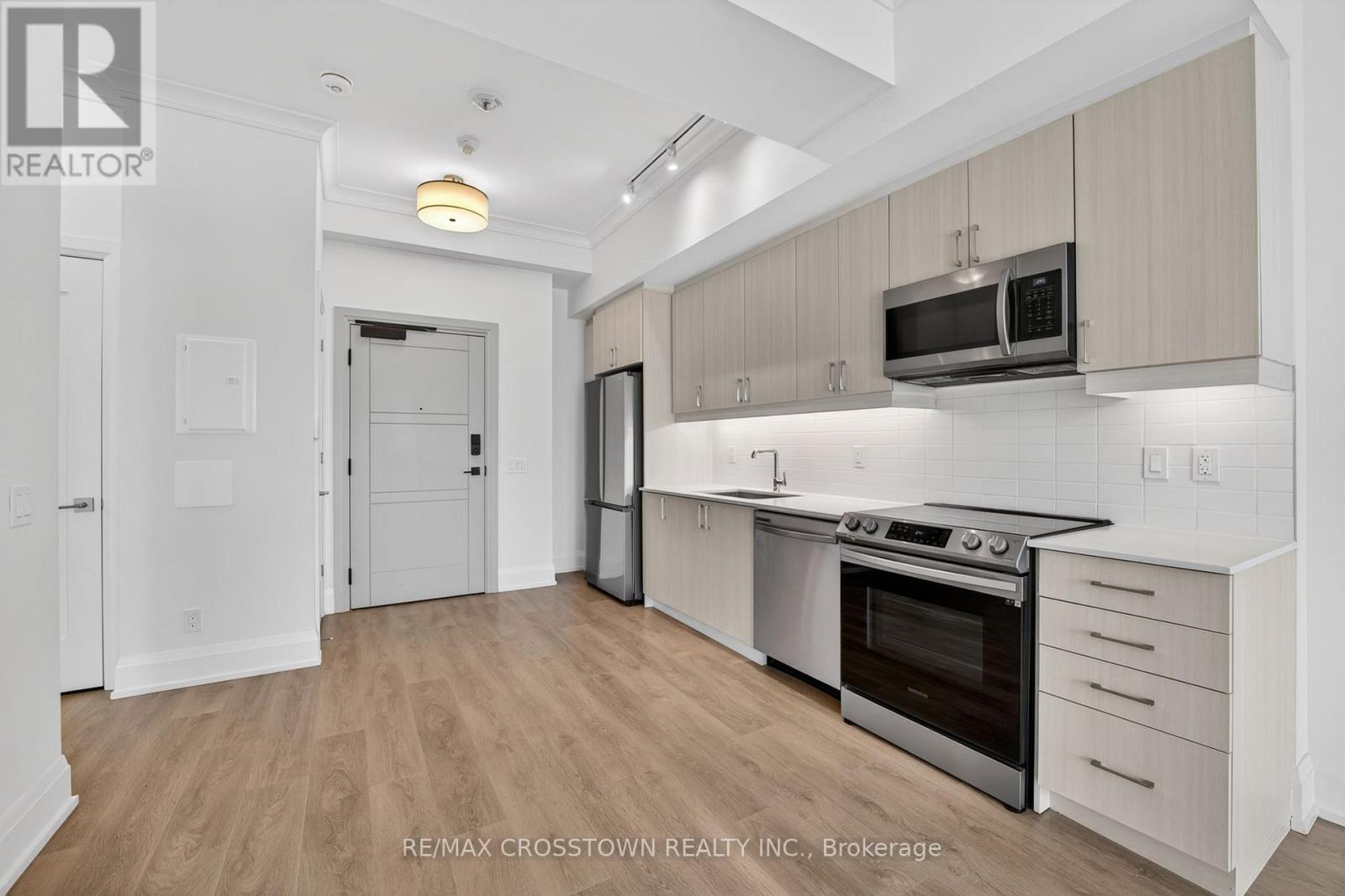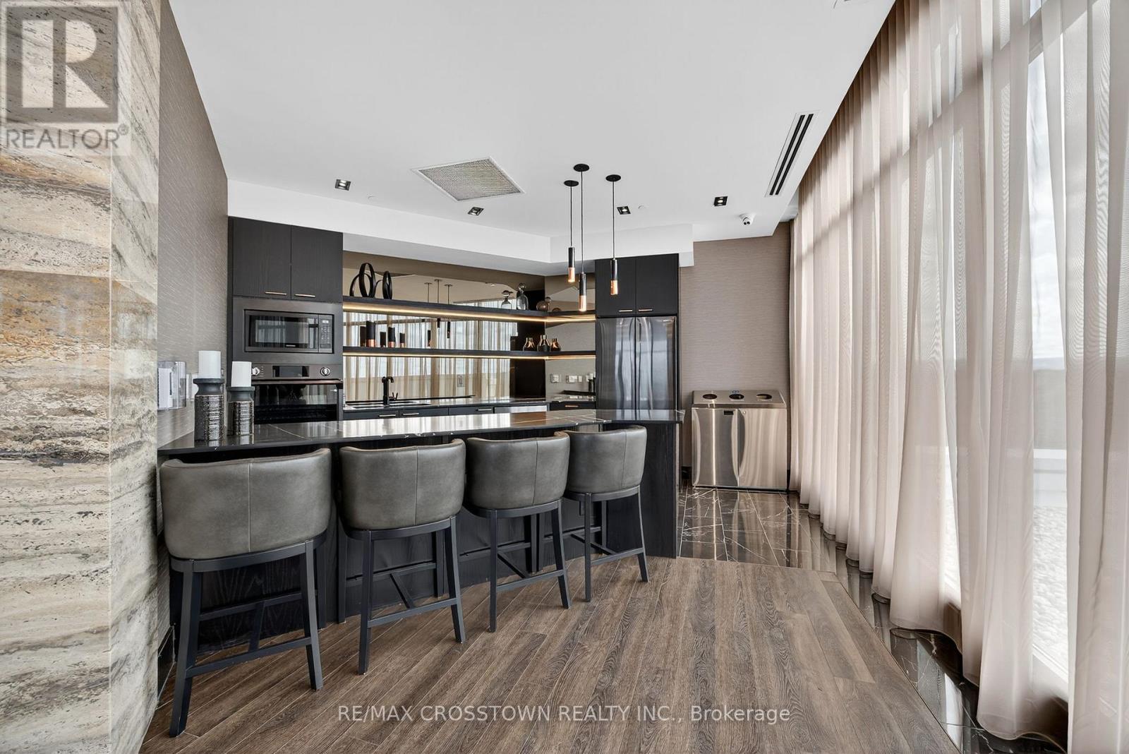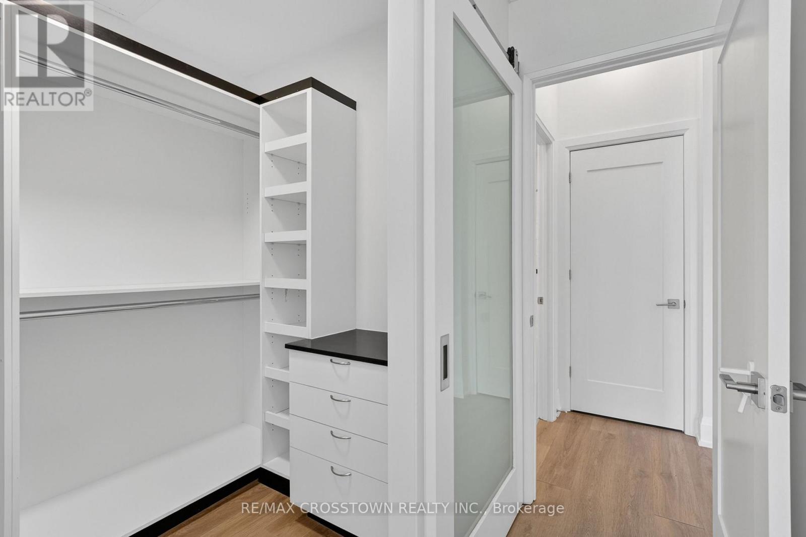 Welcome to Monaco-Collingwood's newest luxury residence-where modern living meets exceptional value just minutes from the waterfront. This exquisite 1-bedroom, 1-bath condo showcases upscale finishes and thoughtful design throughout.Featuring premium trim and door packages, elegant crown moulding, and stylish laminate flooring, every detail has been carefully curated. The contemporary kitchen is equipped with top-of-the-line stainless steel appliances, perfect for both everyday living and entertaining.The spacious primary bedroom offers a one-of-a-kind walk-in closet with custom organizers, maximizing both functionality and storage. A stunning feature wall adds a touch of sophistication, while expansive windows flood the unit with natural light and highlight the impressive 10-foot ceilings.Residents enjoy access to top-tier amenities, including a rooftop terrace with garden oasis and BBQ area, fully equipped fitness centre, party room, and both visitor and underground parking.An outstanding opportunity for first-time buyers, downsizers, or investors alike-experience luxury living in the heart of Collingwood. (id:4555)