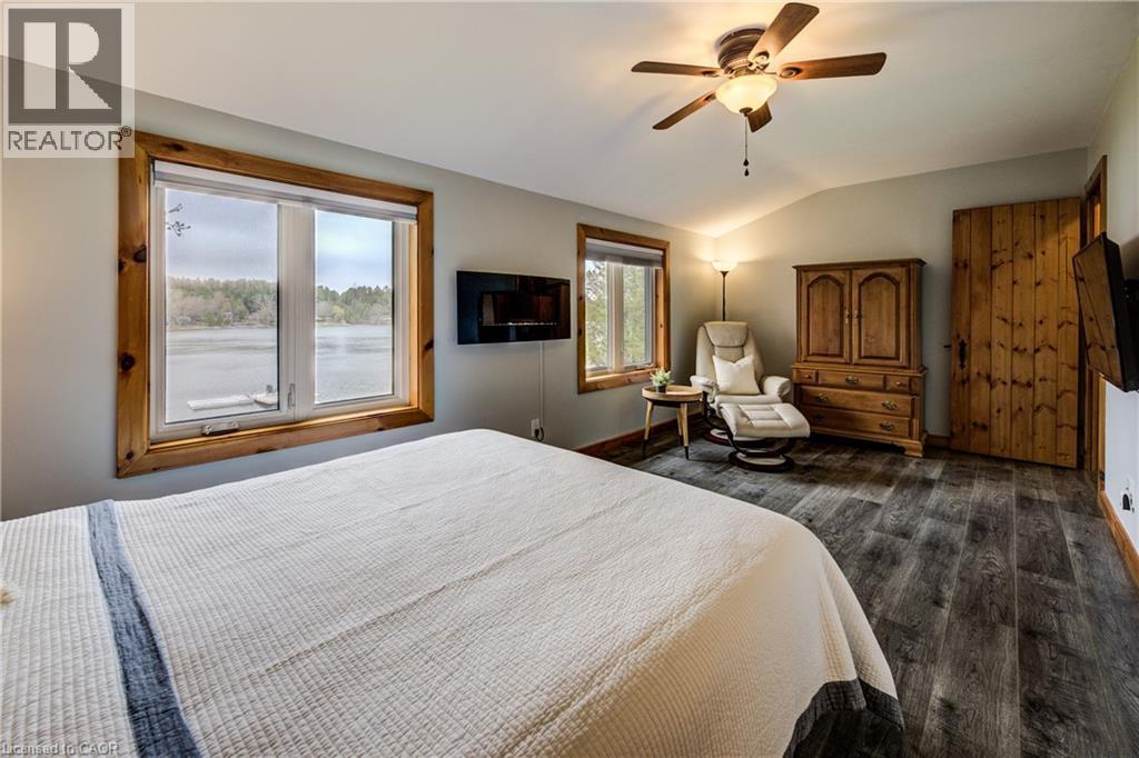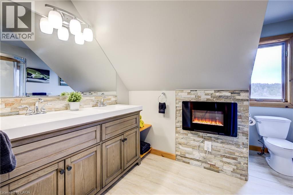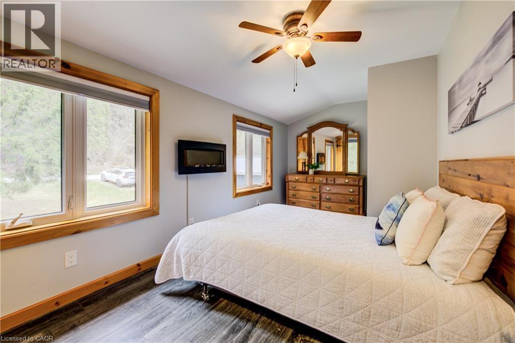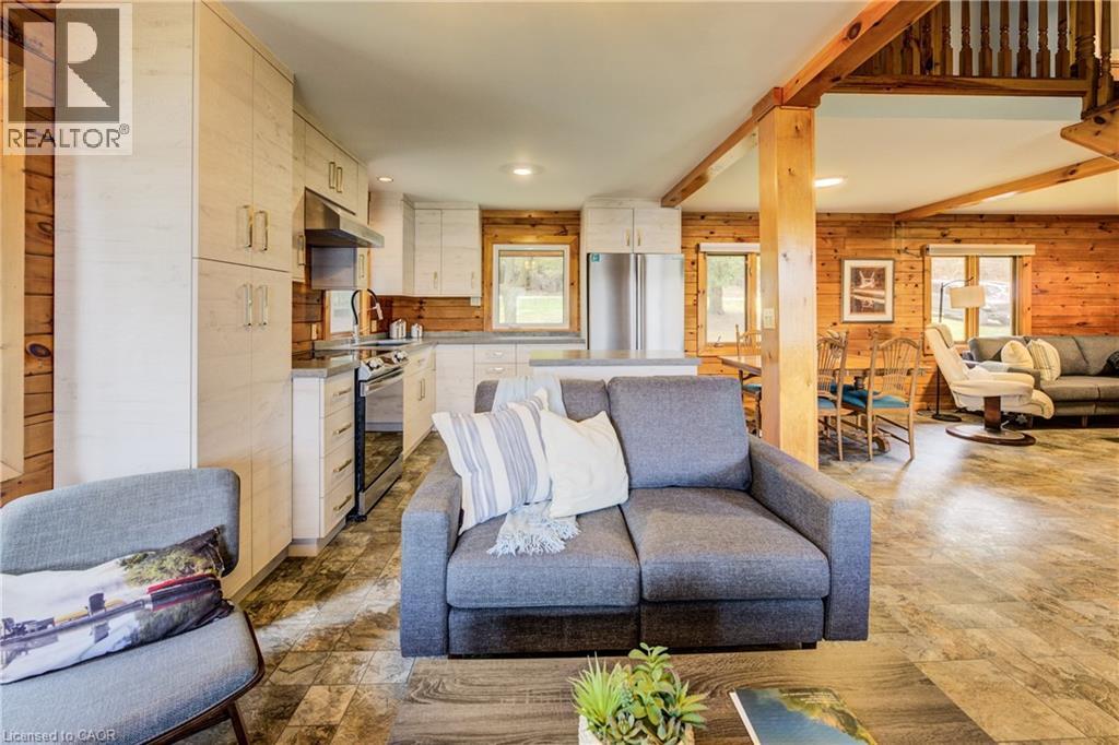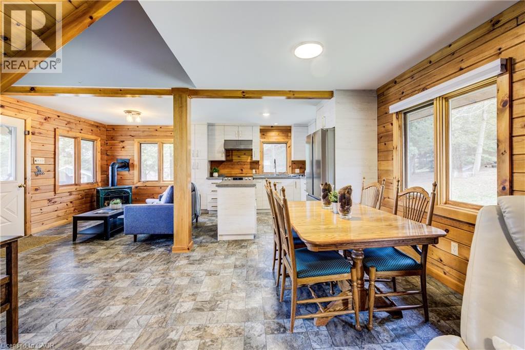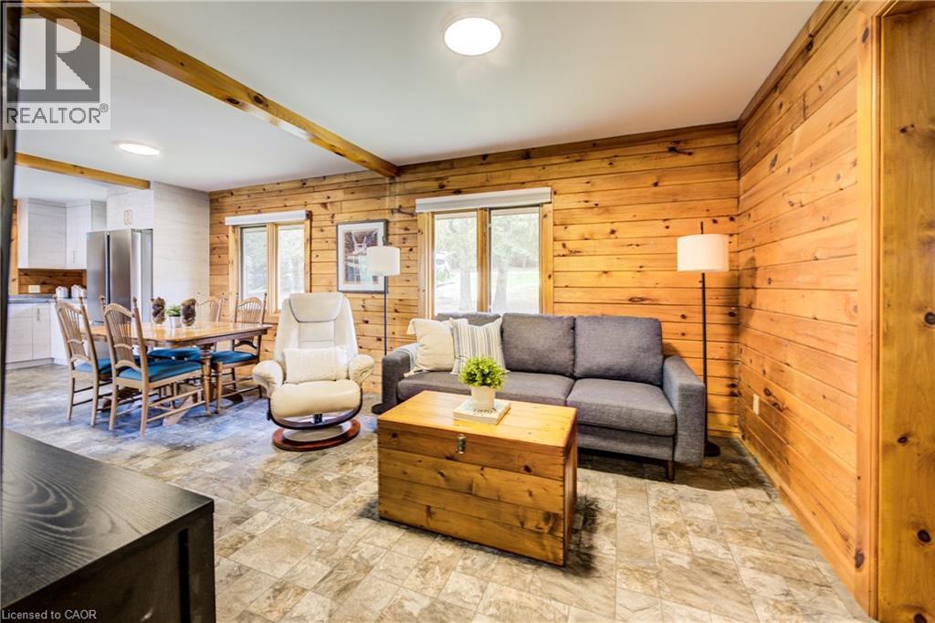 Lakefront log cabin, with poured concrete foundation, on a rare flat lot. Over $40,000 invested in the kitchen and stainless steel-framed dock. Features two full baths, main floor laundry, EV plug-in, and propane generator. Covered porch with lake views. Effortless lakefront living at Conestogo Lake with this 1,466 sq ft log cabin cottage, where rustic charm meets modern convenience. Fully updated and thoughtfully designed, this cottage offers a rare attached garage with direct access inside providing a convenient entrance. Take in the scenery from the covered porch that stretches the full length of the cottage, or gather on the spacious deck, the perfect setting for meals and entertaining with unobstructed views. The brand-new $18,000 aluminum frame dock provides a launchpad for swimming, boating, and all things summer. Inside, find a fully updated kitchen offers an ideal space for cooking meals. Outfitted with modern appliances, including a range hood oven, French door fridge, and a central island, it’s designed for both functionality and style. Share family meals in the adjoining dining area, cozy up by the wood-burning stove with direct lake views, or catch a movie in the second living space just off the dining room. Upstairs, 3 inviting bedrooms and a spacious 4pc bathroom features a built-in electric fireplace and dual sinks. The primary bedroom boasts stunning views of the water beyond. Practical perks include in-cottage laundry, an electric vehicle plug-in in the attached garage, and a generator to keep life humming along. Outside, gather around the fire pit on starry nights, perfect for roasting marshmallows, sharing stories, and making memories that will last a lifetime. With year round road access, thoughtful upgrades, and direct waterfront bliss, this is more than just a cottage, it’s your next chapter at Conestogo Lake, ready and waiting for new memories to be made. (id:4555)