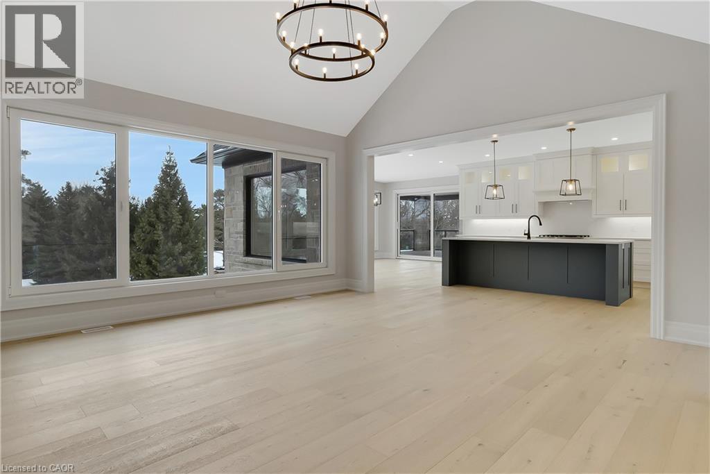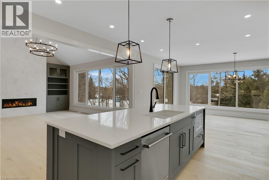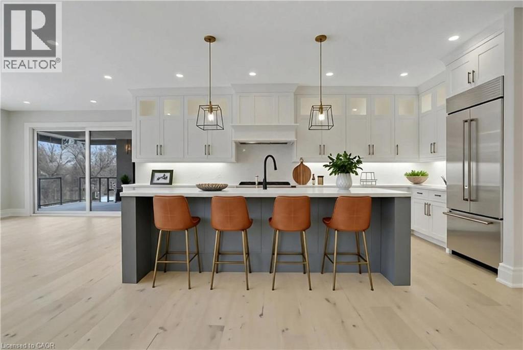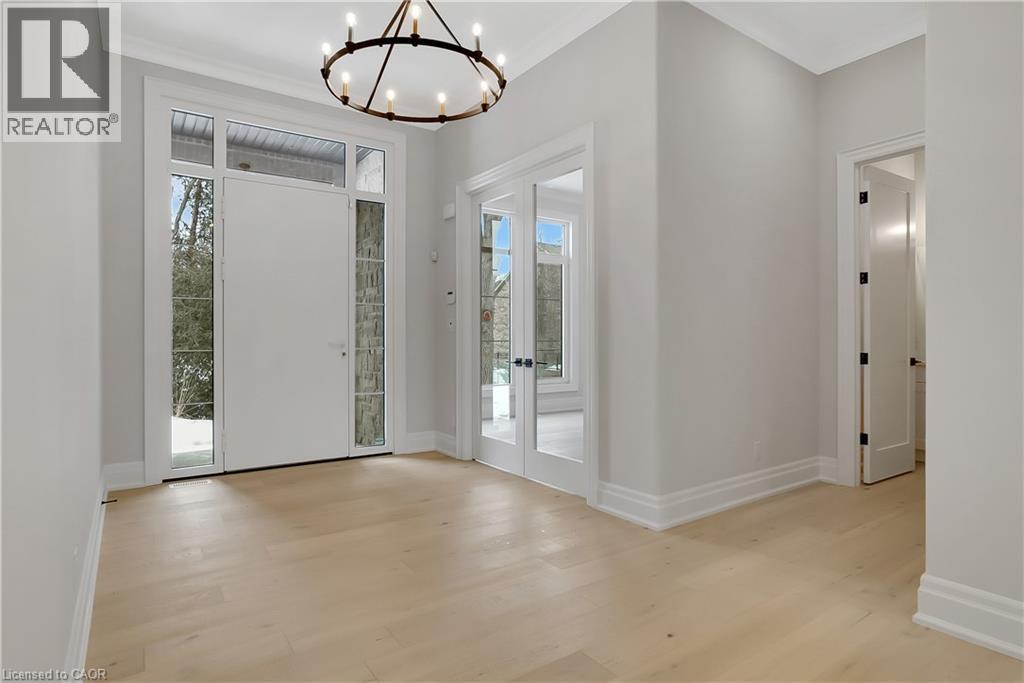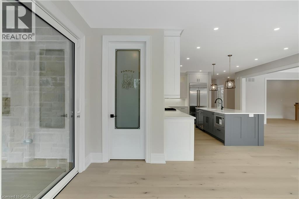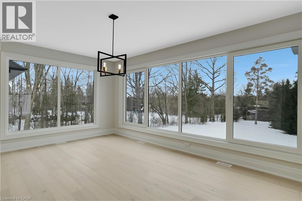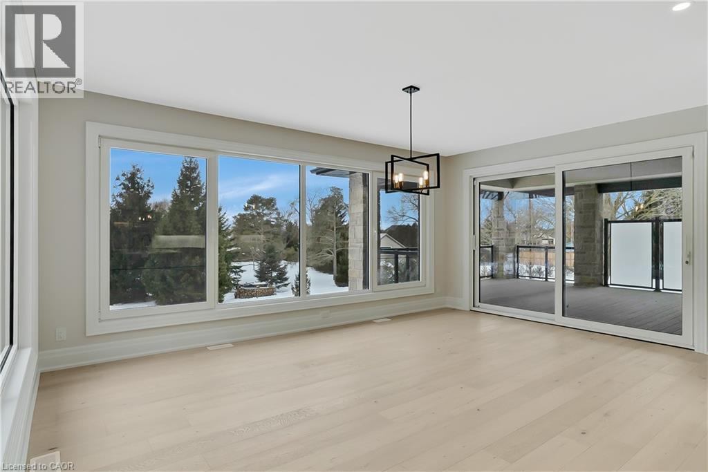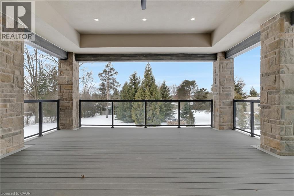 Modern Country Estate Like No Other. “Brand New” breathtaking custom all stone bungalow offering over 6,000 sq. ft. of finished luxury living with a full walkout basement done in 10ft wide & 8ft high glass sliding doors with steel frame and also, separate entrance off garage. Easily could function for multigenerational families, this home features 5 bedrooms, 4 full bathrooms, and a stylish main floor powder room. High tech European steel doors and windows deliver exceptional unmatched security and striking modern design, while floor to ceiling windows each level showcase the south facing, over ¾ acre treed lot. A true escape designed for families who value space, serenity, and sophistication. Enjoy a massive, covered porch with pot lights, a gas line for grilling, and complete privacy—perfect for creating your dream backyard oasis. The grounds offer endless potential for a resort style pool retreat. Impressive foyer w/11 ft ceiling. Large main floor office with custom built-in cabinetry &11 ft ceilings, Great room w/14ft ceiling height. All appliances included. 4 car tandem garage, and 5 car driveway, Security Cameras, Full irrigation system, 2 zone furnace- main & lower-level separate controls. Tankless Hot Water Heater, Water Softener- all equipment owned. All bedrooms with custom built in Shelving. Located minutes from the Grand River and Conestoga Golf Course, and only 10 minutes to Waterloo, this property blends peaceful country living with urban convenience. A rare offering of elegance, privacy, and craftsmanship by the acclaimed Surducan Custom Homes! (id:4555)