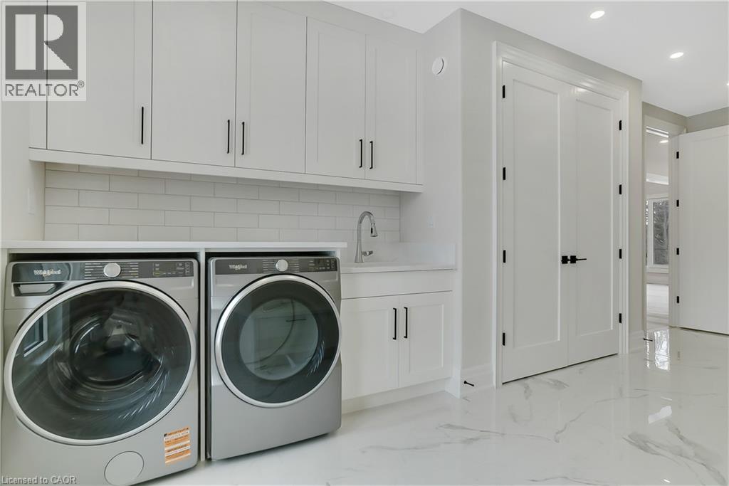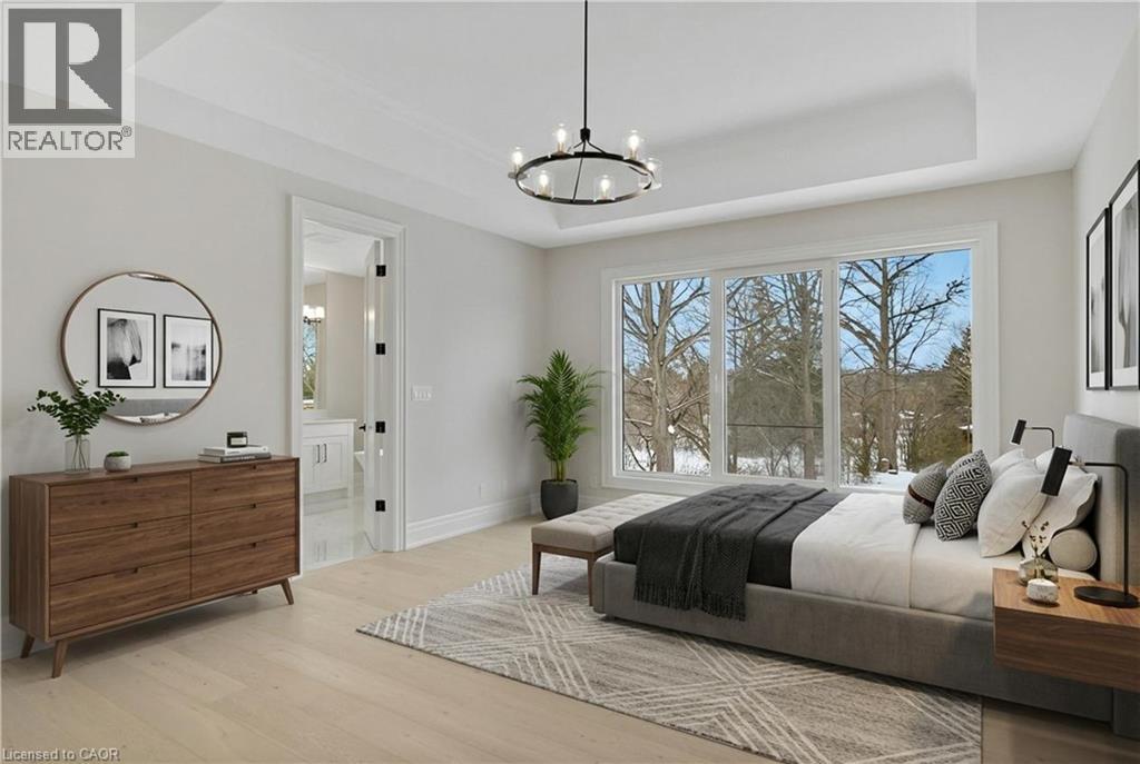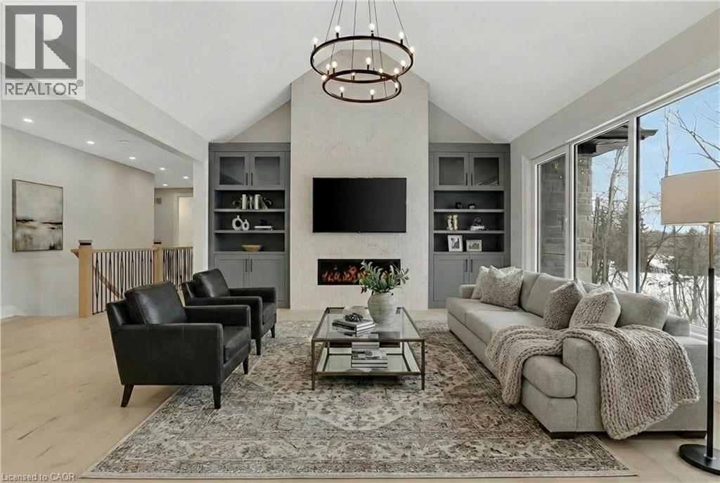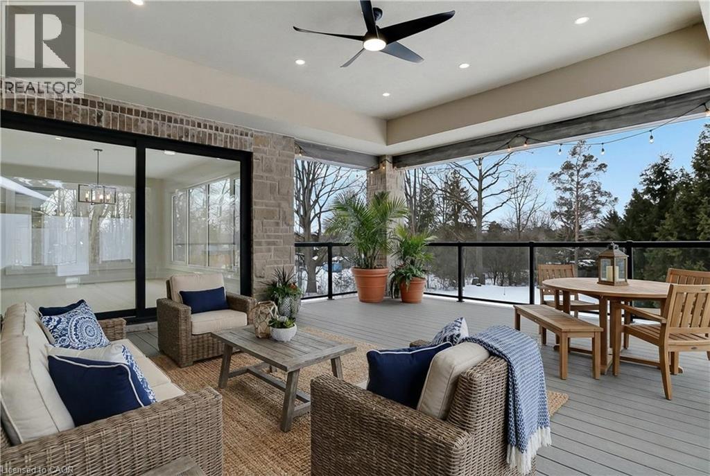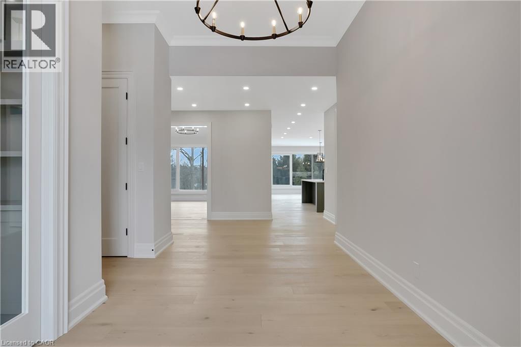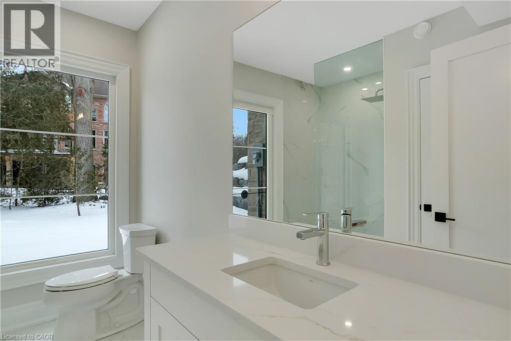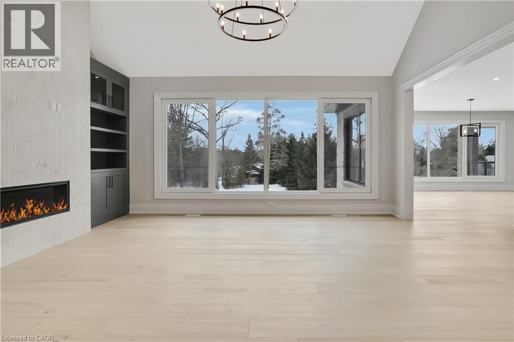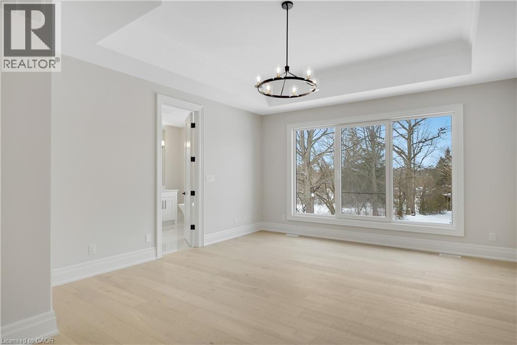 Modern Country Estate Like No Other. “Brand New” breathtaking custom all stone bungalow offering over 6,000 sq. ft. of finished luxury living with a full walkout basement done in 10ft wide & 8ft high glass sliding doors with steel frame and also, separate entrance off garage. Easily could function for multigenerational families, this home features 5 bedrooms, 4 full bathrooms, and a stylish main floor powder room. High tech European steel doors and windows deliver exceptional unmatched security and striking modern design, while floor to ceiling windows each level showcase the south facing, over ¾ acre treed lot. A true escape designed for families who value space, serenity, and sophistication. Enjoy a massive, covered porch with pot lights, a gas line for grilling, and complete privacy—perfect for creating your dream backyard oasis. The grounds offer endless potential for a resort style pool retreat. Impressive foyer w/11 ft ceiling. Large main floor office with custom built-in cabinetry &11 ft ceilings, Great room w/14ft ceiling height. All appliances included. 4 car tandem garage, and 5 car driveway, Security Cameras, Full irrigation system, 2 zone furnace- main & lower-level separate controls. Tankless Hot Water Heater, Water Softener- all equipment owned. All bedrooms with custom built in Shelving. Located minutes from the Grand River and Conestoga Golf Course, and only 10 minutes to Waterloo, this property blends peaceful country living with urban convenience. A rare offering of elegance, privacy, and craftsmanship by the acclaimed Surducan Custom Homes! (id:4555)