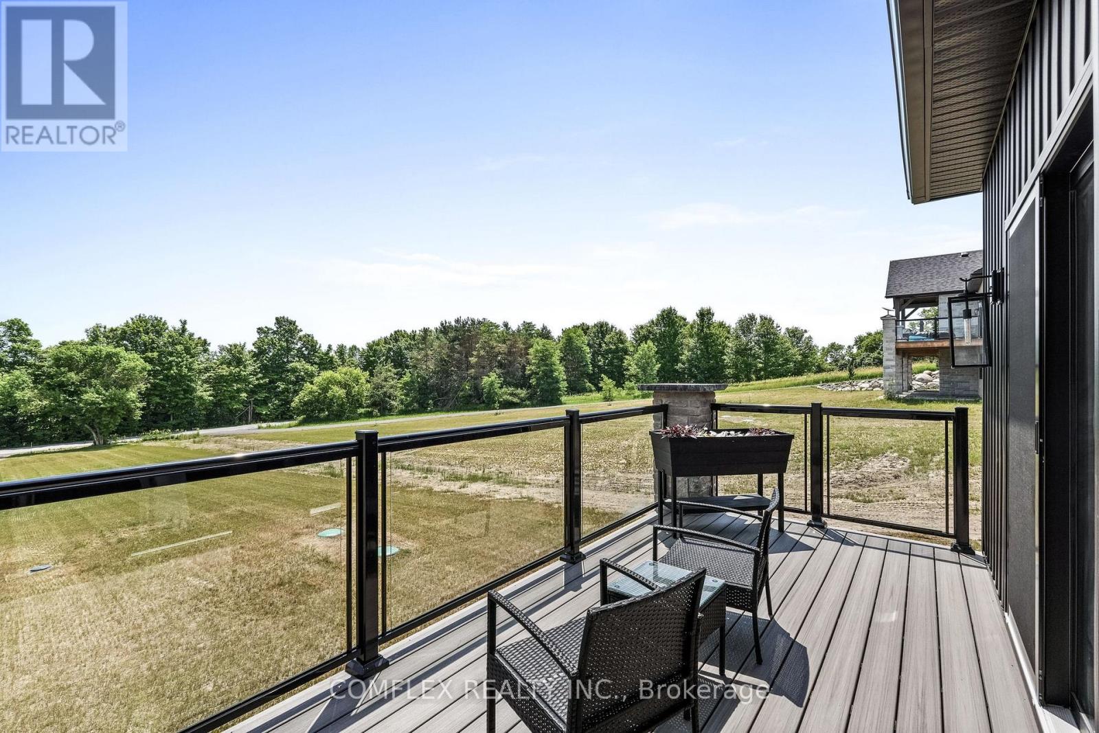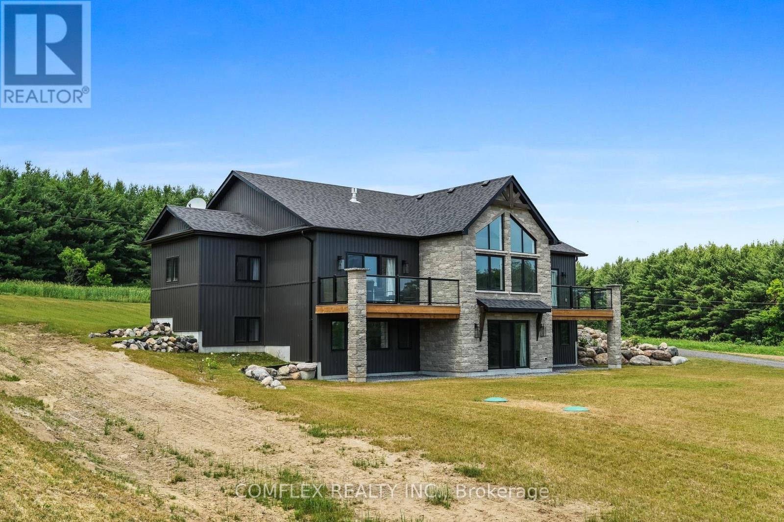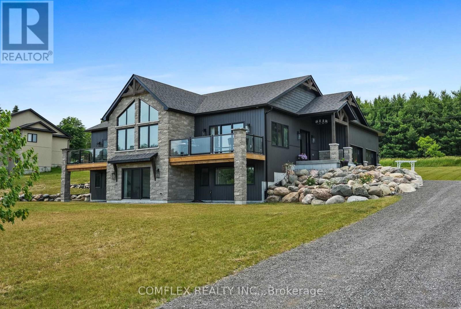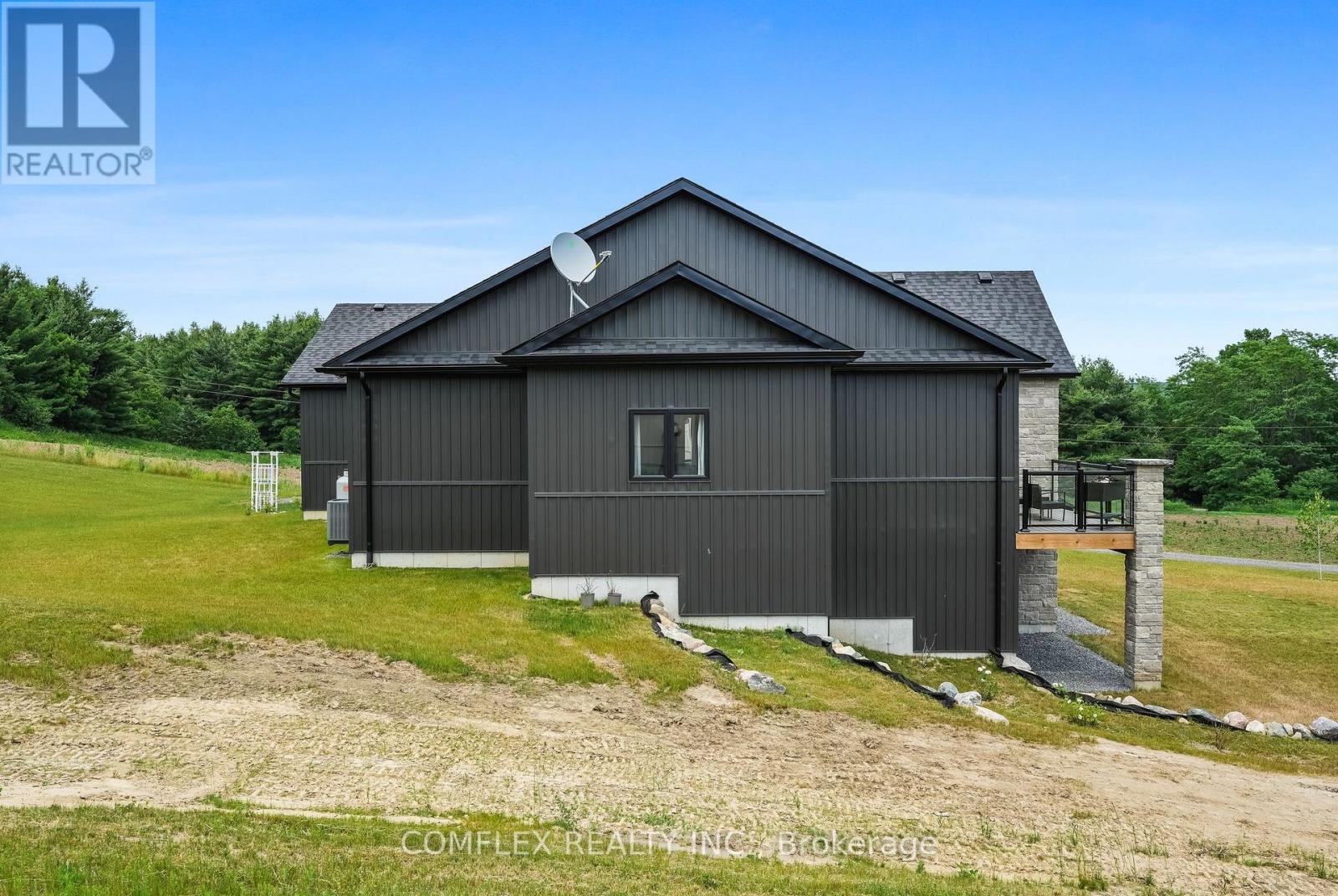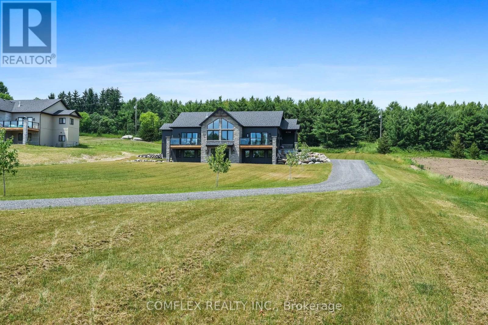 Welcome to your slice of paradise- a stunning 6-bed, 3-bath country home in Cramahe Township! Nestled on a 2-acre lot, this one year old custom-built gem blends modern luxury with serene rural living. Step inside to natural light flooding through south-facing windows, illuminating the open-concept main floor. The heart of the home is the custom-designed kitchen, a chef's dream featuring sleek granite countertops, a massive 10-foot island with a farmhouse sink, and top-of-the-line stainless steel appliances. Stylish pendant lighting and recessed pot lights create the perfect ambiance, whether you're preparing a gourmet meal or hosting a casual brunch. The dining room flows to a private deck with a gas BBQ line, perfect for gatherings or quiet evenings. Enjoy coffee with serene views of your expansive lot. The spacious living room is a true highlight, designed to inspire awe with its 15-foot cathedral ceilings, exposed beams, and a striking stone fireplace with a cozy hearth. Oversized windows frame breathtaking views of the rolling landscape. The primary bedroom is a luxurious sanctuary, complete with a walk-out to a private deck where you can unwind in peace. The spa-inspired ensuite is a haven of relaxation, featuring high-end finishes and an attached walk-in closet. Two additional bedrooms on the main floor offer versatility, perfect for children, guests, or a home office. The fully-finished basement features 3 bedrooms, a 5-piece bath, office, rec room, & ample storage, ideal for families or guests. A laundry room with garage access enhances practicality. Outside, the 2-acre lot is a private oasis with quiet roads for walking, cycling, or ATVs. High-speed satellite internet keeps you connected. Just 5 min north of Hwy 401 in Brighton, it offers easy access to Belleville, Trenton & the GTA, ideal for families, professionals, or anyone craving a peaceful retreat with urban convenience. This home is a lifestyle-luxurious, spacious & serene. Schedule your tour today! (id:4555)