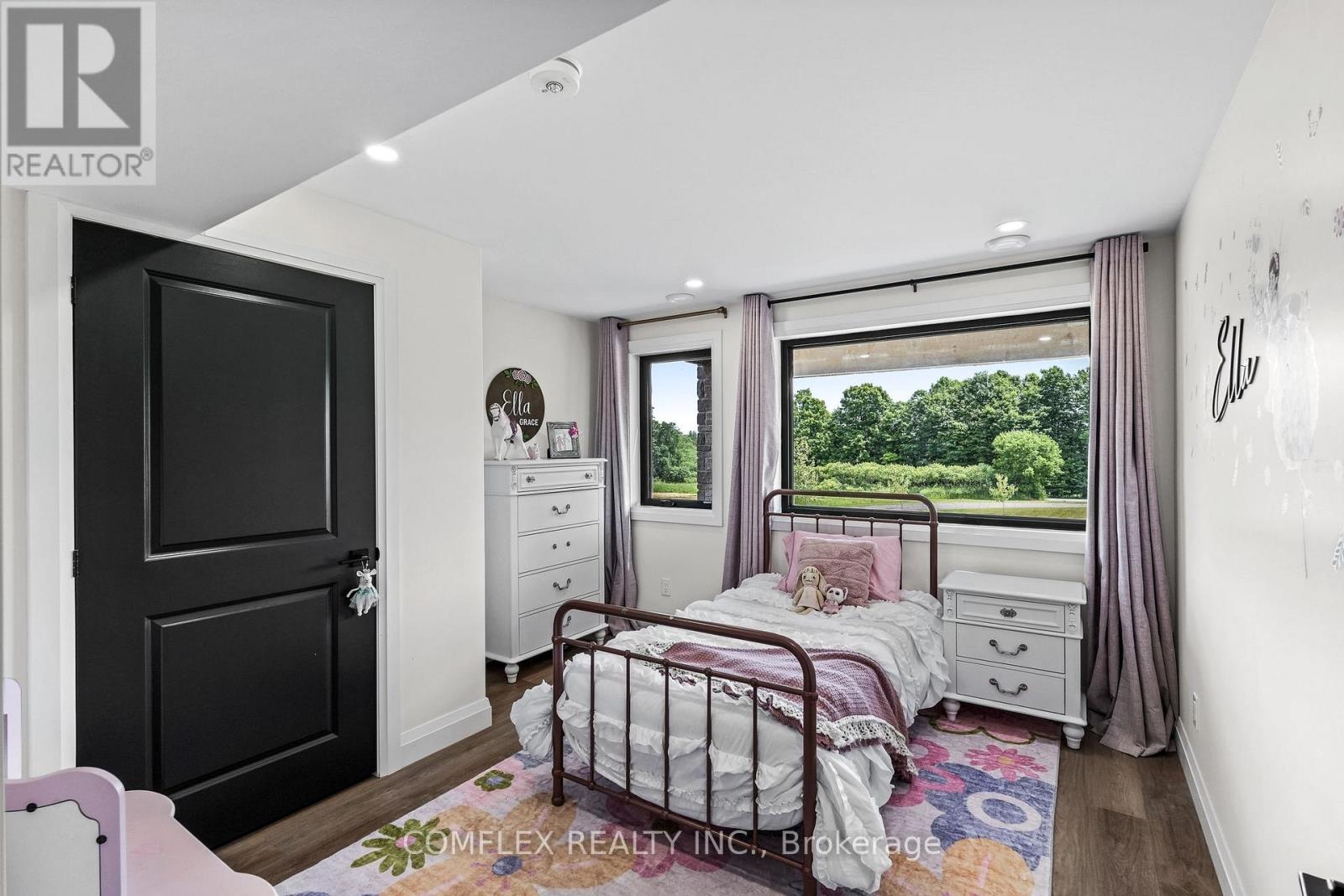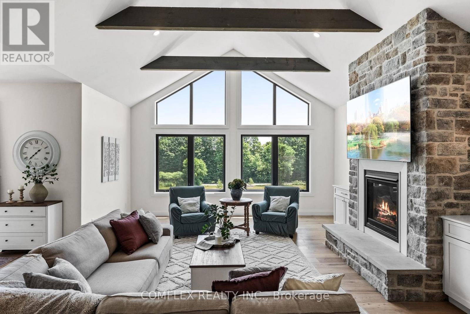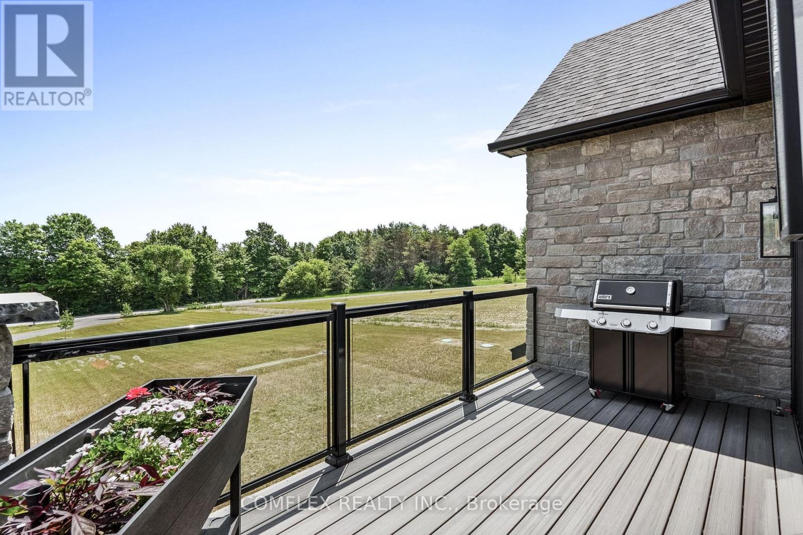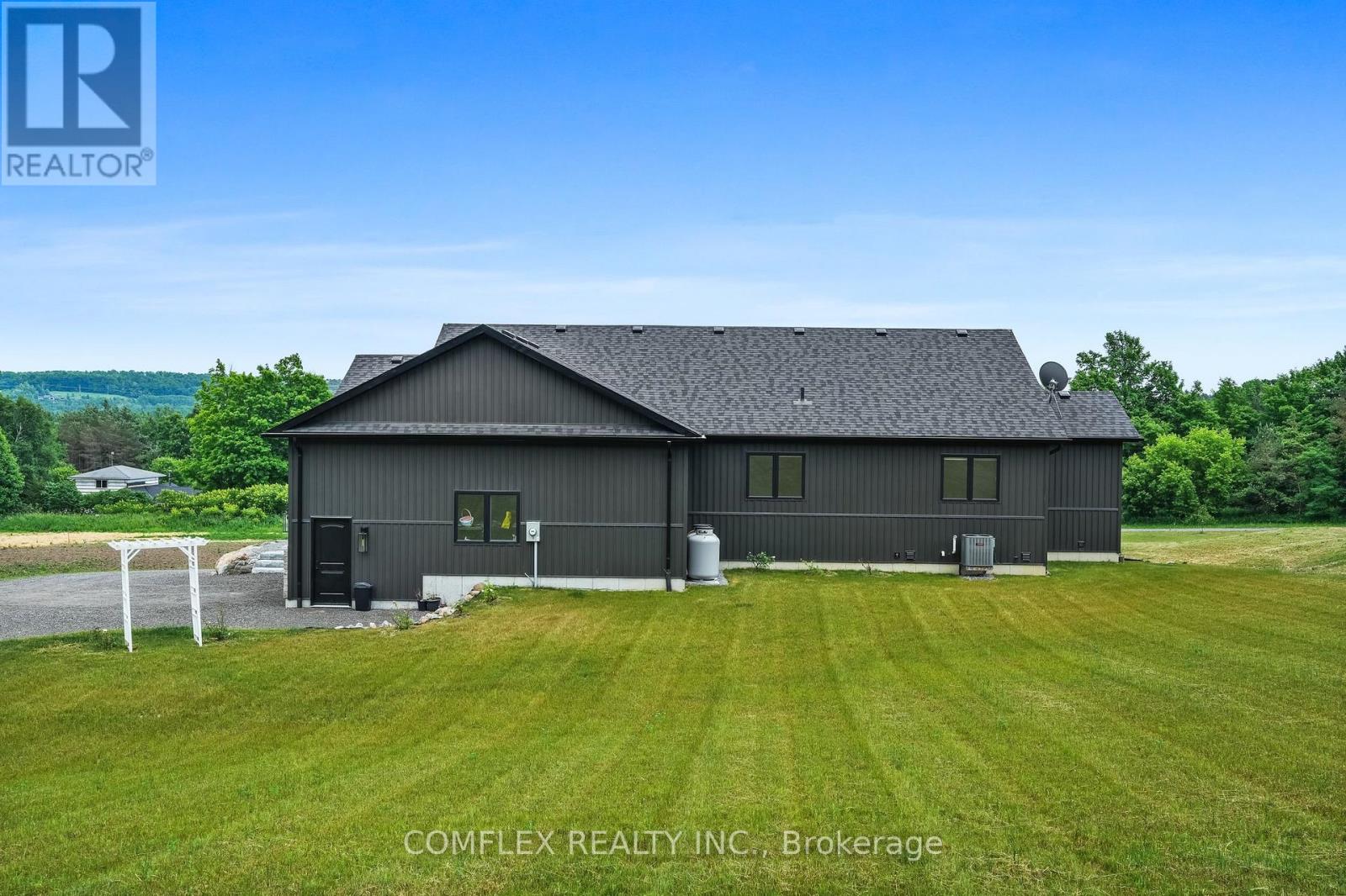 Welcome to your slice of paradise- a stunning 6-bed, 3-bath country home in Cramahe Township! Nestled on a 2-acre lot, this one year old custom-built gem blends modern luxury with serene rural living. Step inside to natural light flooding through south-facing windows, illuminating the open-concept main floor. The heart of the home is the custom-designed kitchen, a chef's dream featuring sleek granite countertops, a massive 10-foot island with a farmhouse sink, and top-of-the-line stainless steel appliances. Stylish pendant lighting and recessed pot lights create the perfect ambiance, whether you're preparing a gourmet meal or hosting a casual brunch. The dining room flows to a private deck with a gas BBQ line, perfect for gatherings or quiet evenings. Enjoy coffee with serene views of your expansive lot. The spacious living room is a true highlight, designed to inspire awe with its 15-foot cathedral ceilings, exposed beams, and a striking stone fireplace with a cozy hearth. Oversized windows frame breathtaking views of the rolling landscape. The primary bedroom is a luxurious sanctuary, complete with a walk-out to a private deck where you can unwind in peace. The spa-inspired ensuite is a haven of relaxation, featuring high-end finishes and an attached walk-in closet. Two additional bedrooms on the main floor offer versatility, perfect for children, guests, or a home office. The fully-finished basement features 3 bedrooms, a 5-piece bath, office, rec room, & ample storage, ideal for families or guests. A laundry room with garage access enhances practicality. Outside, the 2-acre lot is a private oasis with quiet roads for walking, cycling, or ATVs. High-speed satellite internet keeps you connected. Just 5 min north of Hwy 401 in Brighton, it offers easy access to Belleville, Trenton & the GTA, ideal for families, professionals, or anyone craving a peaceful retreat with urban convenience. This home is a lifestyle-luxurious, spacious & serene. Schedule your tour today! (id:4555)
