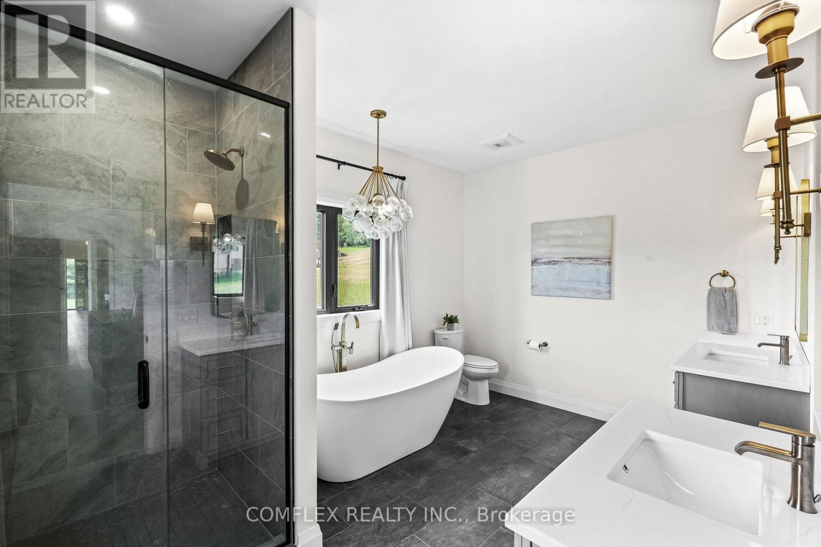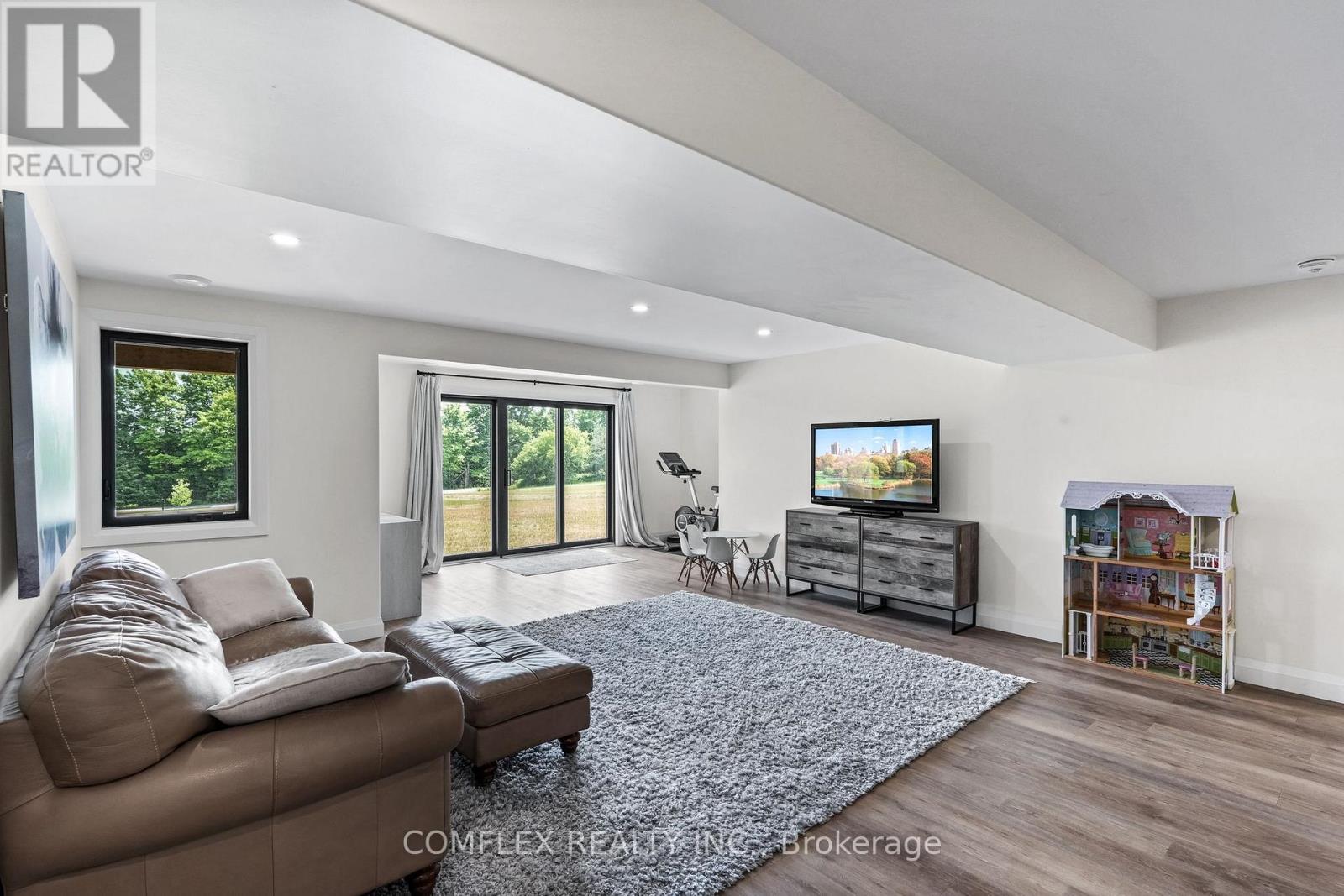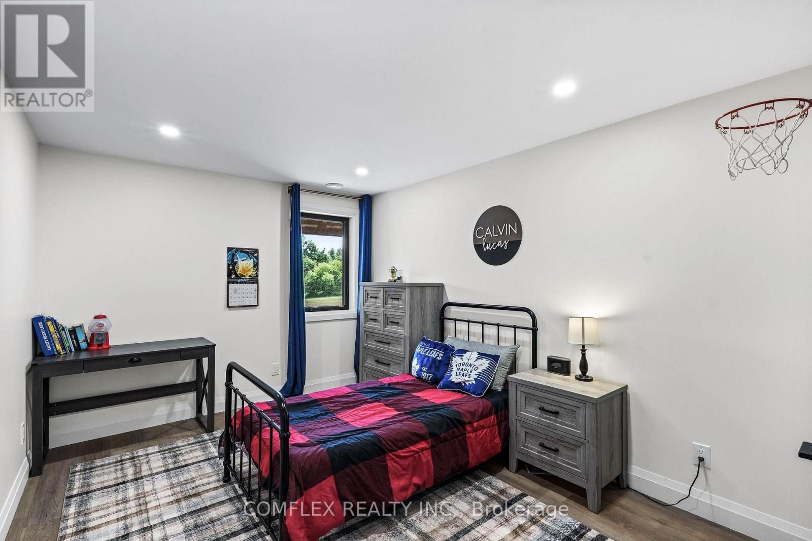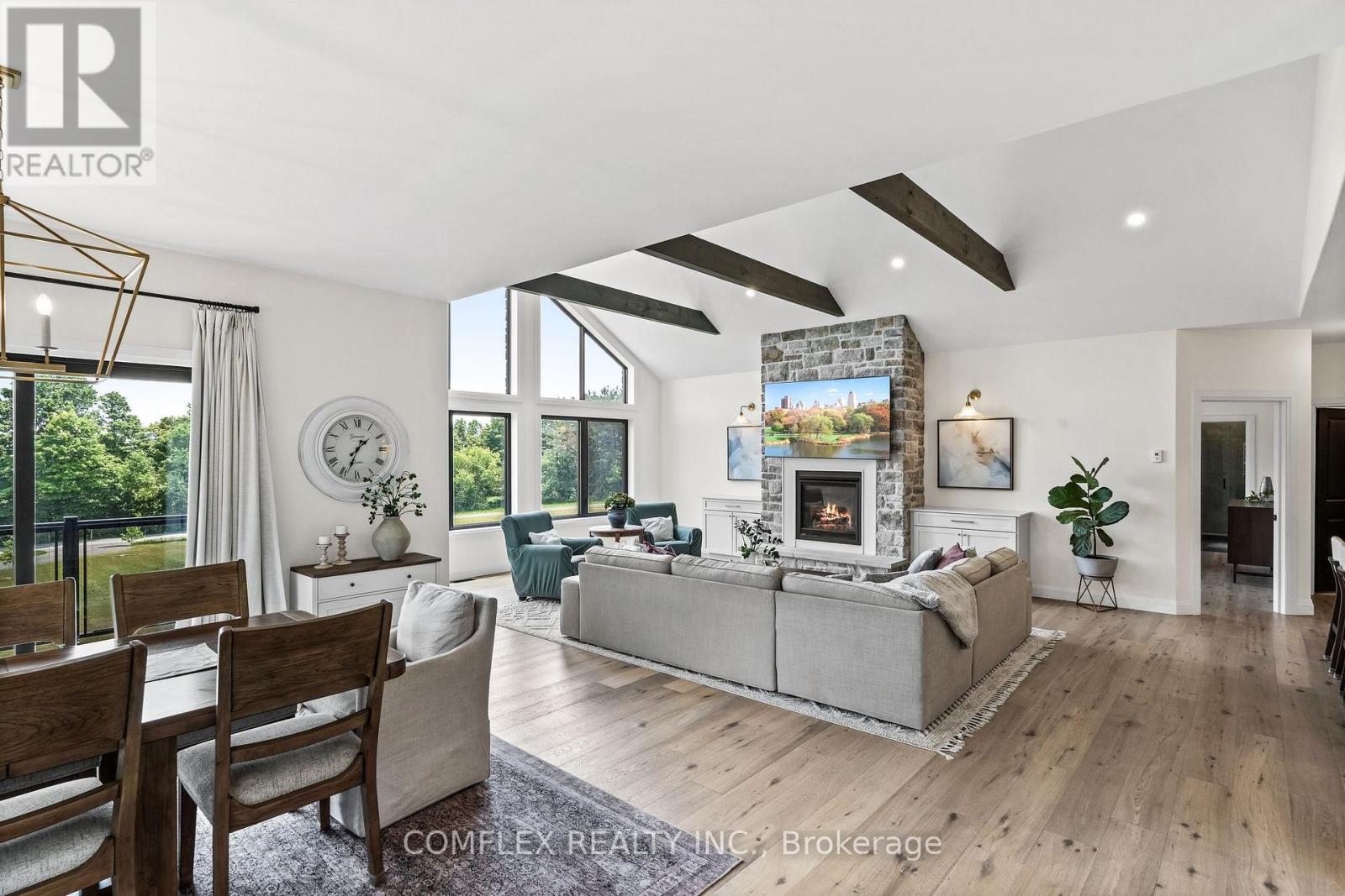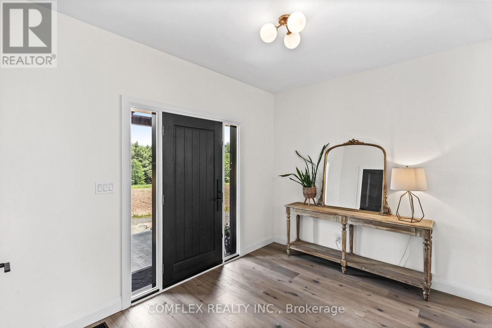 Welcome to your slice of paradise- a stunning 6-bed, 3-bath country home in Cramahe Township! Nestled on a 2-acre lot, this one year old custom-built gem blends modern luxury with serene rural living. Step inside to natural light flooding through south-facing windows, illuminating the open-concept main floor. The heart of the home is the custom-designed kitchen, a chef's dream featuring sleek granite countertops, a massive 10-foot island with a farmhouse sink, and top-of-the-line stainless steel appliances. Stylish pendant lighting and recessed pot lights create the perfect ambiance, whether you're preparing a gourmet meal or hosting a casual brunch. The dining room flows to a private deck with a gas BBQ line, perfect for gatherings or quiet evenings. Enjoy coffee with serene views of your expansive lot. The spacious living room is a true highlight, designed to inspire awe with its 15-foot cathedral ceilings, exposed beams, and a striking stone fireplace with a cozy hearth. Oversized windows frame breathtaking views of the rolling landscape. The primary bedroom is a luxurious sanctuary, complete with a walk-out to a private deck where you can unwind in peace. The spa-inspired ensuite is a haven of relaxation, featuring high-end finishes and an attached walk-in closet. Two additional bedrooms on the main floor offer versatility, perfect for children, guests, or a home office. The fully-finished basement features 3 bedrooms, a 5-piece bath, office, rec room, & ample storage, ideal for families or guests. A laundry room with garage access enhances practicality. Outside, the 2-acre lot is a private oasis with quiet roads for walking, cycling, or ATVs. High-speed satellite internet keeps you connected. Just 5 min north of Hwy 401 in Brighton, it offers easy access to Belleville, Trenton & the GTA, ideal for families, professionals, or anyone craving a peaceful retreat with urban convenience. This home is a lifestyle-luxurious, spacious & serene. Schedule your tour today! (id:4555)