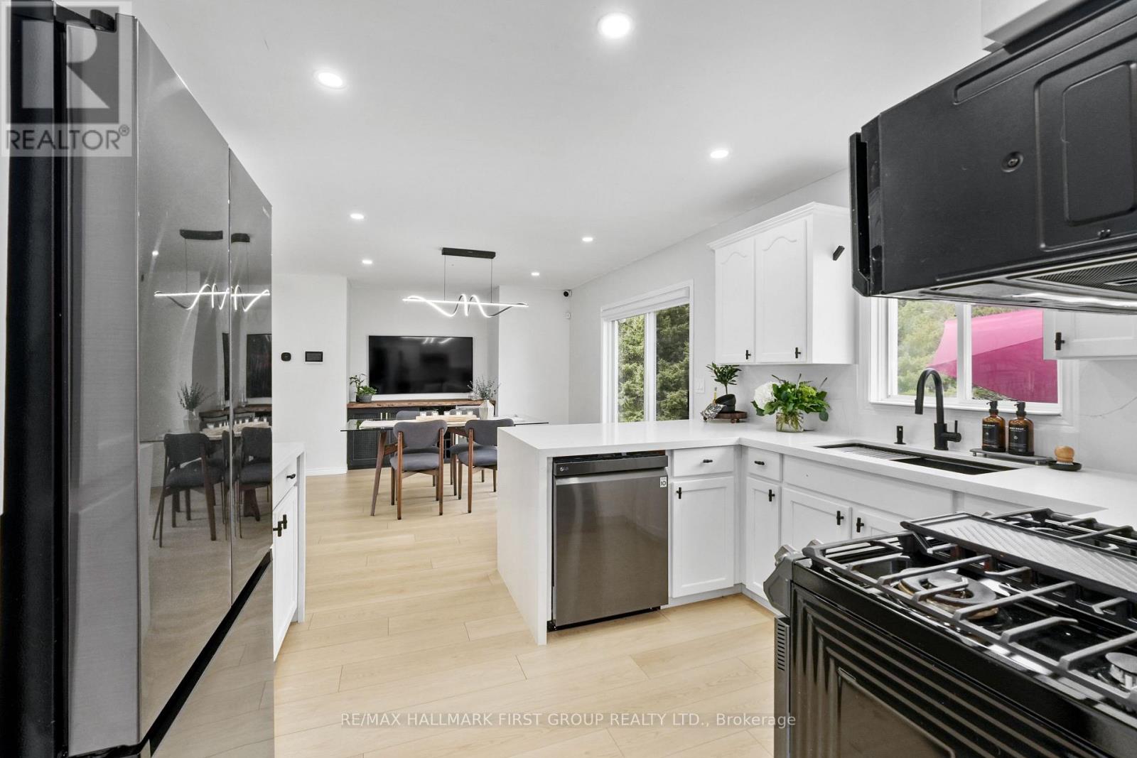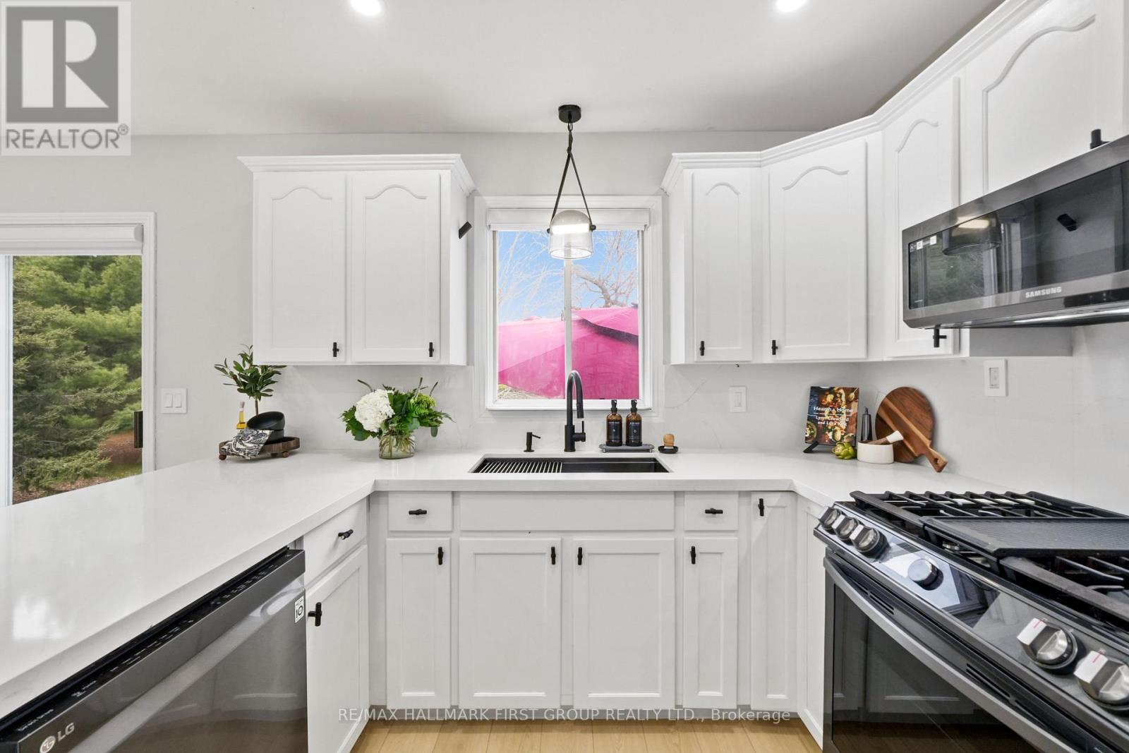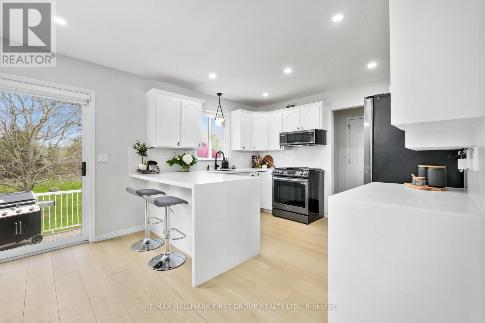 Welcome to this beautifully updated bungalow, set on a spacious lot. This truly move-in-ready home blends timeless charm with modern finishes, smart technology, and major mechanical upgrades, including a newly installed furnace and central air conditioning for year-round comfort and peace of mind.Step inside to discover updated flooring and thoughtfully curated lighting throughout, featuring pot lights, chandeliers, dimmers, and motion-sensing switches. Smart home features are seamlessly integrated to elevate everyday living, including smart blinds for effortless light and privacy control, a smart thermostat, video doorbells, and Telus security system wiring, offering both convenience and enhanced security at your fingertips. The open-concept main floor is bright and welcoming, with a sun-filled living room and a spacious dining area that walks out to the patio, perfect for indoor-outdoor entertaining. The show-stopping kitchen is designed to impress, boasting waterfall quartz countertops, a matching quartz backsplash, a single-bowl workstation sink, smart appliances, and a gas range. The main level also features a generous primary suite with a private ensuite, two additional bedrooms, a full bathroom, and a convenient powder room. The finished lower level expands your living space with a large recreation room that walks out to a backyard oasis complete with a cozy fire pit. A flexible guest suite is ideal for out-of-town visitors, while a spacious utility area provides ample space for DIY projects or hobbies. Ideally located near Northumberland Hills Public School, along with a church, library, convenience store, and other local amenities, this thoughtfully upgraded home delivers the perfect blend of comfort, style, and modern living. BONUS FEATURES: water softener and filtration system, Cogeco high-speed fibre internet (1 Gbps), gas BBQ hookup, spare gas line ready for a future outdoor kitchen, and new furnace & A/C. (id:4555)