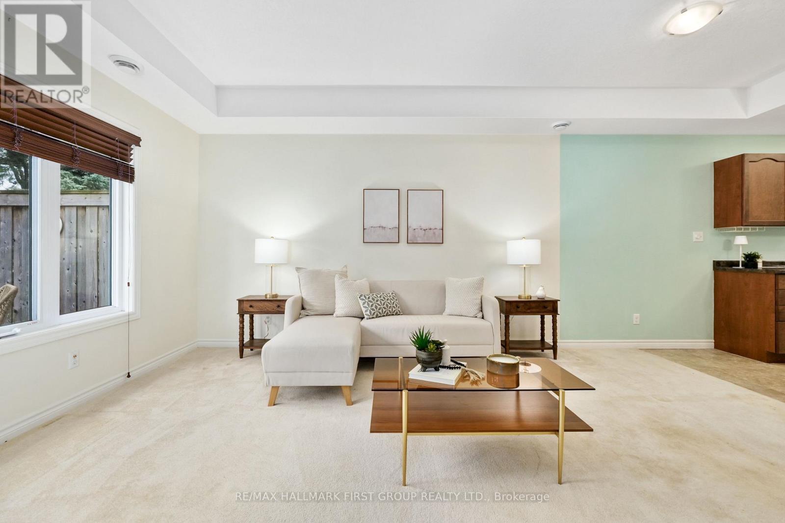 Enjoy low-maintenance living in this thoughtfully designed one-level townhouse. The inviting open-concept living room and kitchen create a well-laid-out living space with a walkout to the backyard. The eat-in kitchen offers ample cabinet space and built-in appliances, perfect for daily meals and entertaining. The primary bedroom features a walk-in closet and a full bathroom, offering a private retreat. Guest bedroom, convenient main-floor laundry and direct access to the attached garage add everyday functionality. Step outside to a charming back garden with a deck and green space, ideal for relaxing or enjoying warm-weather evenings. Located steps from a park and baseball diamond, with quick access to amenities and Highway 2 and the 401, this is an ideal place to start your carefree Northumberland lifestyle. (id:4555)