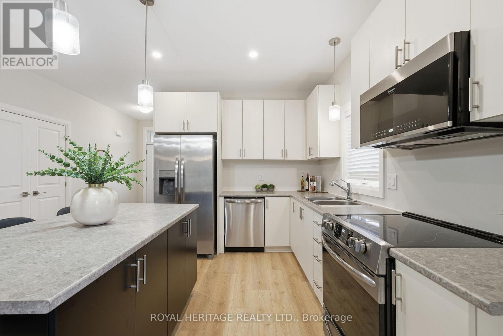 Beautifully upgraded end-unit freehold townhome in the sought-after Foxtrail Ridge subdivision. With the feel of a semi-detached home and a lot size comparable to some detached properties, this 2023-built home offers modern convenience, style, and flexibility in a charming small-town setting. The bright open-concept main floor is flooded with natural light and features 9-foot ceilings, an upgraded kitchen, garage access from the house, two bedrooms, including a spacious primary suite with walk-in closet and private ensuite, plus an additional 2-piece bathroom for guests. Step out from the kitchen and dining area onto the deck with built-in BBQ and enjoy the fully fenced yard. The basement offers a separate entrance to a 1-bedroom in-law suite complete with its own kitchenette, separate laundry, and private living space, making it ideal for extended family or multi-generational living. Each unit has its own laundry room for added convenience. Additional highlights include a 1.5-car garage and side-by-side parking for two vehicles in the driveway. Located in a fantastic area, you can walk to the quaint village downtown of Colborne, local schools, and Lake Ontario, while being just 3 minutes to Highway 401 for an easy commute. Covered under Tarion warranty, this is an exceptional opportunity to enjoy contemporary living in a desirable neighbourhood. Public Open House Sunday March 15th, 2 - 4 PM. (id:4555)