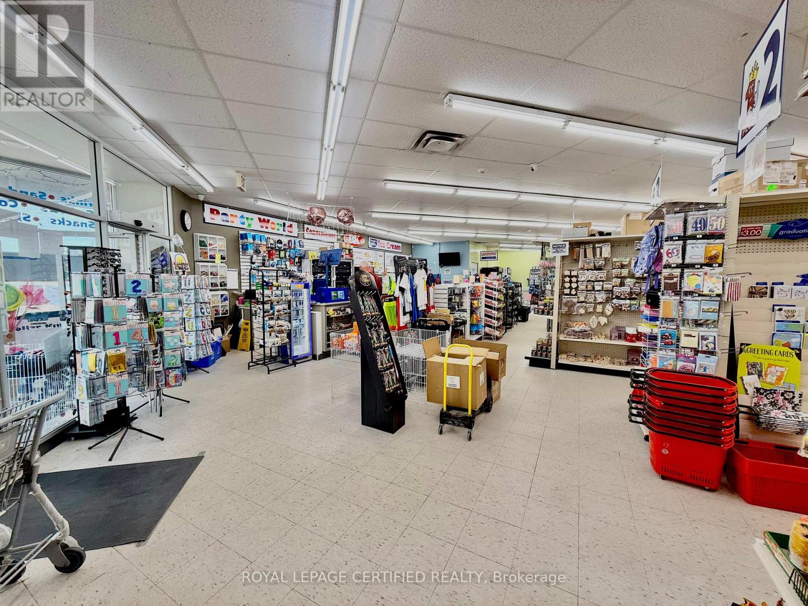 A rare opportunity to acquire a profitable and long-standing business in the heart of Deep River. Dollar King is a well-established operation located in a busy plaza and surrounded by residential buildings that consistently boost foot traffic. This one-stop shop offers multiple income streams, ensuring steady traffic and reliable revenue throughout the year. The store carries a full range of dollar store items, convenience goods, party supplies, seasonal products, cigarettes, and lotto sales, along with an ice cream counter and the only laundromat in town. The laundromat generates steady business year-round and becomes especially profitable during peak cottage season. A major highlight is the rapidly expanding beer sales: with the closure of the only beer store in town, this location has quickly become the go-to destination for beer purchases, significantly boosting profitability and offering excellent growth potential. This location also offers excellent value with low rent that includes water and heat, keeping overhead low. A large office with a full washroom can be used by the owner or staff for overnight stays, and a spacious basement provides additional income opportunities by subletting for children's activities, birthday parties, or community events. Deep River is home to the Canadian Nuclear Laboratories (CNL), which are expanding operations and expected to bring more families and workers into the community a positive outlook for future business growth. This turnkey operation is ready for new ownership and offers strong income potential with growing demand for its products and services. (id:4555)