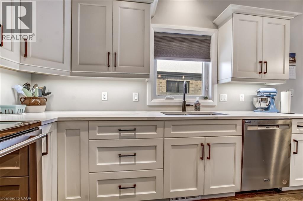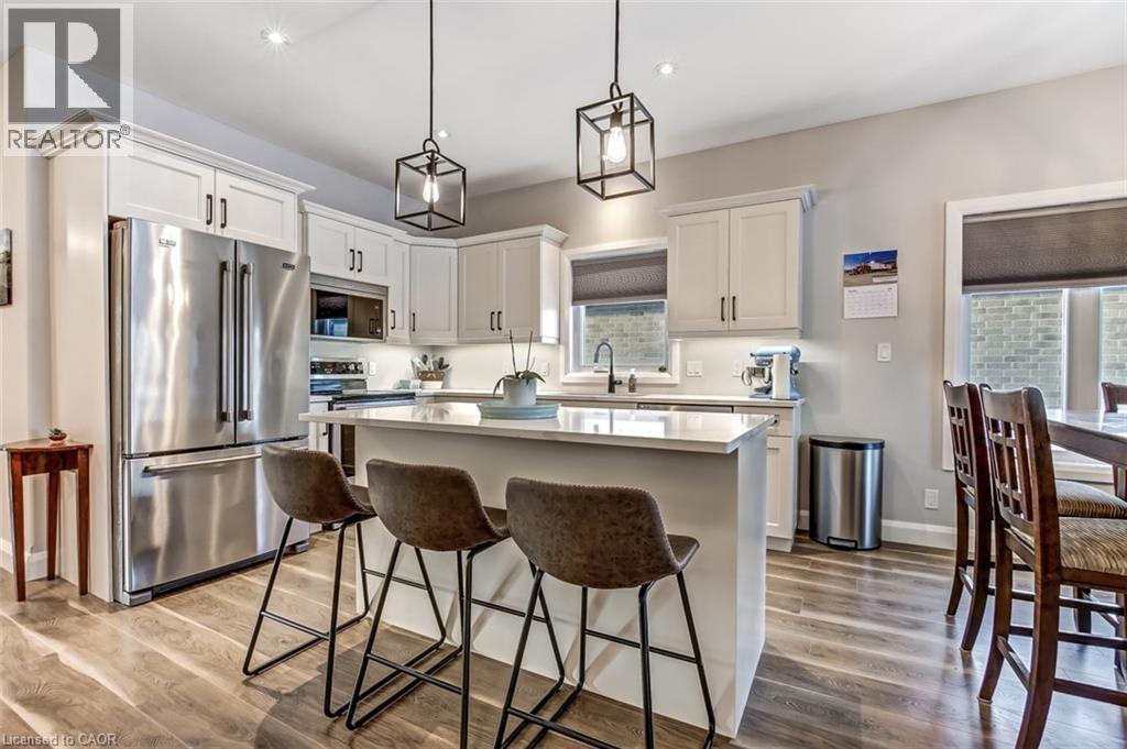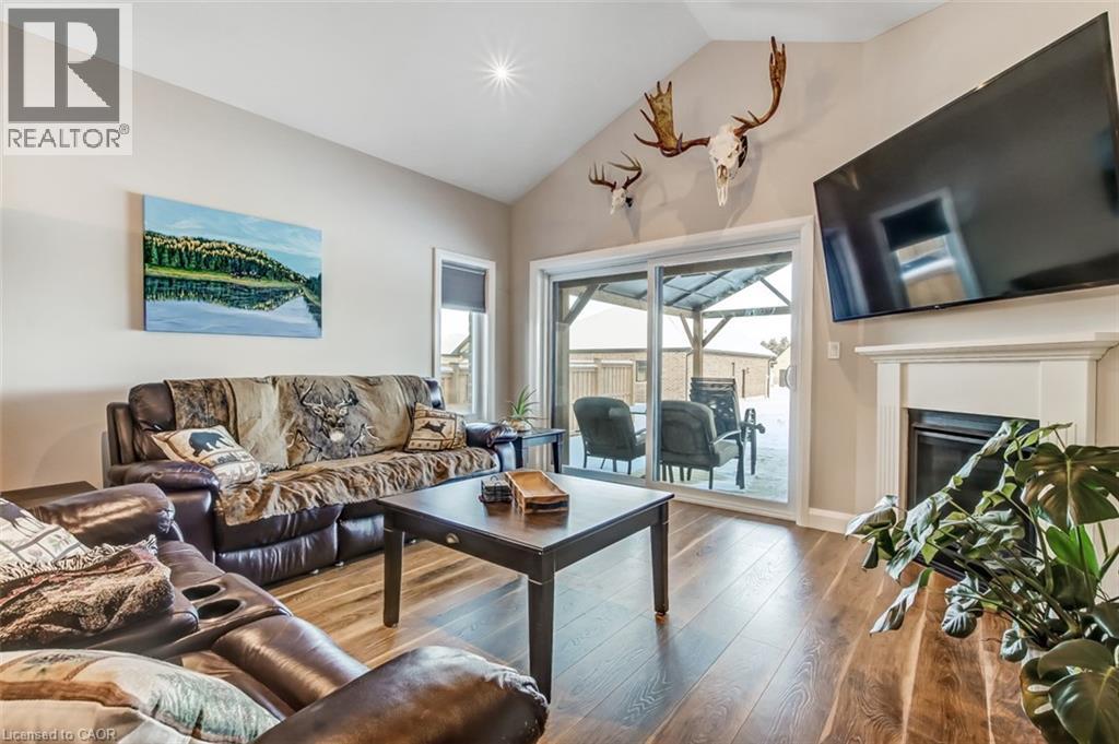 Welcome to 393 Argyle Street! This 1.5-year-old semi-detached bungalow is just like new and move-in ready, complete with appliances and finished landscaping. Thoughtfully designed with modern finishes and a neutral colour palette, this home offers both style and functionality. The open-concept main floor features custom cabinetry, quartz countertops, a center island with seating, and stainless steel appliances, seamlessly flowing into the adjacent dining area—ideal for everyday living and entertaining. Enjoy the convenience of main floor laundry and a bright, welcoming living room highlighted by a cathedral ceiling, gas fireplace, and oversized patio doors leading to the rear deck. The spacious primary bedroom includes a private ensuite with a large tiled shower. A second generous bedroom and full main bathroom provide comfortable accommodations for guests or family. The full, unfinished basement offers excellent potential with a rough-in for a future bathroom. Additional features include an attached single-car garage and a transferable TARION warranty, and a poured concrete common wall for comfort and peace of mind. Taxes not yet assessed. A fantastic opportunity to own a modern bungalow with quality finishes in a desirable location—book your showing today! (id:4555)