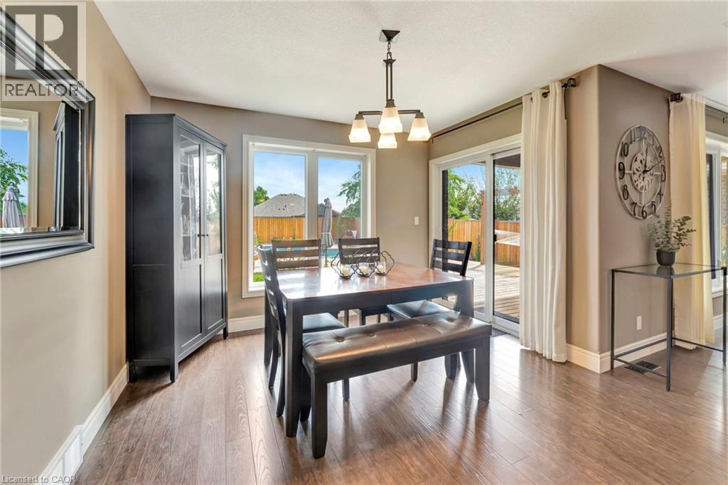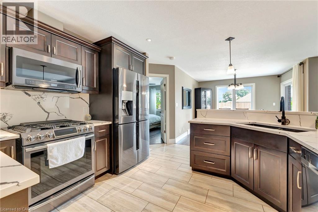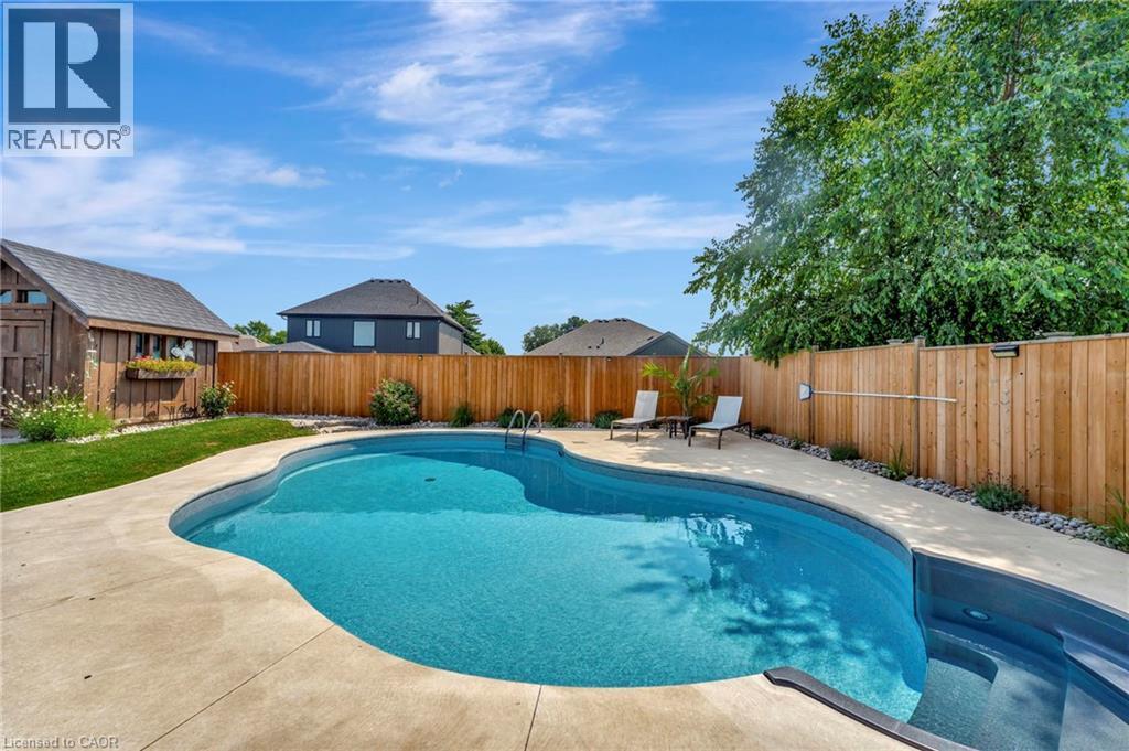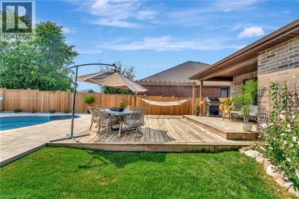 Welcome to this beautifully maintained 2+1 bedroom, 2 bathroom brick bungalow in Delhi, Ontario — offering stylish finishes, functional living space, and your own backyard oasis. Step inside to a welcoming foyer that leads to a bright front bedroom and convenient 4-piece bathroom — perfect for guests or a home office. The open-concept living room is warm and inviting, anchored by a stunning stone fireplace that creates the perfect focal point for relaxing or entertaining. The gorgeous quartz kitchen features rich dark wood cabinetry, a breakfast bar with pendant lighting, and a dedicated dining area with sliding doors leading to your outdoor patio. Just off the kitchen, the spacious primary bedroom retreat offers a luxurious 5-piece ensuite. Main floor laundry adds everyday convenience. Downstairs, the partially finished basement provides a large recreation room and an additional bedroom — ideal for guests, teens, or extended family— plus a bathroom rough-in offering the opportunity to easily add a third full bathroom. Step outside and experience your own private paradise. The expansive wood deck with a built-in hammock extends your living space, while the exposed concrete with stamped edging adds a polished touch. Enjoy summers by the beautiful heated 16x32 South Coast inground pool, all maintained effortlessly with a 4-zone Rain Bird irrigation system. This home blends comfort, style, and outdoor luxury — a true standout in Delhi. (id:4555)