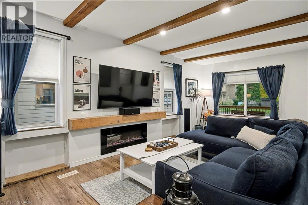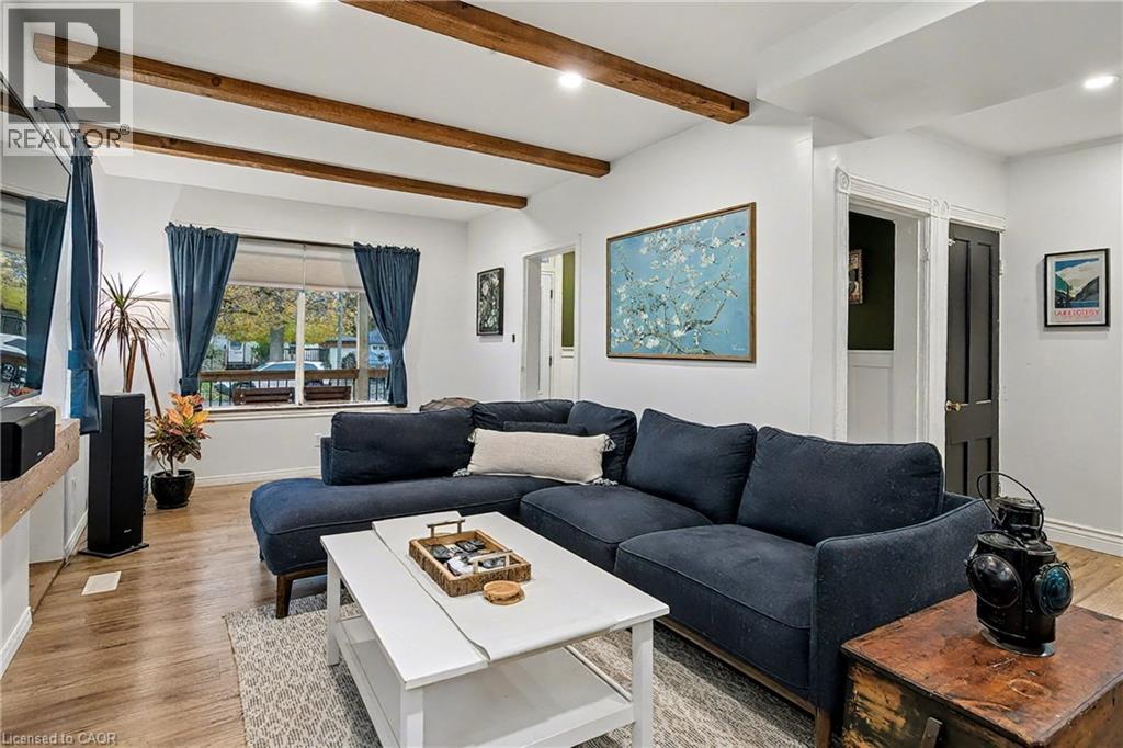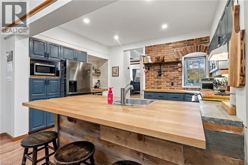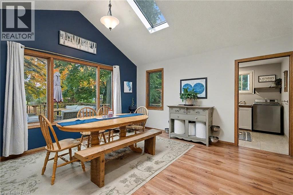 Welcome to this beautifully updated 2-bedroom plus den, 2-bathroom home located in the heart of Drayton—just steps from the Drayton Festival Theatre, Drayton Chop House, local schools, pharmacy, grocery store, and more. Originally built in 1895, this home has been thoughtfully renovated throughout, blending timeless charm with modern comfort. Inside, you’ll find a fully refreshed main floor featuring an open-concept living room with exposed beams and an electric fireplace, creating a warm and inviting atmosphere. The kitchen combines modern and rustic touches, while the bright dining area with high ceilings and skylights fills the space with natural light. From here, enjoy views of your private backyard—and the peace of mind knowing no one can build behind, as conservation land runs along the back of the property. Just beyond, you’ll find a nearby park perfect for relaxing or play. The main floor also includes a renovated mudroom with laundry, a full bathroom, and new flooring throughout, offering both style and functionality. Upstairs, there are two spacious bedrooms and a den, with the primary bedroom featuring a walk-in closet and a connected den—ideal for a home office or nursery. Notable updates include a complete renovation of the main floor living room, updated bathrooms and kitchen, new flooring and carpet throughout, a rebuilt porch, new garage door, paved driveway, and updated 200-amp electrical service/panel. Mechanical updates include a furnace and hot water tank (2017), offering added peace of mind. With its combination of thoughtful updates, character details, and unbeatable location, this home is truly move-in ready and full of charm. Book your showing today and discover the perfect mix of history, style, and small-town living in Drayton! (id:4555)