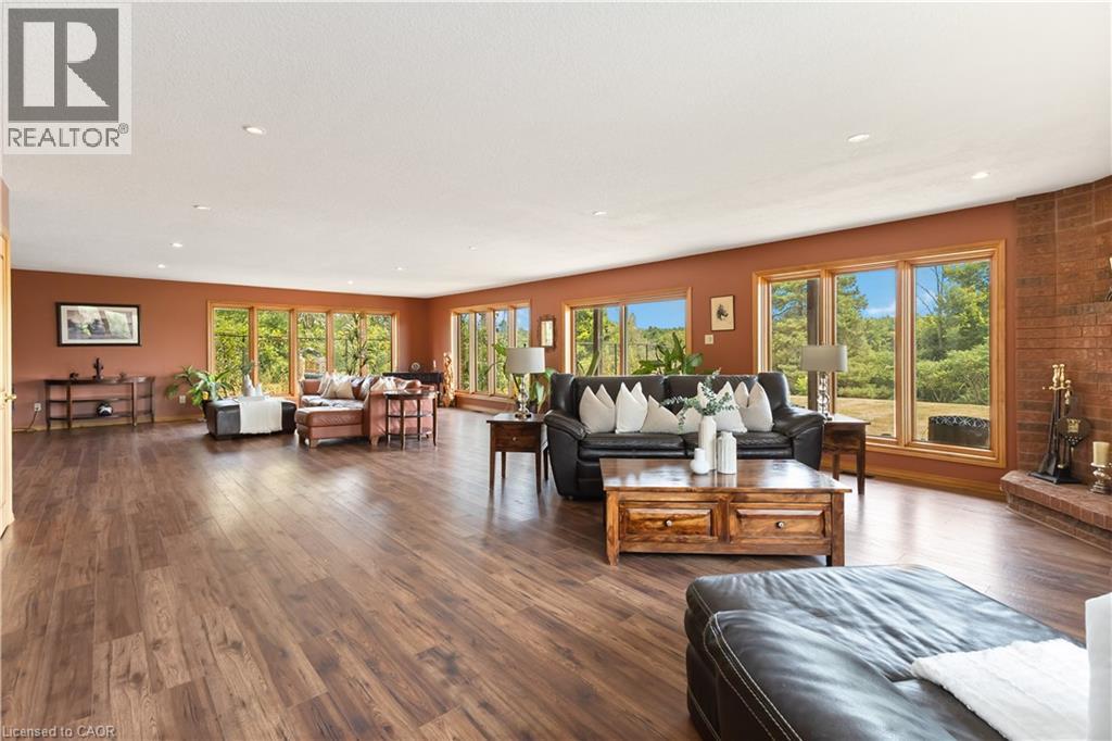 50 Acre Equestrian & Lifestyle Retreat, just minutes from Highway 401 and close to all amenities. Boasting over 1800 ft frontage, breathtaking valley views, and a mix of open fields, forest, and a spring-fed pond. This custom-built 4500+ sf builder’s home showcases quality and craftsmanship. The gourmet kitchen features a backlit Patagonian granite island, high-end appliances, and a bright, functional layout. The spacious dining area flows into an open-concept living room with engineered beams and abundant light. Step onto the deck—complete with a Napoleon fire table—for stunning views. The primary suite offers a spa-like ensuite with a double rain shower and direct access to a covered deck for sunrise views. The main bath features a jacuzzi tub beneath a landscape window for stargazing. The fully finished lower level includes a wet bar, billiards, 2-piece bath, theatre area, and oversized cedar sauna with shower across from the fitness room. Modern comforts include: geothermal heating/cooling, wood & propane fireplaces, and a new high-end water treatment system. The attached garage offers parking, workspace, a workbench, large compressor, and propane line for upgrades. Outdoor Highlights: 5 km of groomed trails for hiking, riding, or ATVs, Large spring-fed pond (dogs welcome!) Fully fenced yard, mature trees, underground irrigation, and small orchard (no pesticides/herbicides in 20+ years) Private campground with water, septic, and seasonal washroom. Horse facilities: Large paddocks with sandy loam soil (no mud), Massive outdoor riding arena with solid oak fencing, ideal for cattle work/events, Paddocks with water lines, vinyl/hightensile/oak fencing, and diamond bar gates Two-stall barn with electricity, water, and open foaling area, Income from boarding and events. An equestrian business, hobby farm, or simply living immersed in nature, this remarkable estate offers endless possibilities. Please DO NOT visit the farm without an appointment (id:4555)