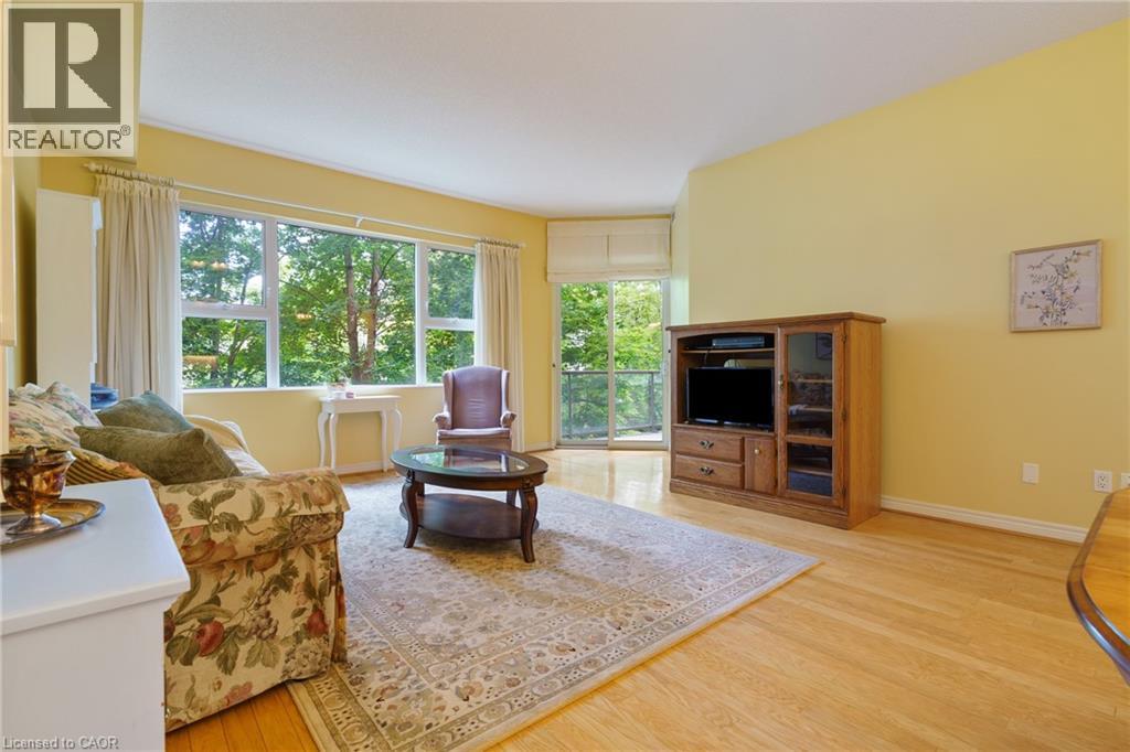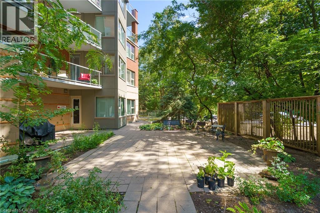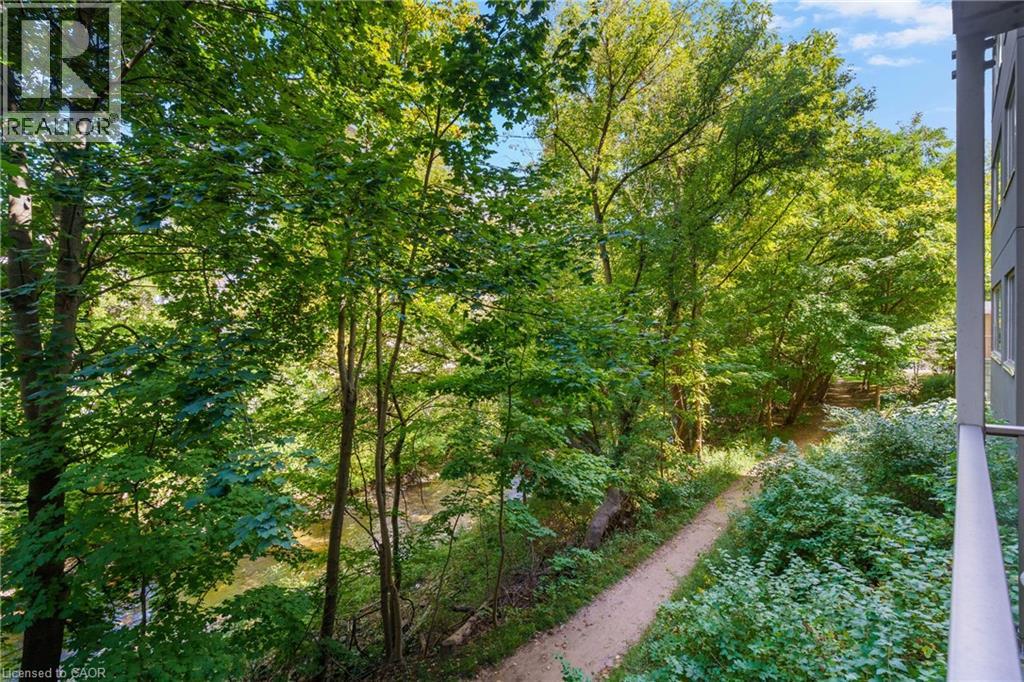 Discover this magnificent condo apartment perfectly situated along the rushing Spencer Creek, where serene natural surroundings meet the convenience of downtown Dundas just steps away. Located on the coveted main floor, this residence combines ease of access with the elevated privacy of a balcony that overlooks lush, tree-lined greenspace—offering the feeling of a retreat while still close to shops, dining, and an abundance of amenities. Inside, the home features lofty 9’ ceilings, rich hardwood flooring, and a warm palette. The inviting open-concept living and dining area seamlessly connects to the private balcony, while pocket doors lead to a bright eat-in kitchen equipped with crisp white appliances. The spacious primary bedroom includes a 4-piece ensuite with a soaker tub and separate walk-in shower. A second bedroom, additional 3-piece bathroom, and an ample-sized laundry/utility/storage room add both comfort and functionality. This landmark building is celebrated for its innovative architecture, offering a truly unique condo experience. Residents enjoy an array of amenities, including a well-appointed party room, fitness room, and a convenient guest suite for overnight visitors. Designed for carefree living, this condo offers tranquil views, elegant surroundings, and a worry-free lifestyle in one of Dundas’ most coveted communities. (id:4555)