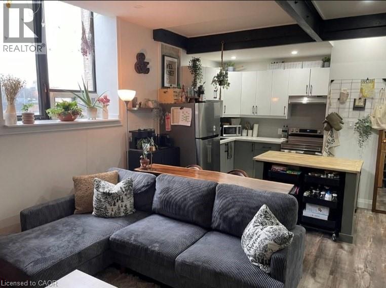 Exceptional location right in the heart of Dundas. This two-story unit offers the perfect blend of modern comfort and historic character. With a recently renovated kitchen, a spacious bathroom, and a one-of-a-kind second-story bedroom, this home is ready for you to move in. Enjoy your mornings by the fire in your oversized open living room. Nestled within a historic building, this unit combines the charm of Dundas with contemporary living. Right outside your doorstep, you'll find a vibrant community filled with local restaurants, boutique shopping, breweries, public transit, serene trails, and parks. It’s the perfect blend of city convenience and peaceful surroundings. (id:4555)