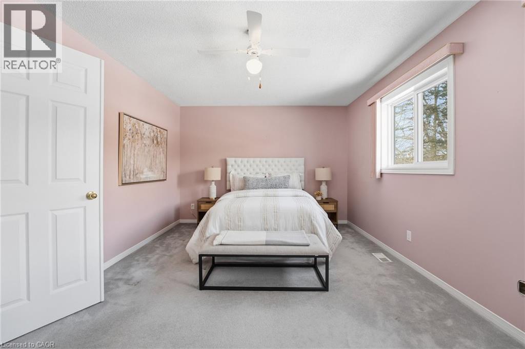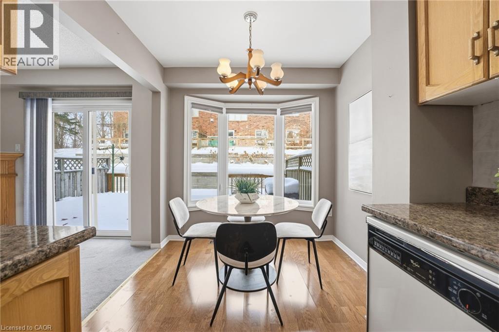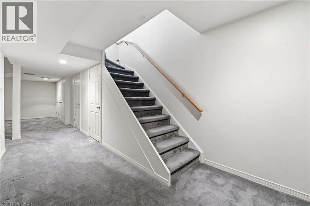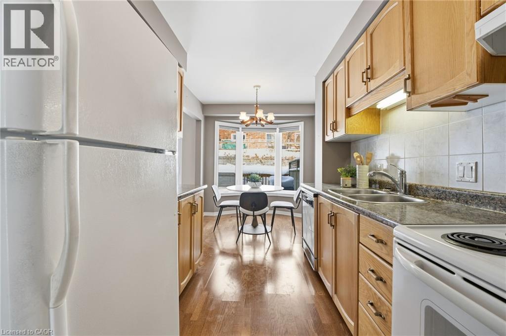 Welcome to this well-maintained condominium townhome located in a quiet, sought-after Dundas community. This inviting home offers a functional multi-level layout with bright principal rooms, attached garage parking, and a finished lower level—ideal for families, professionals, or downsizers. The main floor features a comfortable living room with a cozy gas fireplace and sliding doors leading to a private fenced patio, perfect for relaxing or entertaining. The adjacent dining area is filled with natural light from a charming bay window, while the kitchen provides ample cabinetry and counter space for everyday living. Upstairs, you’ll find spacious bedrooms with generous closet space and a well-appointed 4-piece bathroom. The finished basement adds exceptional versatility, offering a large recreation room, a dedicated home office area with built-in desk, and plenty of storage. Set in a peaceful, well-kept complex, this home is just steps from parks, conservation lands, and scenic walking trails, and minutes to downtown Dundas, schools, shops, and convenient highway access. A fantastic opportunity to enjoy low-maintenance living in one of Dundas’ most desirable neighbourhoods. (id:4555)