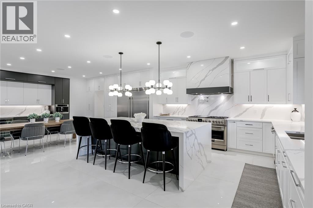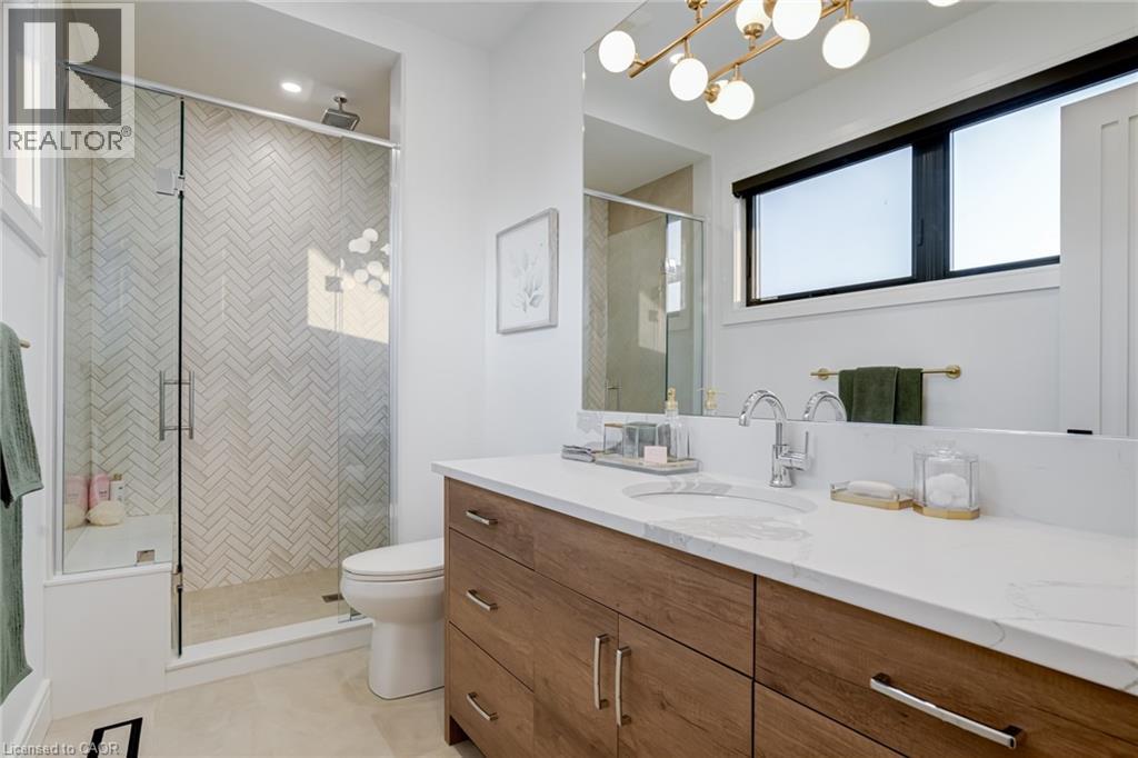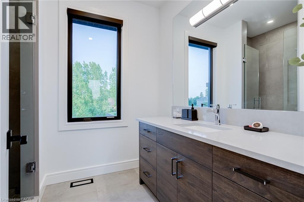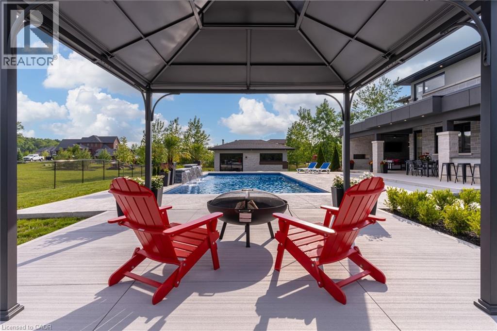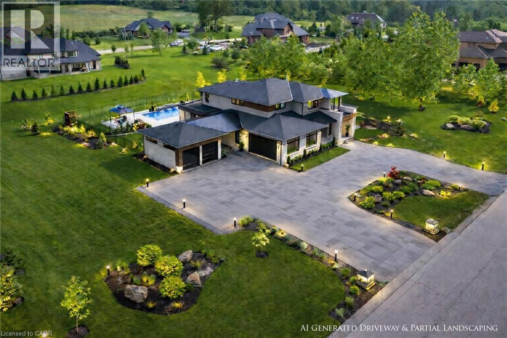 Discover unparalleled luxury in this custom-built modern masterpiece on a sprawling 1.6-acre estate in Greensville, one of Dundas' most exclusive neighbourhoods. Enjoy the tranquility of a private country retreat just minutes from downtown Dundas and a short drive to Ancaster, Burlington, and McMaster. This stunning home offers over 6,000 sqft of exquisitely designed living space with 4+1 bedrooms and 7 bathrooms. From the striking architecture and custom millwork to the warm ambiance created by designer fixtures, soaring ceilings, 4-foot porcelain tiles, and ¾-inch engineered hardwood, every detail will impress. The dramatic 19-foot great room features floor-to-ceiling black frame windows with automated blinds and a sleek gas fireplace wrapped in 10-foot porcelain slabs. The chef’s kitchen is a showstopper, equipped with top-tier appliances, quartz countertops, a waterfall island, built-in espresso bar, and a hidden walk-in pantry for a clean, streamlined look. The main-floor primary suite offers a spa-like retreat with a five-piece ensuite including heated floors, glass shower, freestanding tub, double vanity, and an oversized walk-in dressing room with custom organizers. Upstairs, three bedrooms each have unique ensuite baths and 9-foot ceilings, ensuring privacy and comfort. The finished lower level expands your living space with a full secondary kitchen, recreation room, gym or guest bedroom, full bathroom, and a soundproof home theatre—ideal for entertaining or multi-generational living. Car enthusiasts will value the 5-car garages with a car lift, alarm system, and heated bay for year-round comfort. Outside, relax in your resort-style oasis with a heated saltwater pool, outdoor family room & kitchen, and full bathroom. A custom garage-style shed and pool house enhance the property’s sleek design. Additional features include a whole-home 20KW generator, Control4 smart home automation, and electric car rough-in. This estate is more than a home—it’s a lifestyle! (id:4555)