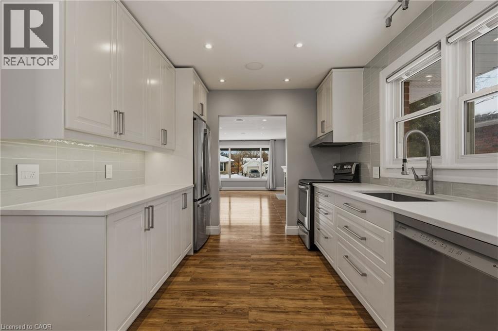 Welcome to this truly turn-key bungalow backing directly onto lush greenspace in highly sought-after University Gardens — where privacy, lifestyle, and income potential come together effortlessly. Tucked into a quiet, family-oriented neighbourhood just minutes from shopping, transit, and everyday amenities, this home offers the perfect blend of quality construction, thoughtful updates, and exceptional versatility. Lovingly maintained, it features cove mouldings and a cozy wood-burning fireplace anchoring the bright, open living and dining area. Large vinyl windows flood the space with natural light, highlighting updated flooring. The main level offers three generous bedrooms and a beautifully renovated kitchen with stone countertops, stainless steel appliances, and abundant cabinetry — stylish, modern, and functional. The professionally finished lower level adds exceptional versatility with a spacious in-law suite complete with two large bedrooms, an eat-in kitchen, bright family room, and 3-piece bath — ideal for multi-generational living or added income. Step outside to your private, fully fenced backyard oasis, featuring an expansive deck and a serene greenspace backdrop with no rear neighbours — perfect for entertaining, relaxing, or enjoying peaceful outdoor living. A rare opportunity in University Gardens that is completely move-in ready and not to be missed. (id:4555)
