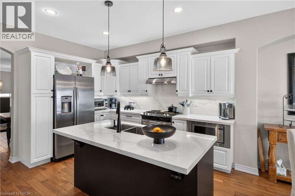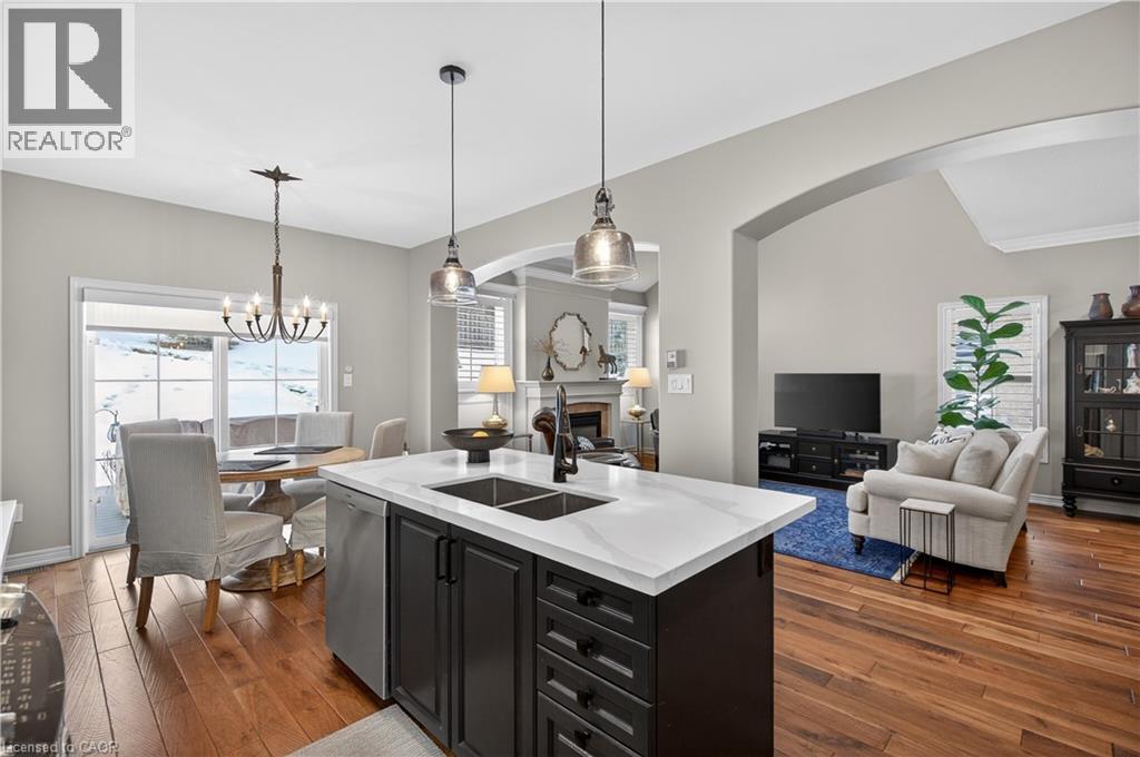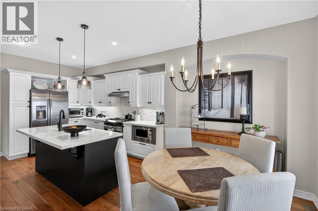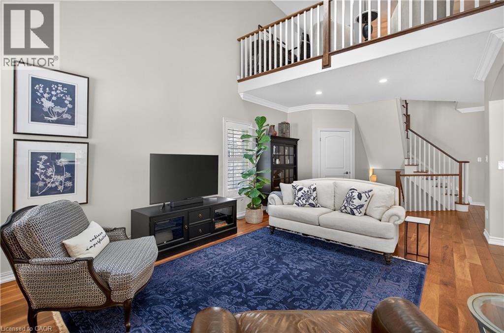 Set within one of Dundas’ most exclusive enclaves in Pleasant Valley, this executive residence offers an uncompromising blend of craftsmanship, privacy, & refined living. Positioned at the rear of the complex - highly desirable for its privacy - this home makes an immediate impression w/ its striking façade, blending stone, brick, a distinctive bell-shaped roof-line & tasteful shutters. The 2-car grg w/ inside entry, surfaced parking for 2 & bonus visitor parking ensure convenience. Main lvl feat incl a spacious foyer, an elegant kitchen w/ white cabinetry w/ crown detail, quartz, S/S app & a centre island w/ breakfast bar seating for 3+, a convenient dinette area, liv rm w/ vaulted ceilings, 2 skylights & a cozy gas FP, a formal din rm providing the perfect backdrop for family dinners & special occasions, main lvl laundry facilities & a well-appointed powder room. Ascending the piano-style wood staircase to the 2nd level, the loft - currently used as a home office - overlooks the liv rm below. The primary retreat feat exquisite wall moulding, 2 storage closets, & a spa-inspired 4-pc ensuite w/ an oversized glass shower, soaker tub, & vanity. The 2nd bdrm enjoys its own private 3-pc ensuite w/ an oversized glass shower. The f-fin bsmt offers a spacious rec rm w/ a corner gas FP, a bonus flex space, a 2-pc bath, & multiple storage/utility areas. The rear yard is designed for exceptional outdoor living, feat an oversized composite deck w/ a patio cover for protection from the elements, a separate terrace area, & picturesque scenic views in every direction. Living in Pleasant Valley means enjoying Dundas’ natural beauty, scenic conservation areas, & walking trails, while being minutes to the charming downtown core filled w/ boutique shops, cafés, restaurants, & community events. Opportunities in this sought-after enclave are rare - an exceptional home in an extraordinary setting. (id:4555)