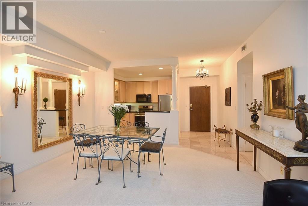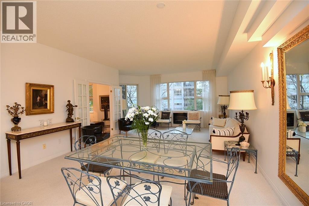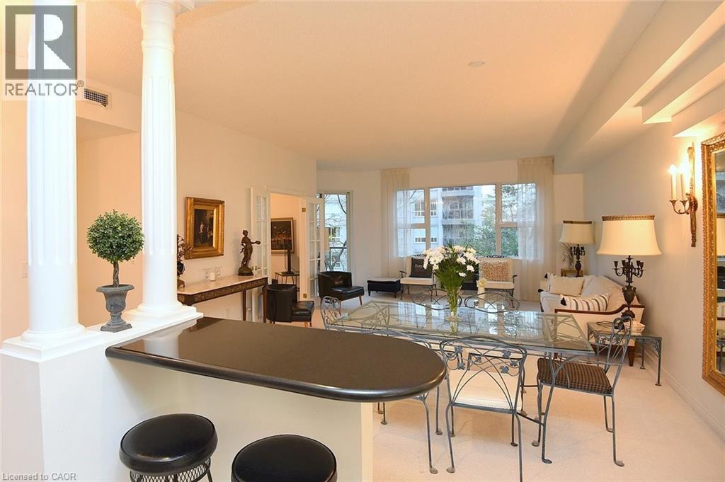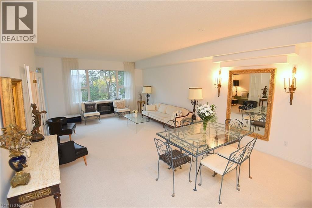 Welcome to this beautifully maintained 1,200 sq. ft., two bedroom, condo in one of Dundas’ most sought-after buildings! Boasting 9’ ceilings and an open-concept design, this bright and inviting home offers the perfect blend of comfort and convenience. The generous living and dining areas flow seamlessly into the well-appointed kitchen, creating an ideal space for both everyday living and entertaining. Step out onto the private balcony and enjoy peaceful views of the treed area and Spencer Creek — a serene backdrop right at home.The spacious primary bedroom features a walk-in closet and a 4-piece ensuite bath, providing a private retreat within this lovely unit. The second bedroom can be used as a family room or home office. Immaculately cared for, this condo is clean, bright, and move-in ready. The condo’s amenities include a guest suite, fitness room, sauna and a party room that boasts a full kitchen and a terrace with a BBQ, perfect for entertaining. Located close to all amenities, public transit, and scenic walking trails, this is condo living at its best in beautiful Dundas. Don’t miss your chance to call this exceptional property home! (id:4555)