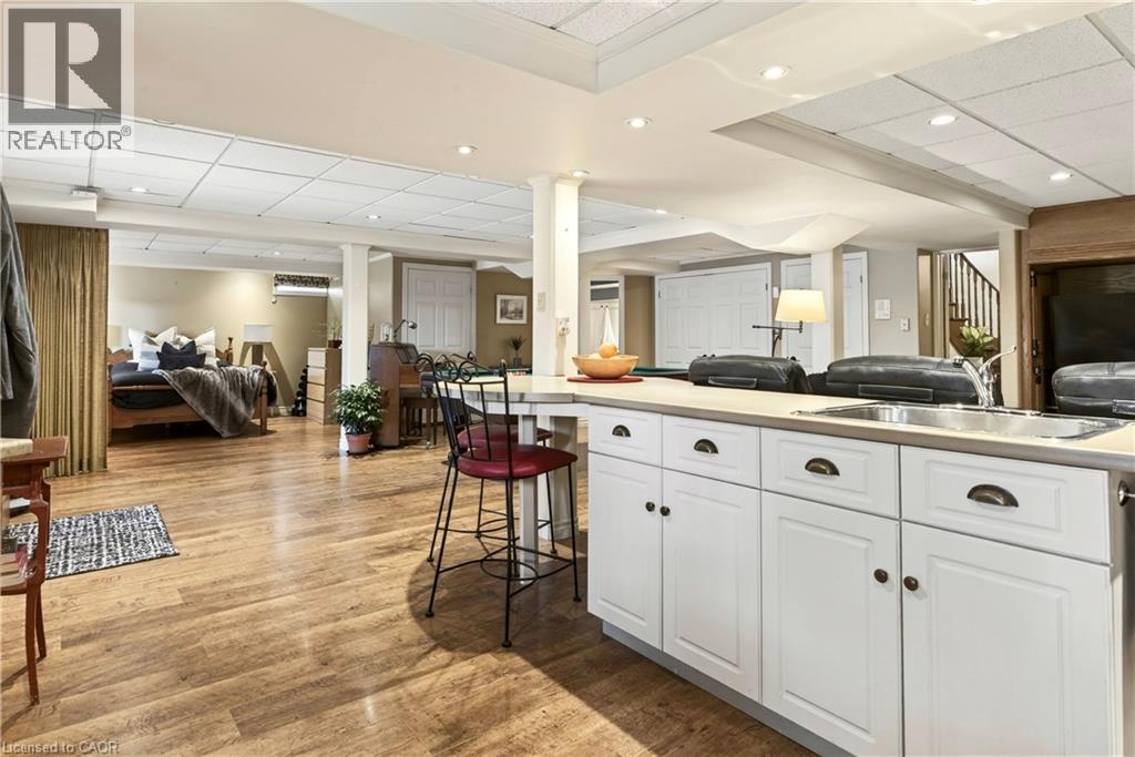 Come see me now! Welcome to 29 Gaines Avenue, a spacious two-storey home in one of Dundas’ most desirable neighbourhoods, ideal for growing or multi-generational families. A dramatic two-storey foyer with an oak staircase creates a welcoming first impression, while hardwood flooring adds warmth throughout much of the main and upper levels. Designed for everyday living and entertaining, the bright eat-in kitchen features professionally painted cabinetry with new hardware, quartz countertops, updated sink, island, stainless steel appliances, generous storage, and a walkout to the large upper deck. A double-sided gas fireplace connects the kitchen and Great Room, creating a natural gathering space. Formal living and dining rooms provide additional space to host, while a flexible office, den, or playroom, a powder room, and main-floor laundry with inside access to the two-car garage complete the main level. Upstairs offers five bedrooms and three full bathrooms. The spacious primary suite includes a five-piece ensuite, two walk-in closets, and a gas fireplace creating a luxurious and relaxing sanctuary. One bedroom features a private ensuite, while another bath offers ensuite privileges for added convenience. The fully finished walk-out basement extends the living space with a full kitchen, expansive recreation and games areas, bedroom, and full bathroom—ideal for extended family, guests, or additional flexibility. Outdoors, the fully fenced backyard is thoughtfully landscaped with perennials, stonework, and exposed aggregate steps. The upper deck with wisteria and gas BBQ hookup overlooks a private yard complete with a hot tub, powered garden shed, koi pond with tiered seating, and in-ground sprinkler system. Fresh décor, updated lighting, and new hardware make this move-in ready home an exceptional opportunity. (id:4555)