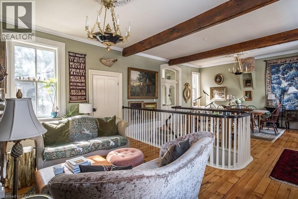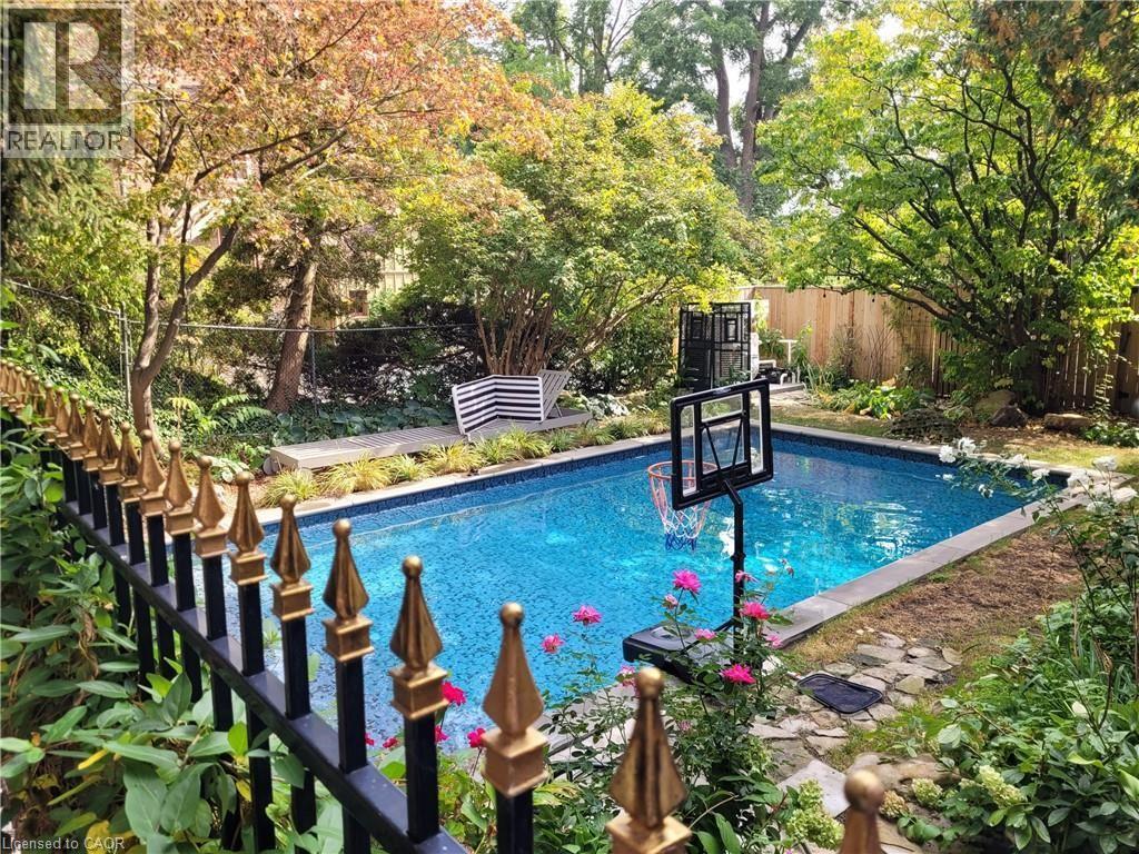 Dundas Dream! This circa 1880 beautiful character home, but not really a cottage, which looks like a bungalow from the street, offers an impressive near 2500 sq ft of outstanding living space, starting with the storybook curb appeal w/ gorgeous perennial landscaping, but wait 'til you see what it's like in the backyard with a full 2 stories in the rear! A choice locale where you're right in the heart of the Cross-Melville heritage district of downtown Dundas! Walkable to everything this bungalow has a private ‘forest’ on a 72’ double wide lot, featuring a sunken garden and inground heated saltwater pool surrounded by lush ferns, hostas, peonies, rose bushes, hydrangeas and Japanese grasses. This tardis of a home is much larger than it appears and its flexible layout is perfect for empty nesters and includes private space for another family member. Professionally transformed to a re-imagined layout and living space, stripped to the studs in 2023. New HVAC, wiring, footings, support beams and everything, plus the joy of staying inside to do your laundry!! Unique reverse bungalow layout with main level living and lower garden level bedrooms, all at or above grade. 4 beds and 4 baths (2 half). The primary has jack and jill 5-piece bath access & a large WIC. Another with custom built-ins w/ closet and desk. The remaining two bedrooms share a WIC in their own ‘wing’. Additional storage via a large custom hallway w/ built-ins featuring double closets and a bench with hooks. There’s even secret storage under the newly constructed, heritage style, staircase. This home is not to be missed. Loads of charm and character from rustic pine plank floors, salvaged brick floors from the old Grafton building, antique mantel with ornate cast iron insert, beamed ceilings, matching regency chandeliers imported from Chicago, and so much more. (id:4555)