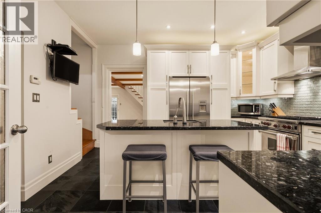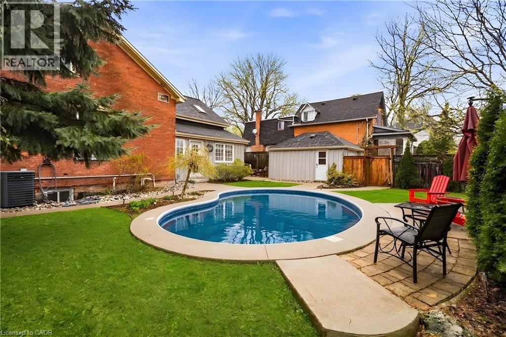 Don’t be fooled by its charming curb appeal—this circa 1885 double brick home offers far more space than meets the eye. Ideally located just moments from downtown Dundas, you’ll enjoy easy access to local shops, cafés, restaurants, and galleries, along with nearby theatres, recreation facilities, parks, trails, and top-rated schools. With 4 bedrooms, a versatile den, and 2.5 bathrooms, it’s designed to comfortably accommodate family living and entertaining alike. A thoughtfully designed two-storey board-and-batten addition integrates beautifully with the original home, showcasing unique touches like a reclaimed leaded glass window in the mudroom. At the heart of the home, the kitchen is both stylish and functional, featuring granite countertops, a generous island, slate floors, and abundant cabinetry—ideal for everyday living or hosting. The main floor blends historic charm with modern updates. The formal living room highlights original pine plank floors, while the dining room—graced with a stained glass transom—offers ample space for gatherings. The inviting family room stands out with its beamed ceiling, exposed brick, wood stove, hardwood flooring, and dual walkouts to the backyard. Upstairs, two separate staircases lead to a spacious primary suite complete with built-in storage and a private 3-piece ensuite. Three additional bedrooms, a bright office, and five skylights fill the upper level with natural light. A convenient Jack-and-Jill bathroom features a walk-in shower with a built-in bench. Set on an impressive 69-foot frontage, the fully fenced backyard is a private retreat with a heated in-ground saltwater pool, deck, multiple patios, and beautifully landscaped gardens. A single-car garage and private driveway complete the package. With quick connections to McMaster and major routes, this home offers the perfect balance of charm, space, and convenience. A rare opportunity to own a truly special property in the heart of historic Dundas. (id:4555)