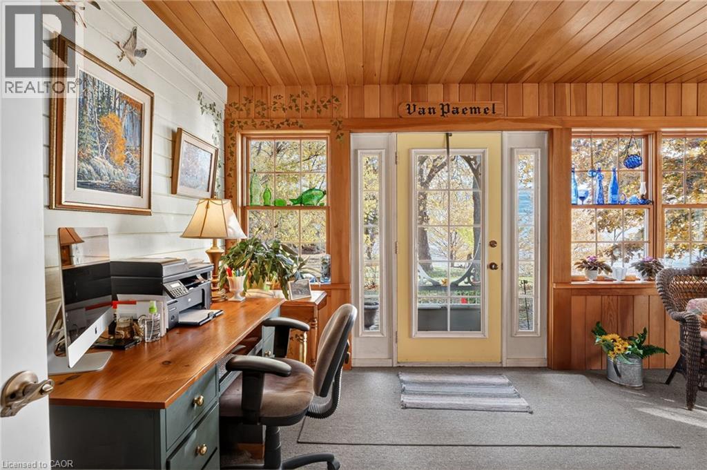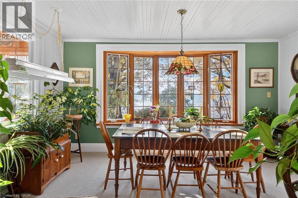 ‘Iconic’ Sandy Bay lakefront estate on near 1 acre lot! Virtually impossible to replicate – this two storey century old home (1908sf) crowns a gentle hill commanding true panoramic lake views & a stunning setting. Steeped in decades of cherished memories by a devoted owner, the MF is drenched in character & features a hi-functional cherry cabinet kitchen w/ lake views flowing to a grand living room w/ exposed wood beams, rich wainscotting, & a ‘cozy’ brick gas f/p – a true focal point. Host unforgettable dinner gatherings in a defined dining area framed by a sun-drenched bay window. The front of the home features two stately rooms w/ high ceilings – one currently used as a main floor master bedroom. An authentic wood-lined sunroom offers the ideal space to capture the morning sunrise or to sip your favourite nightcap. Completing the MF is a 2pc powder room & an updated 3pc bath. Second level features 3 expansive bedrooms & another 3pc bath – dabbling in wood plank flooring and custom built-in storage. A separate guest house features 1 bedroom, living room, kitchen, 3pc bath – all wrapped w/ warm t/g pine – ideal for cottage guests or extra income! Beneath is a converted single garage to a heated work shop (22x14). Tuck neatly into the topography and offering a serene setting is a lakeside studio (16x32) heated & insulated w/ loft storage – let your imagination run wild- art studio, yoga retreat, waterfront office, ++! Note: fibre optic internet, two f/air furnaces – one for main house & one for sep. unit, separate gas meters & hydro, durable steel roof on home, & excellent break wall w/ stairs to water’s edge. Mature trees frame this lot & a dead end road offers a quiet location & delivers cottage feels! Avoid terrible traffic & prices in cottage country ‘north’ – make Lake Erie your dream waterfront escape! (id:4555)