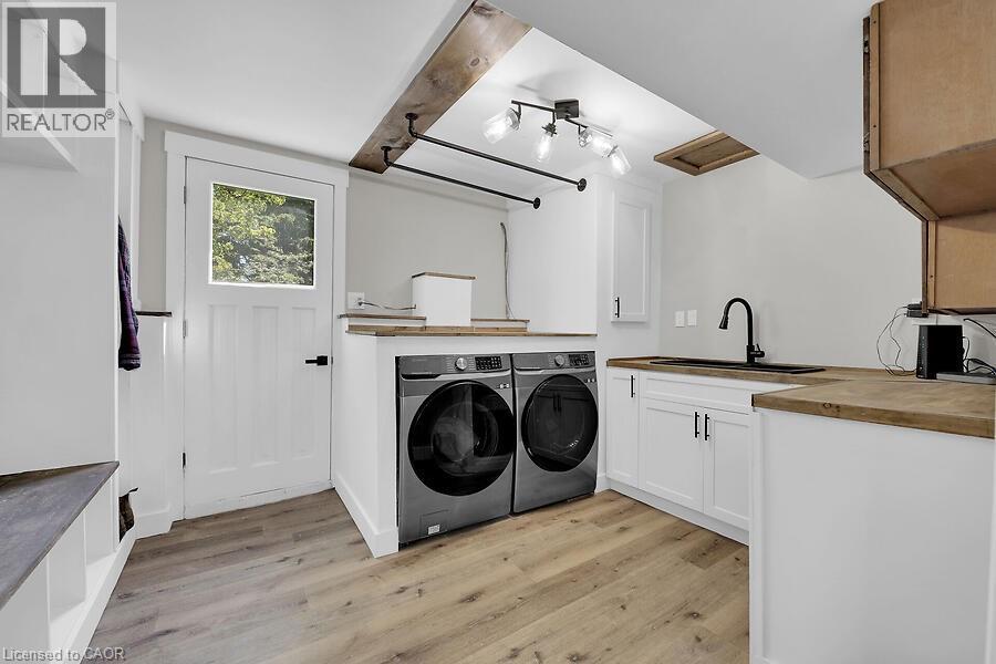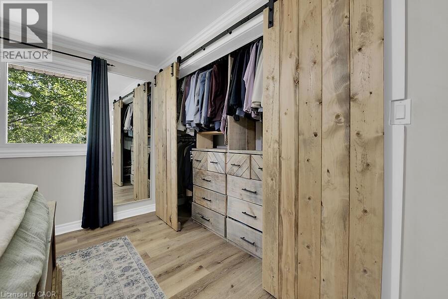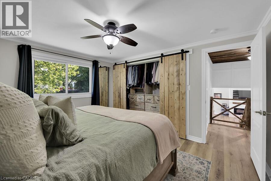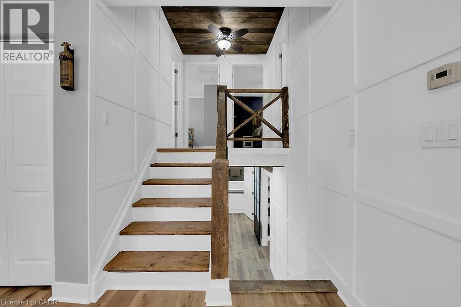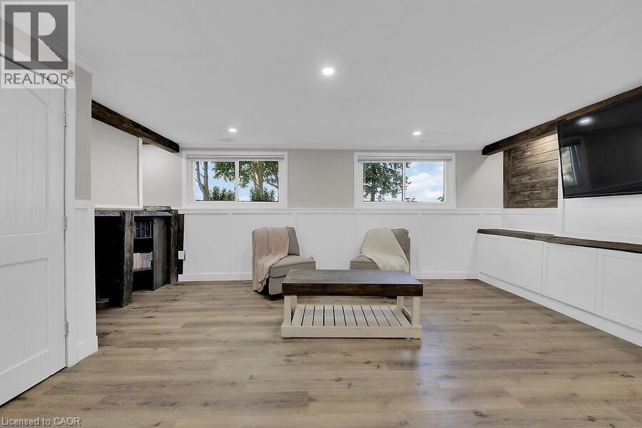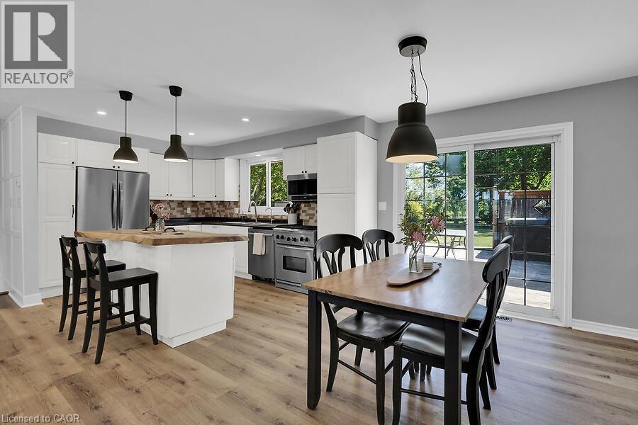 Welcome to this beautifully renovated 3-bedroom, 3-level side split home, ideally situated on a spacious corner lot. Combining modern elegance with rustic charm, this property offers the perfect blend of style, space, and functionality—ideal for families or anyone seeking a versatile home. Inside, luxury vinyl flooring flows throughout, creating a cohesive and durable foundation on every level. The heart of the home is a bright, open kitchen featuring a central island, sleek stainless-steel appliances, backsplash. Adjacent, the dining area opens via sliding doors to the backyard deck, seamlessly connecting indoor and outdoor living. The spacious living room is bathed in natural light from a large bay window and features a cozy electric fireplace, while pot lights throughout the main level enhance the inviting atmosphere, Inside entry from garage. A rustic staircase with panelled walls leads to three comfortable bedrooms. The primary suite has been newly renovated and boasts a wall-to-wall closet with barnboard doors, merging rustic charm with modern design, and a newly renovated 5-piece bathroom. The fully redone basement is a true highlight, offering a large recreation room perfect for family gatherings, hobbies, or entertainment. A dedicated office area provides an ideal space for remote work or study, and the laundry/mud room includes a convenient walk-up basement with a separate entrance—perfect for storage, added functionality, or private guest/in-law access. Step outside to your private country retreat. The backyard features a charming gazebo, a hot tub, a versatile workshop for projects and hobbies, and a thriving garden area ready for your green thumb. The driveway accommodates 10+ vehicles, large workshop 18.5 X 8.5 feet which you will appreciate. Recent updates include luxury vinyl flooring, renovated basement, primary bedroom, freshly painted interiors (2024), bath renovation (2025), built-in microwave, washer & dryer, and water heater owned (2023). (id:4555)