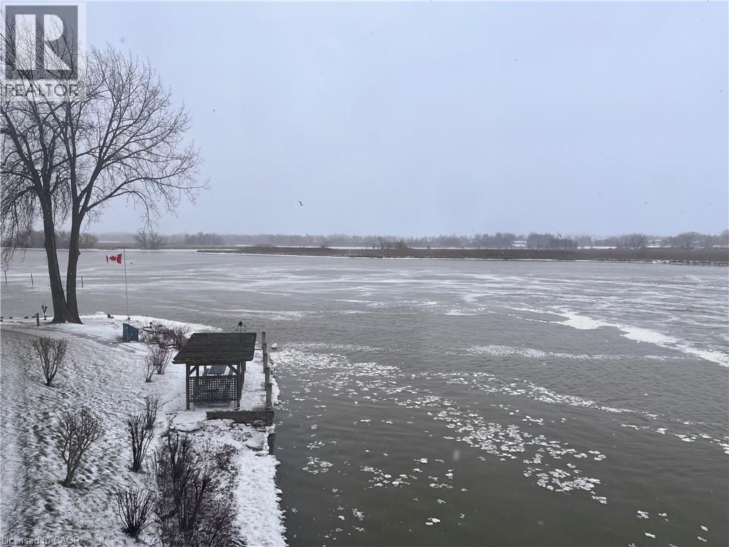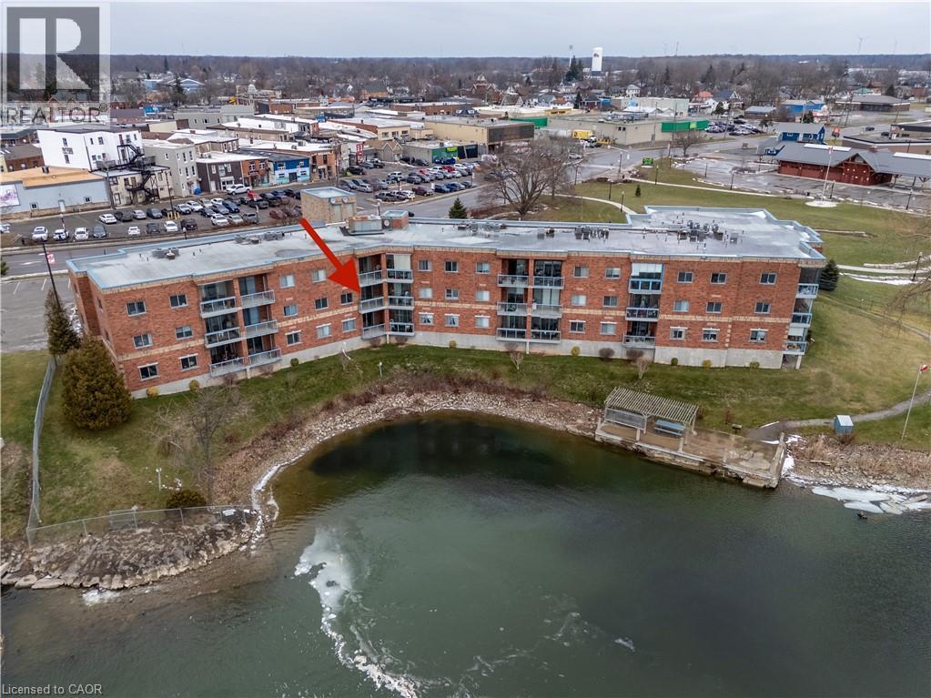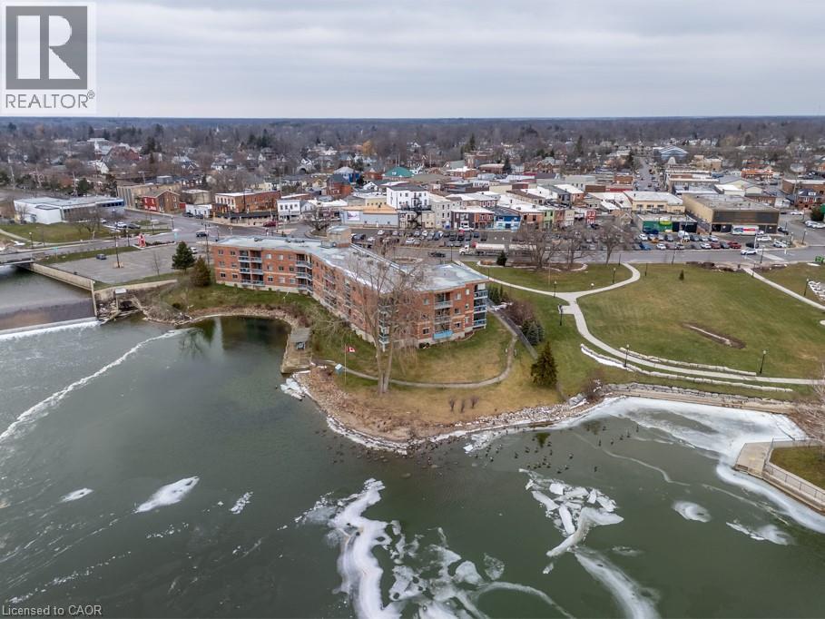 This highly sought-after riverside condominium delivers picturesque waterfront living with coveted south-facing exposure and sweeping views along the Grand River. This well-designed suite offers a popular open-concept layout, creating a comfortable sense of space ideal for everyday living and entertaining. The inviting kitchen includes recent stainless steel fridge, dishwasher, stove and rangehood plus updated microwave (black). Loads of storage in the oak cabinetry and plenty of counter space as well as a convenient bar-height peninsula. The kitchen flows into the generous living and dining area, where sliding glass doors lead to a private balcony overlooking the river. This 1,152 sq ft residence offers two spacious bedrooms. The primary bedroom is complete with a walk-in closet and a 3-piece ensuite bath. The second bedroom enjoys its own separate balcony walkout, adding flexibility for guests, a home office, or a peaceful personal space. 4-piece main bathroom serves the remainder of the unit. Additional features include in-suite laundry with utility/storage space, an exclusive storage locker, an owned underground parking for year-round convenience. Ideally located within walking distance to the heart of Dunnville, residents will enjoy easy access to the Farmer’s Market, boutique shops, cafés, restaurants, parks, hospital, library, and recreation centre. This exceptional condo combines comfort, convenience, and scenic waterfront living—an outstanding opportunity to enjoy all that Dunnville and the Grand River lifestyle have to offer. Updates include carpet in the living room, vinyl flooring in the kitchen, foyer and utility. Updated painting on wall/trim/and interior doors. Bathroom sinks and taps recently replaced. (id:4555)