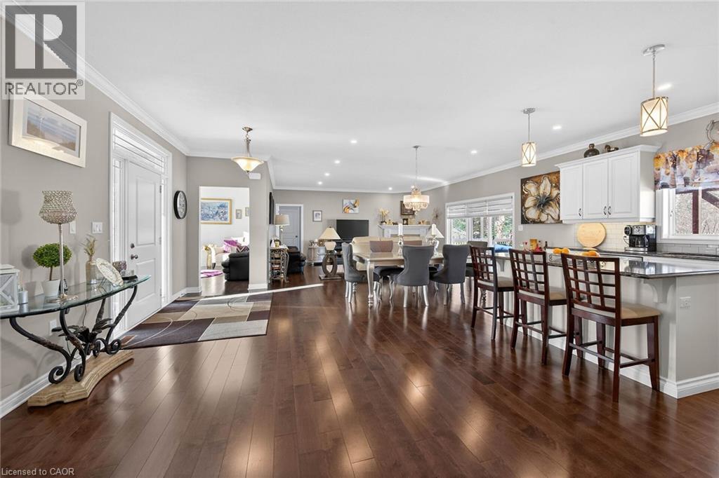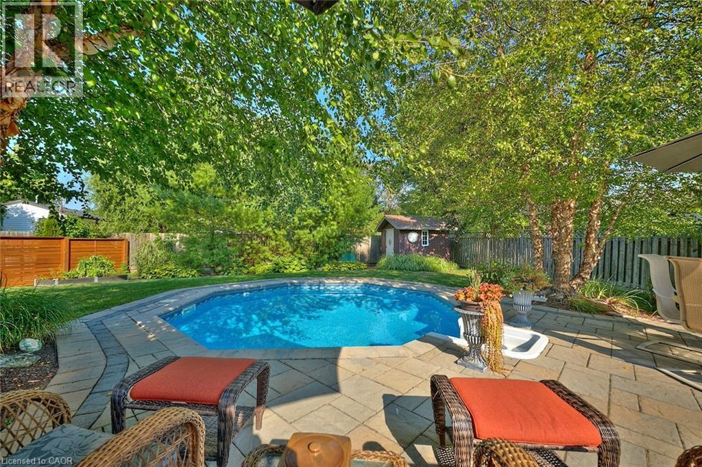 Welcome to 49 Postma Drive located in upscale Dunnville area showcasing 2017 custom built bungalow positioned proudly on beautifully landscaped 0.30ac pie-shaped premium lot surrounded by similarly maintained properties. Close proximity to popular amenities inc Hospital, schools, churches, arena, shopping centers, downtown core & Grand River parks. Prepare to be “WOWED” once entering grand foyer & embrace 2,033sf of exquisite luxury highlighted w/beautiful open-conc. main edifice showcasing “Chef-Worthy” kitchen sporting chic white cabinetry, designer island, granite countertops, tile back-splash & SS appliances. Design flows to living/dining area enjoying warmth of n/g fireplace + 3 panel sliding door WO to 14'x20' covered deck overlooking resort-style rear yard ftrs octagon-shaped heated OG pool & paver stone entertainment patio nestled among mature hardwoods providing natural shade & privacy. Continues past impressive den/office ftrs vaulted ceilings w/natural light beaming thru palladium window - onto North-wing primary suite incs plethora of windows, regular closet & WI closet topped-off w/stylish 5pc en-suite. South-side incs 2 similar sized bedrooms flanking modern 4pc bath - perfect area to segregate children or guests. Convenient MF laundry room provides access to 592sf oversized 2-car garage ftrs 10.5ft ceilings & finished interior. Pristine engineered hardwood flooring & crown moulded 9ft ceilings compliment soft, neutral décor w/sophisticated swagger & flair. Wanting more space - check out expansive 2,033sf lower level incs drywalled/painted perimeter walls, hydro receptacles in place & carpeted flooring - your choice of ceiling finishes. Minimal cost to complete for either extra bedrooms, family rooms, home theatre or gym. Extras - paved double driveway, paver stone walk-ways/patios, multi-zone irrigation, all appliances, n/g furnace, AC, owned water heater, HRV & more! Experience small town living in Executive comfort - who says you can’t have it all! (id:4555)