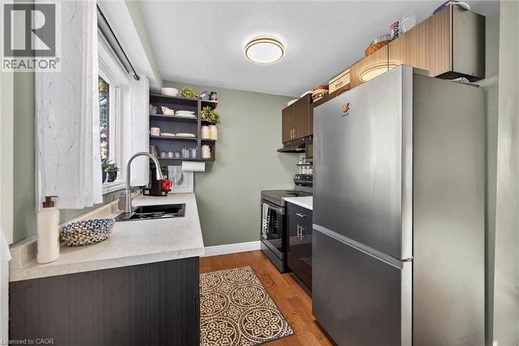 Affordable semi-detached end unit located just minutes from all amenities situated across from the Grand River. Get inside and check out this tastefully renovated home featuring 2 upper-level bedrooms, updated 4pc bath, updated kitchen with access to 22’x10’ rear patio area, privacy fenced backyard, garden shed, and a paved driveway with parking for 4 vehicles. The full unfinished basement provides laundry facilities and extra storage space. Extensive updates completed in 2025 include engineered hardwood flooring throughout, new 5.5” baseboards, fresh paint, upgraded interior door hardware, new kitchen cabinets, countertops, sink and faucet, as well as bathroom vanity, toilet, and mirror. Additional improvements feature new lighting and ceiling fans, enhanced attic insulation (22.5”), Bell hi-speed internet, privacy fabric on fencing, and a vinyl shed. Conveniently located near the marina/boat launch, farmer’s market, grocery stores, schools, banks, downtown shops, arena, park, and hospital. This property is perfect as a starter home or a desirable rental opportunity for investors. (id:4555)