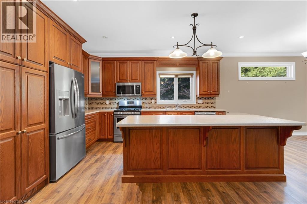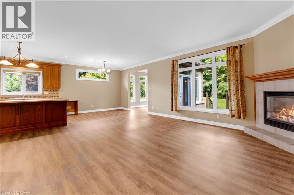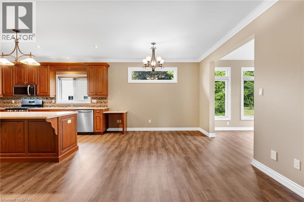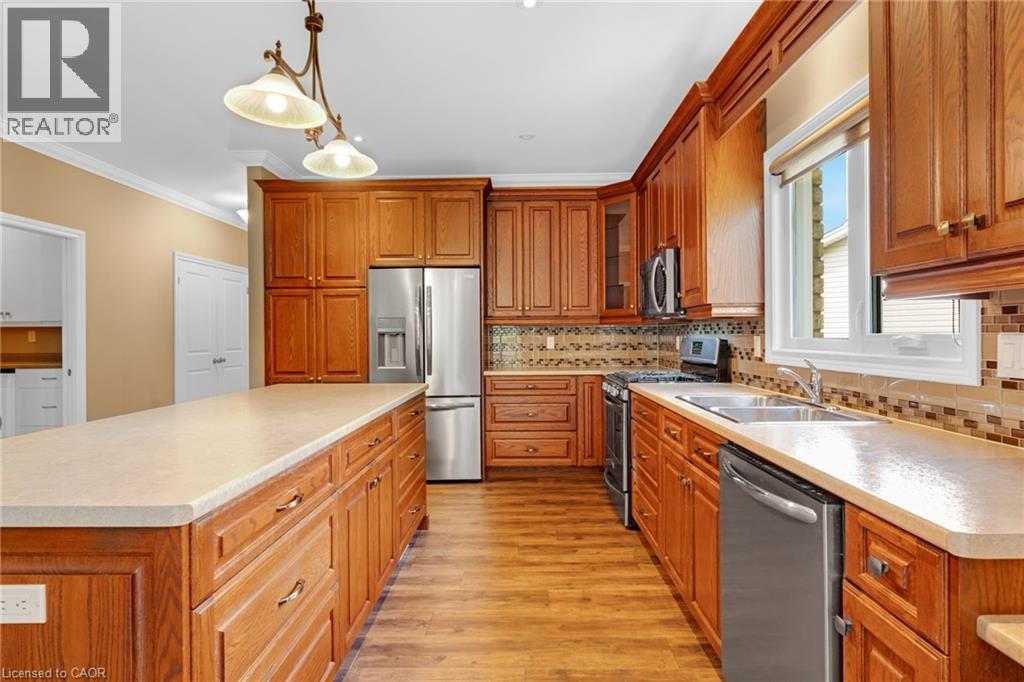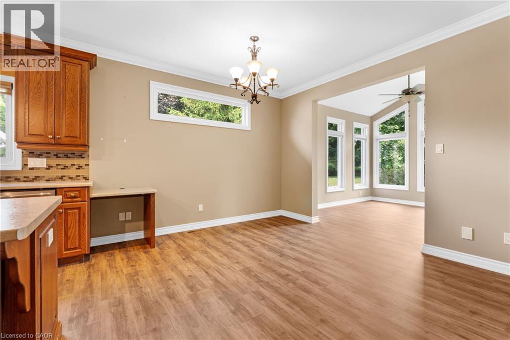 Discover the crown jewel in one of Dunnville’s quietest courts! Nestled on an unrivaled pie-shaped lot – the largest in the court- this stunning 12 year old bungalow is a rare gem. Spanning over 1700sf of elegant main floor living, this 2+2 bedroom home blends modern sophistication with country charm. The open concept main floor dazzles with 9’ ceilings, spotless vinyl flooring, and a show-stopping eat-in kitchen boasting an 8’ island – perfect venue for your culinary adventures! Flow effortlessly into the spacious living room where a cozy gas f/p sets the mood, or gather for your meal in the defined dining space! Main floor is serviced by a 4pc bath. Bonus: 12x12 four season sunroom crowned with cathedral ceiling offers an unparalleled view of your private nearly 0.5 acre lot! The main floor master suite, directly off the living room, features double closets & a luxurious 4pc ensuite. Venture downstairs to a fully finished basement that redefines lower-level living. With 9’ ceilings and oversized windows, this bright, airy space feels anything about ordinary. A massive rec room with a sleek kitchenette and fresh vinyl flooring sets the stage for entertainment, while two generous bedrooms shar a modern 3pc bath. The yard is irreplaceable! A large 13x21 deck overlooks a very private & serene setting with towering deciduous & evergreen trees & backs onto greenspace. You will be hard press to find a setting like this in town. Bonus: double attached garage, paved driveway with handsome soldier course, covered front porch, 8x12 shed, 200 AMPs, all brick, c/vac, +++! Where a rural setting meets town amenities, 28 Maplewood Court can be found to steal your heart. (id:4555)