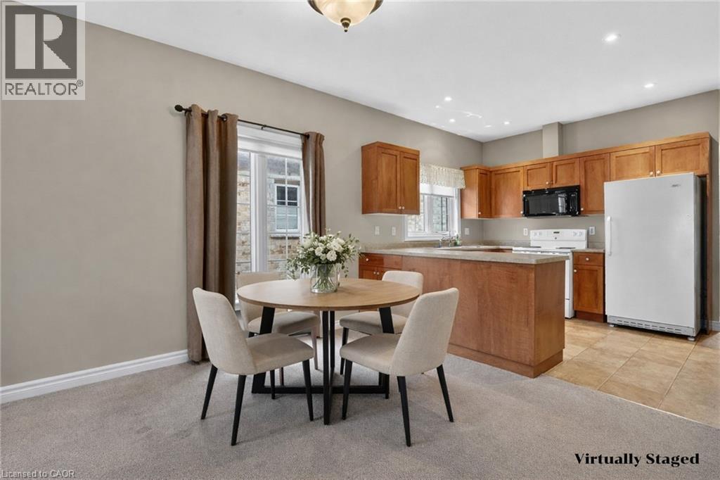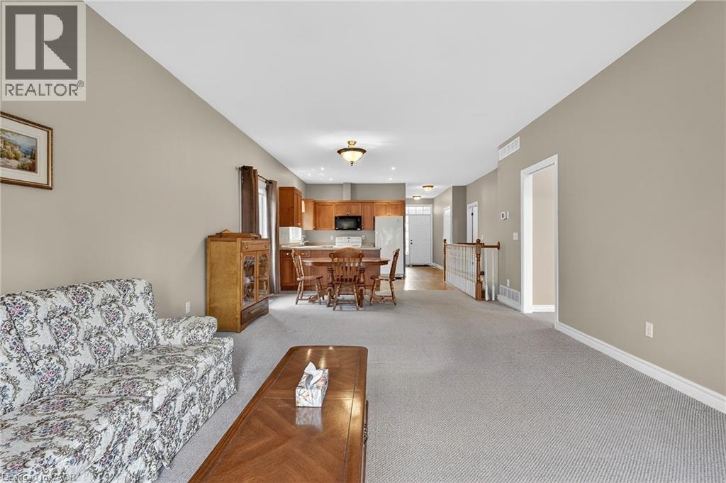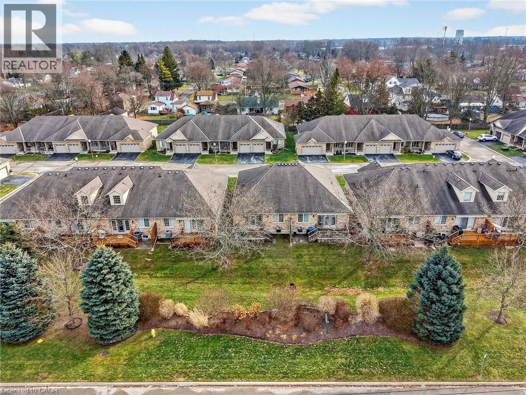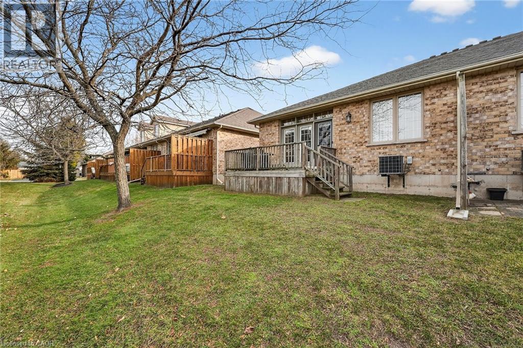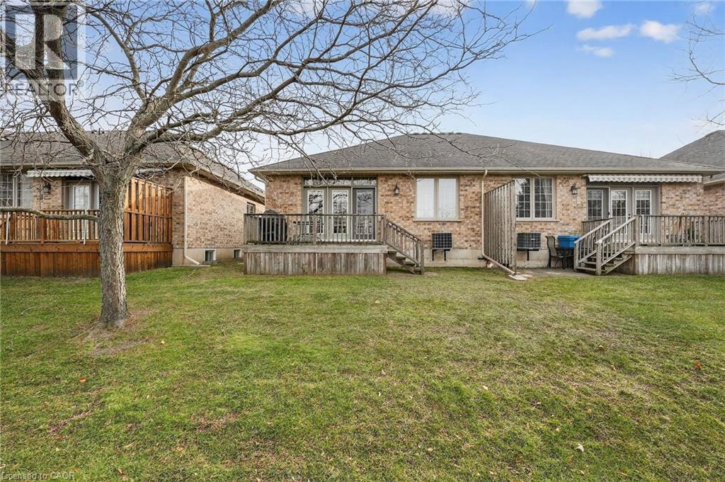 Welcome to easy, maintenance-free living in the desirable Maple Creek Landing community of Dunnville. Built in 2006 and well maintained, this bungalow is perfectly suited for downsizers, retirees, or empty nesters seeking the comfort of one-floor living in a quiet, friendly neighbourhood. The thoughtful 2-bedroom, 1.5 bathroom layout offers both functionality and flexibility. A spacious kitchen flows seamlessly into the warm and welcoming living room, highlighted by a triple-wide patio door that opens to a generous deck—ideal for morning coffee or relaxed outdoor entertaining. The primary bedroom features a walk-in closet, while the second bedroom works equally well as a guest room, home office, or private library. Designed with convenience in mind, the home includes main-floor laundry with stackable washer and dryer, a 2-piece bath, owned water softener, and included accessibility equipment for those with mobility considerations. The unfinished basement provides excellent storage today, with the added bonus of a bathroom rough-in for future living space if desired. Enjoy a worry-free lifestyle with a condo fee that covers building insurance, exterior maintenance (including shingles and windows), common elements, lawn maintenance, parking, and snow removal. Ideally located just minutes from the downtown core, hospital, community centre, and Grand River, this exceptional bungalow offers comfort, peace of mind, and effortless living in a fantastic Dunnville community. Note: some photos have been virtually staged. (id:4555)