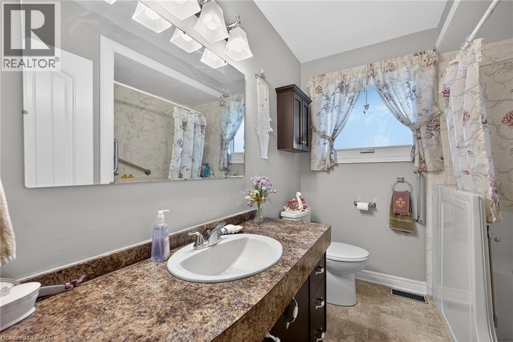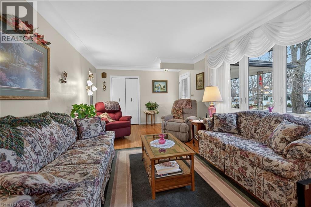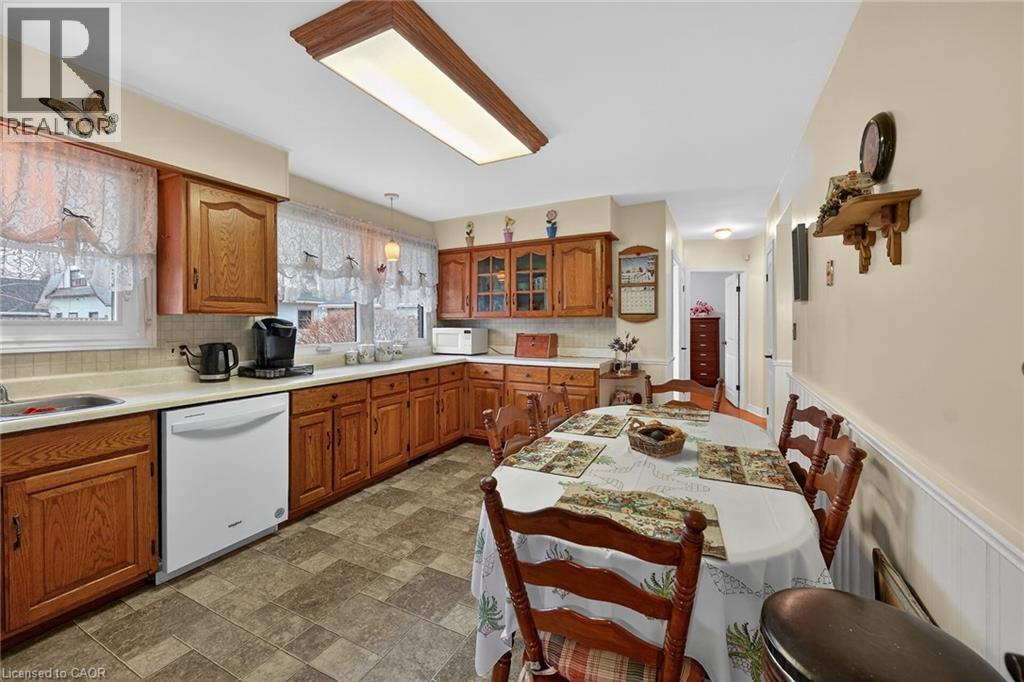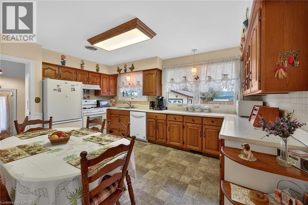Lovingly maintained all brick 1965 built bungalow with finished basement and detached garage (blt in 2017) on mature treed 56x124ft lot in quiet area of Dunnville. This solid super clean home offers 3 bedrooms, 2 full bathrooms, large country sized eat in kitchen with oak cabinetry, gleaming original hardwood floors, and good sized lower level family room with gas fireplace. Lots of important updates including all new vinyl windows in 2000, asphalt roof shingles 2018, natural gas high efficiency furnace with central air – replaced in 2009, owned hot water tank 2012, and water purification/softener system – still under warranty. The house has 100 amp electrical and is wired ready for a generator. The upper level bathroom has a walk in bathtub for ease of use if needed, and the lower level tub is a relaxing jacuzzi. Outside features a quaint covered front porch, parking for 3 to 4 cars, and lots of gardens to enjoy! Detached single car garage with concrete floor, power, and two windows - would make a great man cave. No worries here – come live quiet small town life in Dunnville! (id:4555)