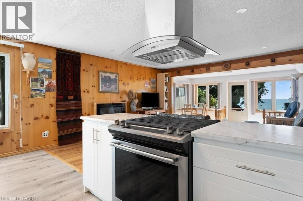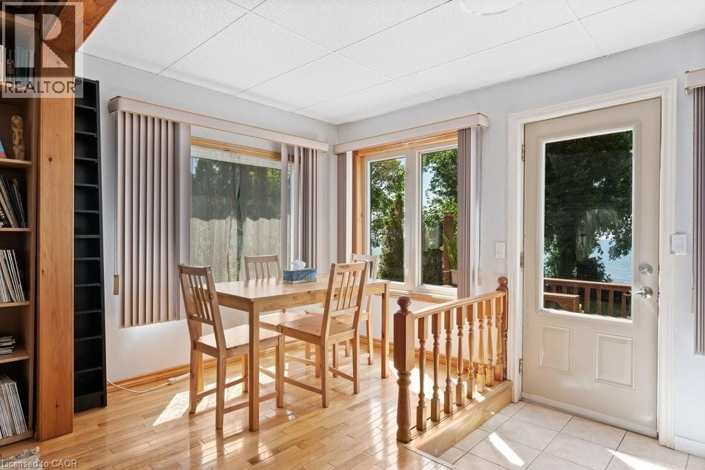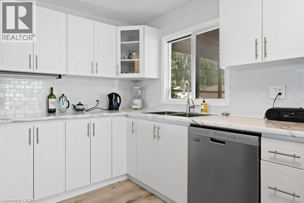 Welcome to the lake! This spacious year round home is nestled on a deep lot and features sandy beach waterfront – perfect for making summer memories. Relax on the concrete patio at the break wall, with metal stairs leading to the soft sand and sparkling water – the gentle slope into the water and sandy beach / bottom make this an ideal location for swimming or launching your paddle board or kayak. Inside the open concept living area is perfect for entertaining friends and family. The kitchen features stainless steel appliances, loads of storage and counter area, and a bright dinette and sunroom spaces to soak in the lake views. The large basement recroom is complete with a cozy fireplace and an additional den or bedroom, an ideal retreat for movie nights or game days. This home boasts thoughtful upgrades including an “Omni” basement system for peace of mind, a durable metal roof, and 1.5 car garage. The paved driveway easily accommodates up to four cars. Step out onto the upper-level deck for your morning coffee, enjoy alfresco dinners on the lower patio, and find serenity at the patio overlooking the lake. Here, every day is a vacation—summer fun, relaxation, and cherished moments await you at the lake! Laundry to be hooked up prior to closing. (id:4555)