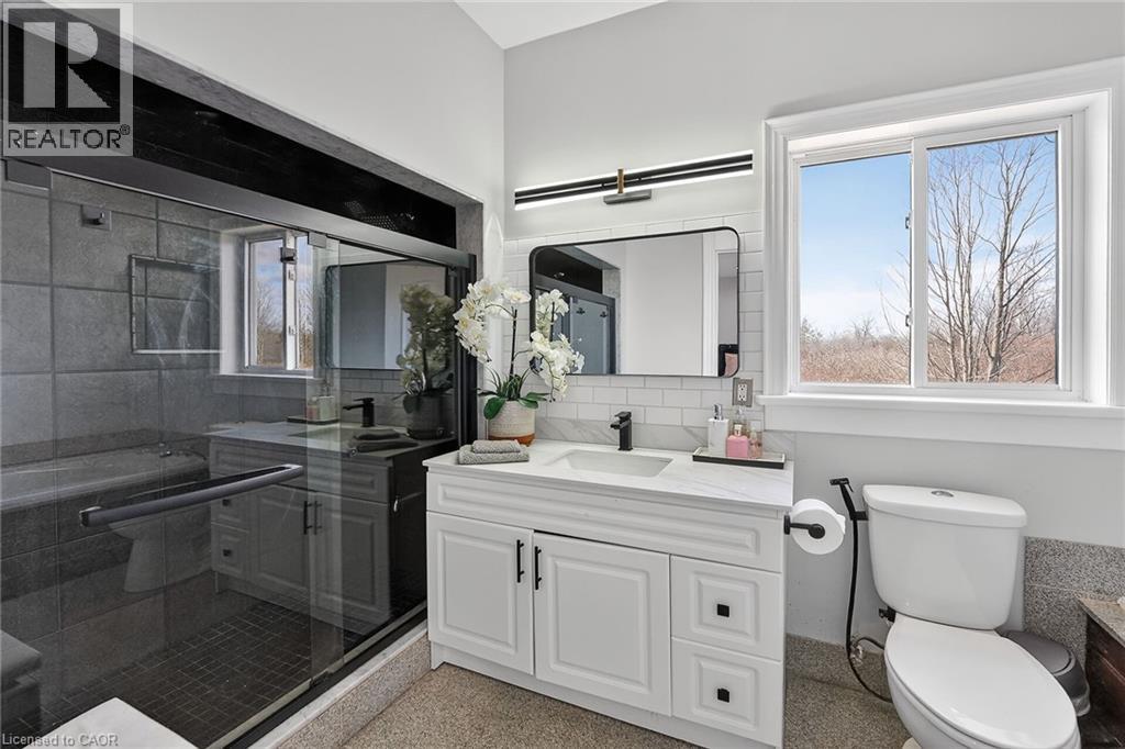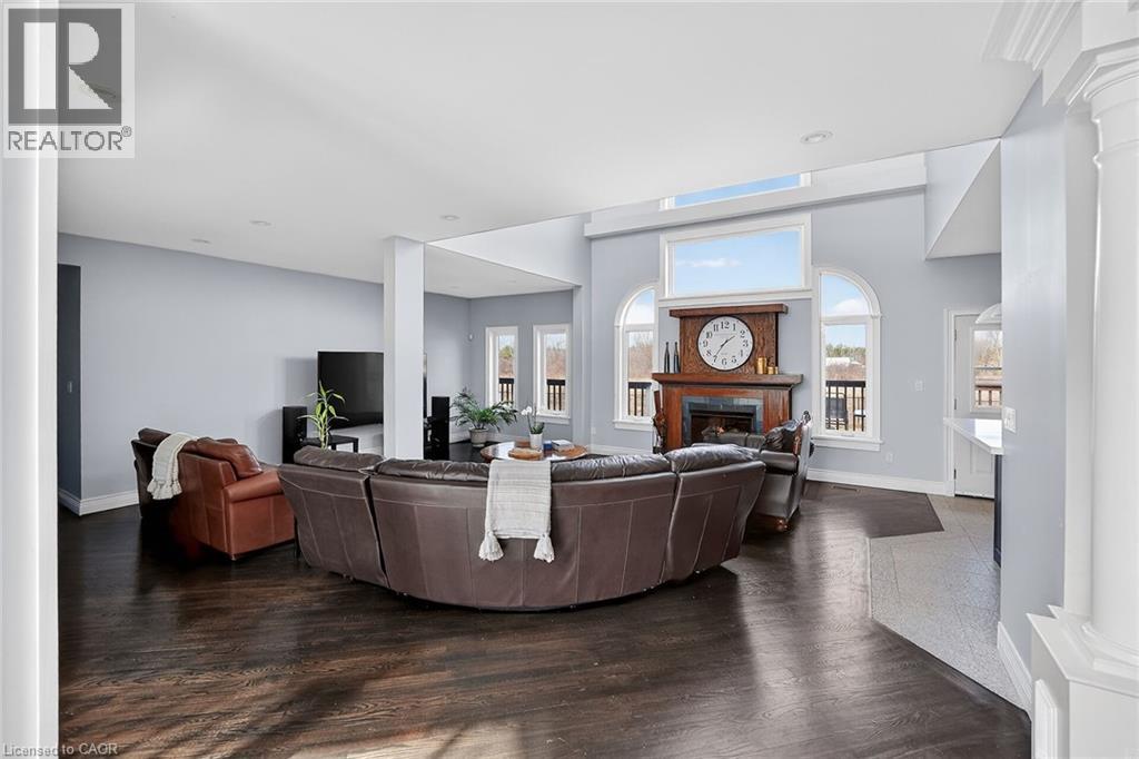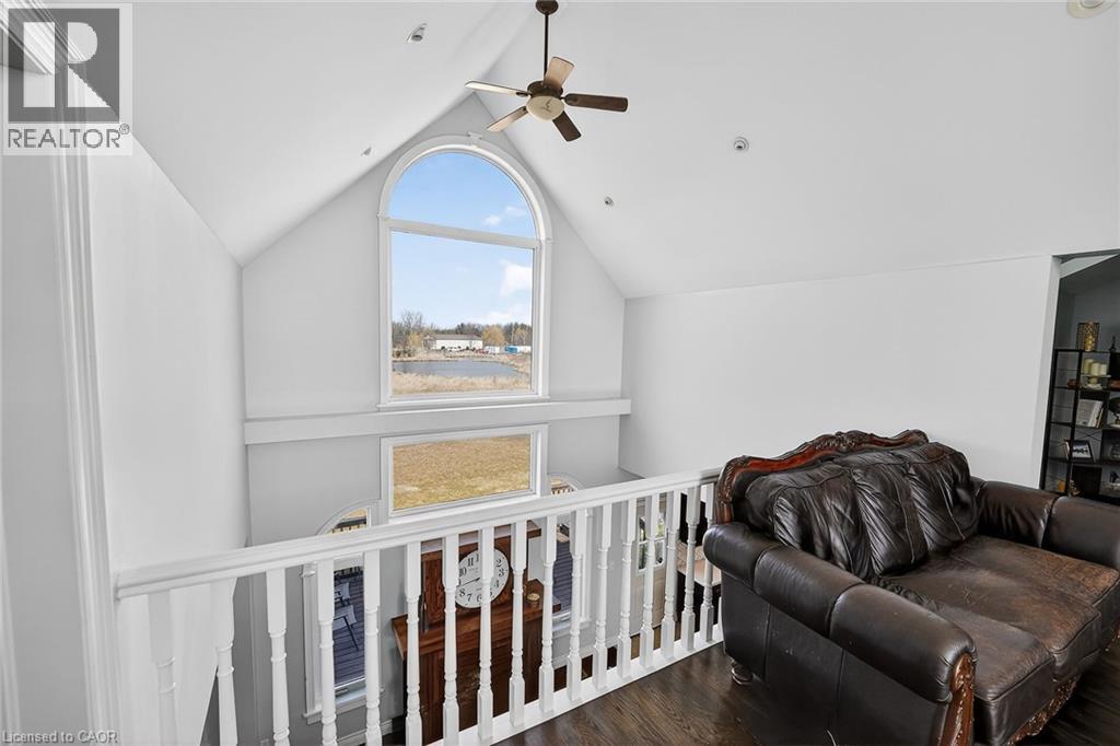 Set across four adjoining lots (4481, 4485, 4491 & 4495 Haldimand Road 20), this 5-bedroom, 4-bathroom bungaloft delivers a unique combination of luxury living and long-term upside. Surrounded by nature yet conveniently located minutes from downtown, the property offers walkable access to Byng Island Conservation Area, home to Canada's largest outdoor pool along with nearby boat launches to the Grand River and Lake Erie. Inside, the open concept main level is anchored by a grand two-story foyer and a light-filled great room with soaring windows and a fireplace. The space flows seamlessly into a formal dining area and a well-appointed kitchen featuring granite countertops and stainless-steel appliances. The main floor primary suite offers privacy and functionality, complete with a walk-in closet, spa-style ensuite, and private access to an expansive deck overlooking water views and mature greenery. The upper level adds flexibility with a secondary living space, private office, and guest suite with its own ensuite, ideal for extended family, Airbnb or work-from-home living. The lower level, with separate access, provides additional living space with strong potential for multi-generational use or future customization for additional income. This property stands out as a rare offering, ideal for end-users seeking space and privacy, or buyers looking to secure long-term value in a growing area. (id:4555)