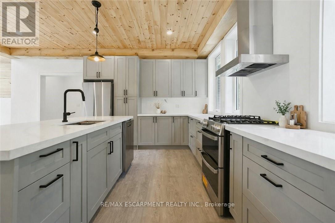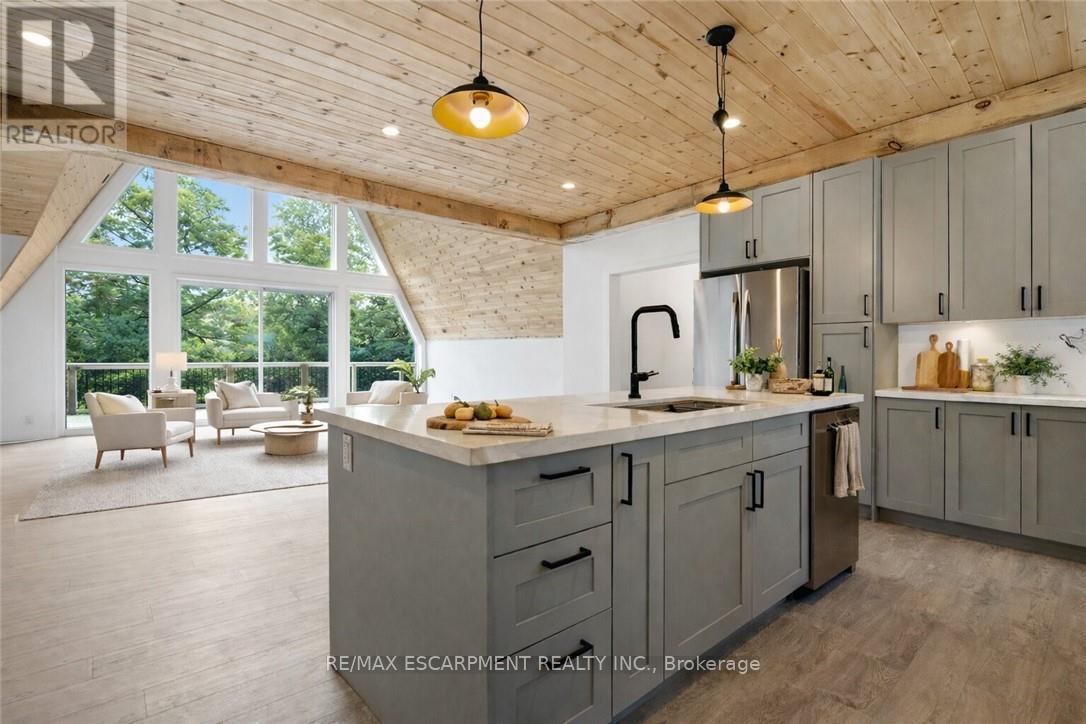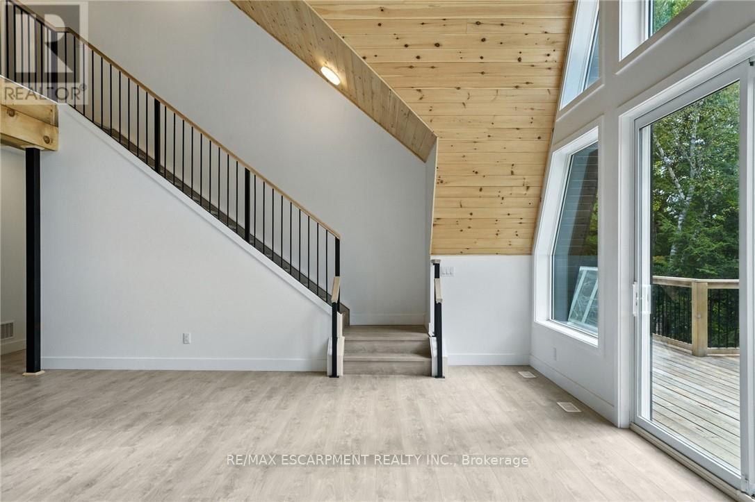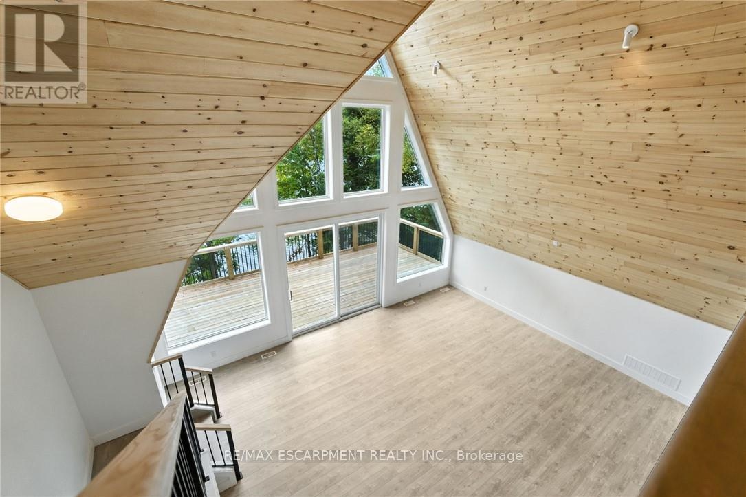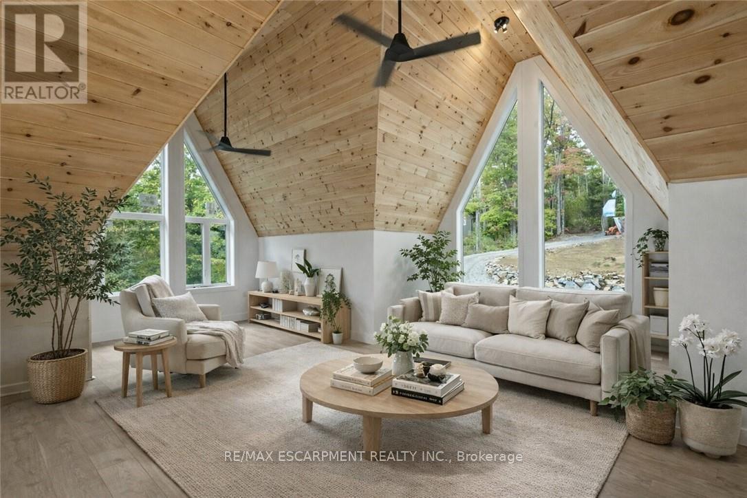 Exceptional opportunity to own this newly completed & distinguished 3-bed, 2-bath A-frame plus contemporary addition, commanding 120 ft of spring-fed Wenona Lake shoreline - where refined design, architectural impact &superior craftsmanship converge w/ quiet confidence. This custom-built residence has been masterfully constructed w/ superior ICF foundation, steel roof/siding & high-performance mechanical systems - engineered for outstanding efficiency, structural integrity & low-maintenance living. Conceived as an investment for generations to come, peace of mind is further enhanced by a comprehensive warranty by renowned luxury builder, Bridge co Homes. Discreetly set back from year-round municipal road, its true scale revealed only upon entry through a bright foyer &well-appointed mudroom, opening seamlessly into a chef-inspired kitchen w/ wet island, stainless steel appliances, generous quartz countertops & walk-in pantry. The open-concept living/dining grand room is defined by a pine-clad cathedral ceiling, expansive windows & striking loft above - making this home equally suited to upscale entertaining or restorative retreat. Spacious primary features walk-out to large deck, walk-in closet & spa-like 5 pc ensuite w/double vanity, W/I shower & elegant freestanding bath w/ breathtaking forest & lake views. Two additional bedrooms, a refined 3-pc bath & main floor laundry provide comfort & everyday ease within the thoughtfully separated sleeping wing. The lower level offers significant additional space, complete w/ cold room & ground-level walk-out to the lake - ready to be curated to your vision & lifestyle. Enjoy serene morning coffees on the deck w/premium west-facing exposure&experience spectacular sunsets amid Ontario's most breathtaking landscapes. Minutes to Haliburton Village for boutique shopping, golf, hospital, dining & a vibrant arts community - offering an ideal balance of refined convenience&exceptional four-season lakeside living. Luxury Certified. (id:4555)