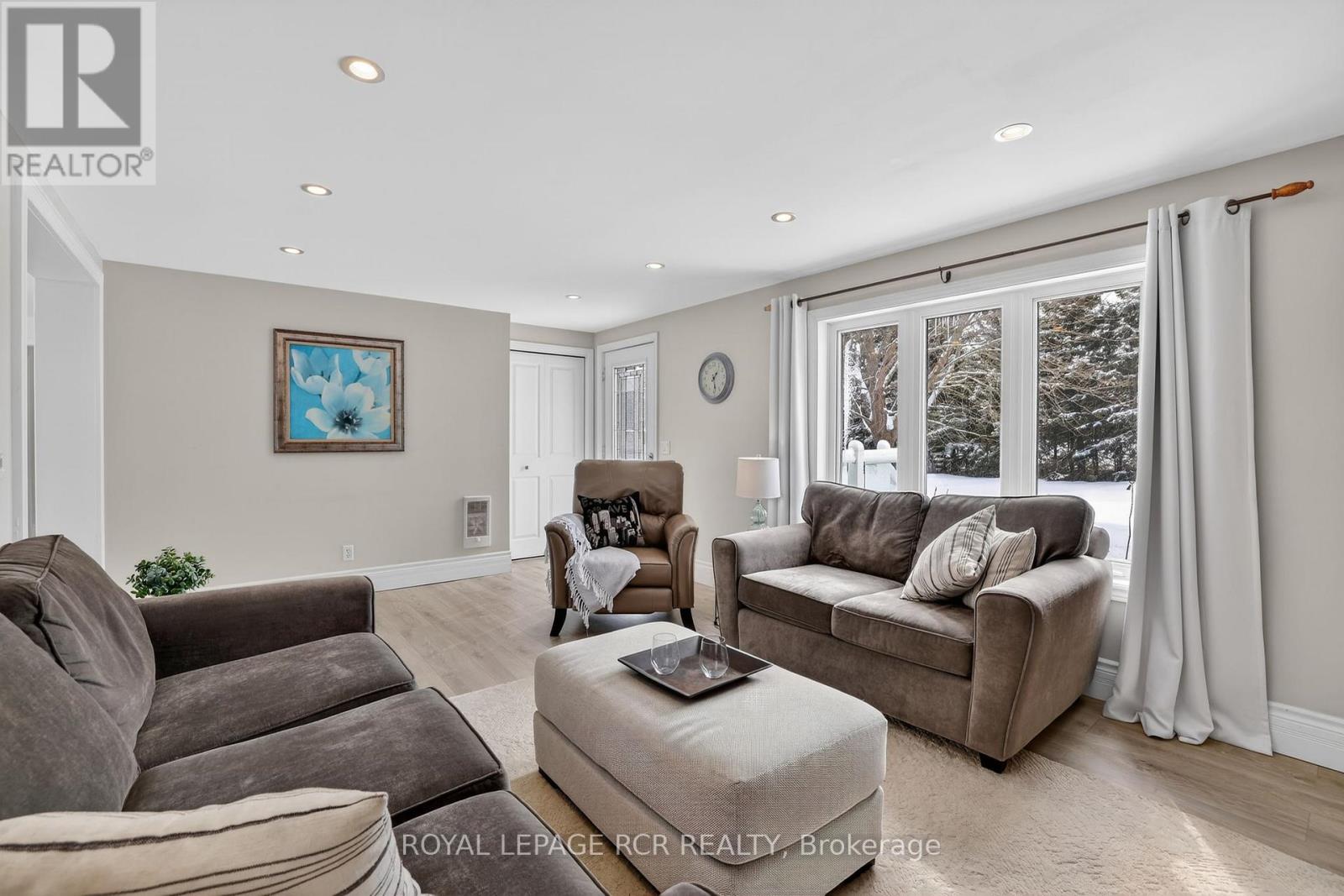 *****BE SURE TO CLICK THE VIDEOS BUTTON ON REALTOR.CA TO VIEW THE FULL VIDEO TOUR OF THIS AMAZING HOME**** Welcome to this thoughtfully designed, modern bungalow set on a very private and scenic 1.25-acre lot, surrounded by mature trees and offering exceptional privacy. Ideally located just 15 minutes from both Orangeville and Fergus, and near Trafalgar Road, this home offers a great commuter location while still enjoying the peace and seclusion of country living. Completely renovated from top to bottom, this very bright home features neutral décor throughout and has been exceptionally maintained. The modern kitchen showcases quartz countertops, stainless steel appliances, and a walkout to a private deck overlooking the grounds, complete with a hot tub and pergola - perfect for relaxing or entertaining in total privacy. The sun-filled main floor family room is a true focal point, featuring a gorgeous modern fireplace with custom built-in cabinetry, creating a warm yet sleek living space. The spacious primary bedroom offers his and her closets, while two additional bedrooms, a stylish main floor full bathroom, and a convenient powder room complete the main level. A side entrance leads to a practical mudroom, ideal for everyday living. The finished basement expands the living space with a spacious recreation room, a dedicated exercise area, and a second full bathroom. Both full bathrooms feature heated floors for added comfort. An oversized double car garage provides excellent storage and utility. Set back from the road, this beautifully landscaped and private 1.25-acre property has been carefully planned and designed throughout. A must-see home, best appreciated in person! (id:4555)