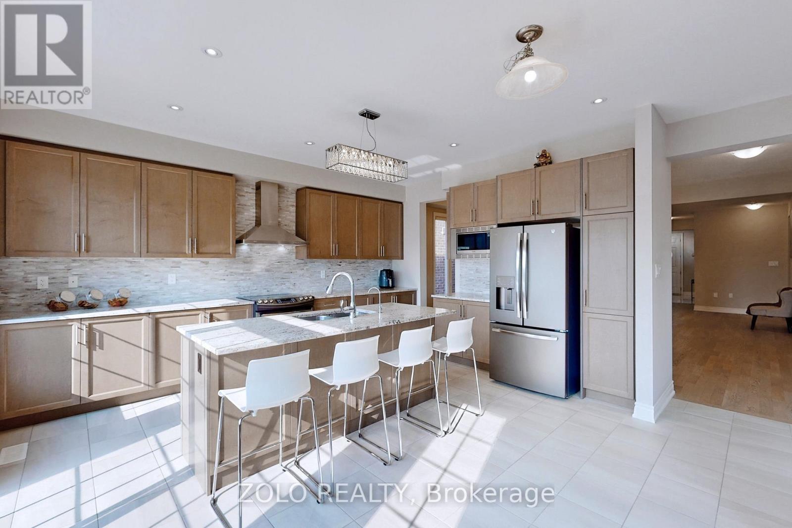 Welcome to this impeccably maintained, Great Gulf-built detached home, featuring 5 spacious bedrooms, 5 bathrooms, a 2-car garage, and a 4-car driveway all set on a stunning ravine lot with a walkout basement! Nestled in a quiet cul-de-sac, this exceptional property offers both privacy and convenience. Step inside to soaring 9-foot ceilings on the main floor and impressive 8-foot double-door entry. The foyer greets you with gleaming ceramic tiles, pot lights, and an open-concept layout filled with natural light and designer finishes. The main level boasts a chef-inspired kitchen complete with granite countertops, ceramic backsplash, and a breakfast area with walkout to the deck perfect for entertaining. Enjoy a seamless flow through the elegant living and dining rooms, cozy family room with gas fireplace, private office, powder room, and a functional laundry room. Engineered hardwood flooring runs throughout both the main and upper levels, adding warmth and sophistication. Upstairs, you'll find five generously sized bedrooms and four full bathrooms, including a luxurious primary suite with a massive walk-in closet and a spa-like 6-piece ensuite. Four of the five bedrooms feature ensuite access, offering unparalleled comfort for the whole family. Located just minutes from the GO Station, Costco, shops, restaurants, parks, trails, and with easy access to major highways this turnkey home delivers space, style, and location in one exceptional package. Don't miss your opportunity to own this stunning ravine-lot home! (id:4555)