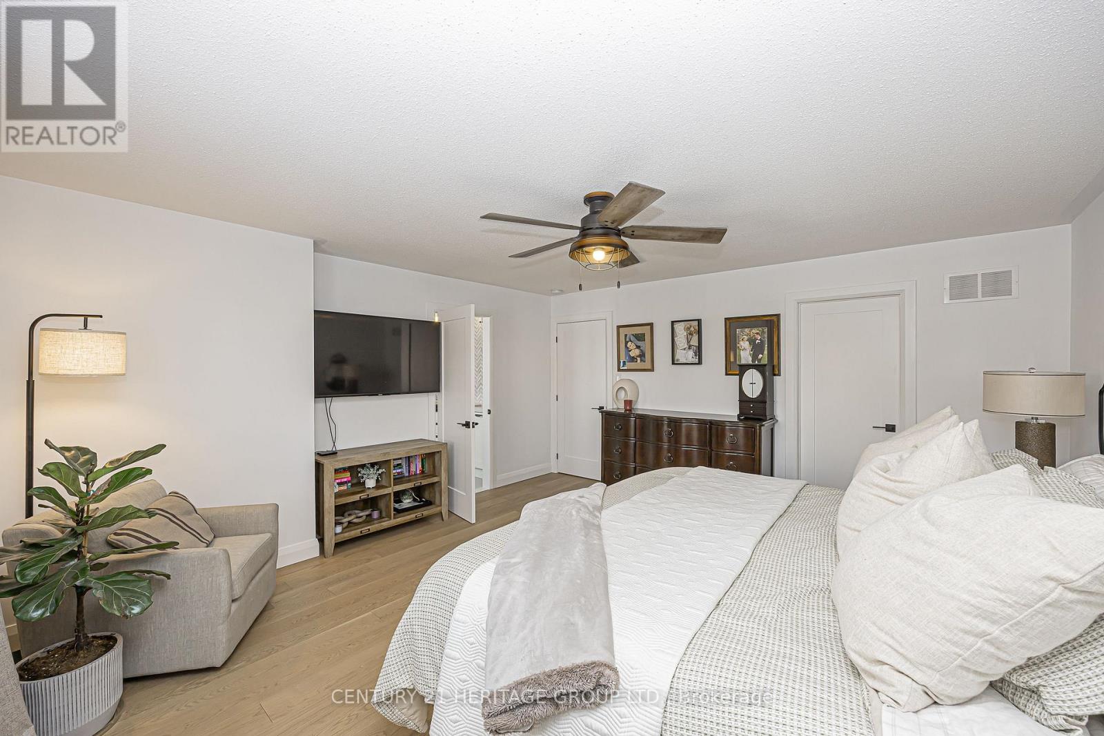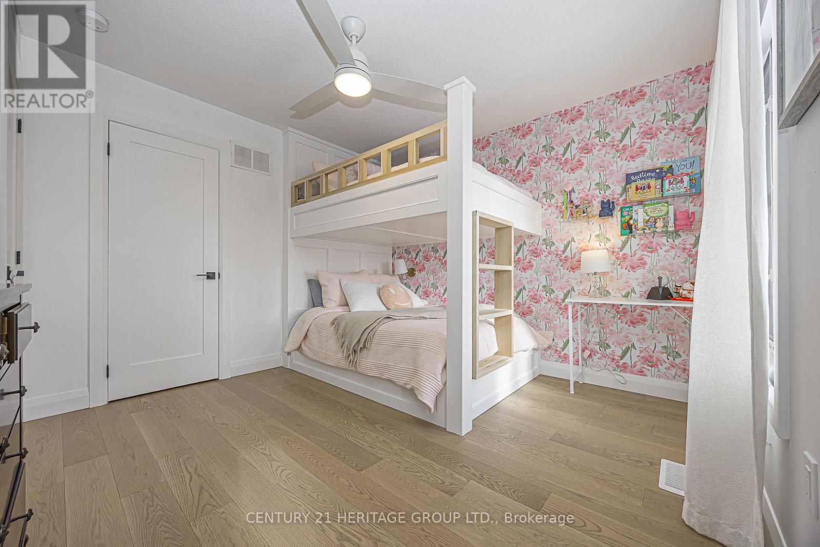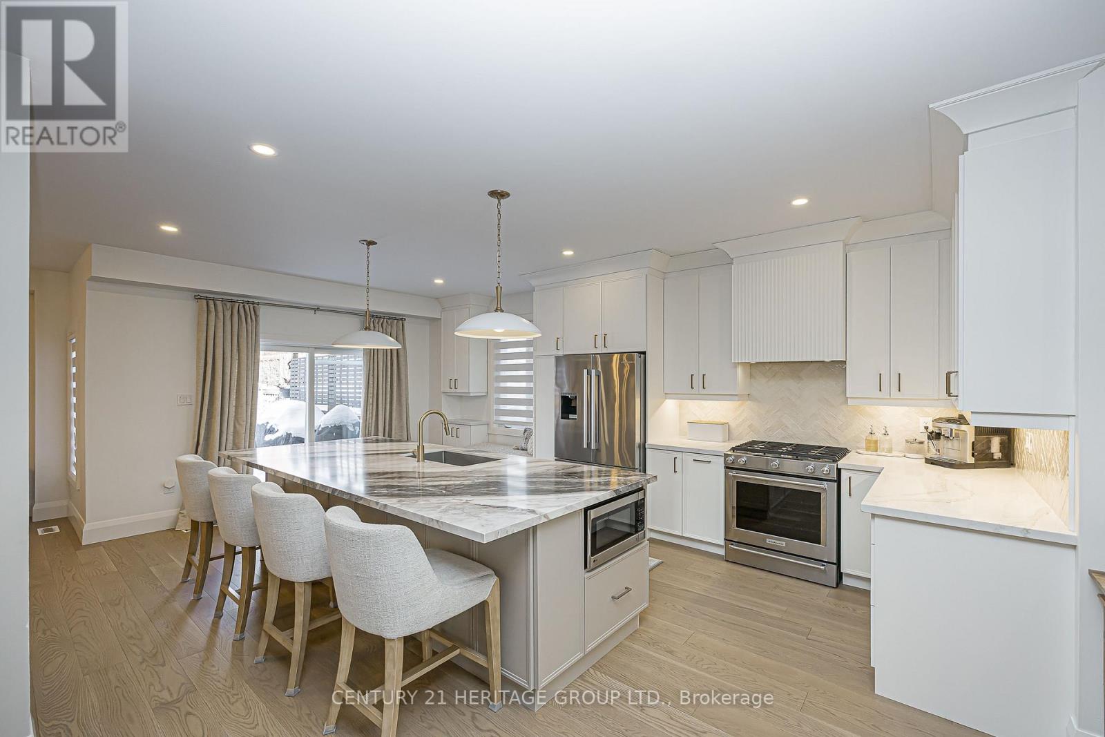 This beautifully updated 4 bedroom home offers thoughtfully designed living spaces & exceptional functionality. A charming covered front porch welcomes you inside to a bright, airy foyer with soaring ceilings. At the heart of the home is the stunning modern kitchen, showcasing custom cabinetry, a stylish backsplash, under-cabinet lighting, stainless steel appliances, quartz countertops & an impressive oversized center island with breakfast bar & pendant lighting. A walkout from the kitchen provides seamless access to the backyard, perfect for indoor-outdoor dining. The dining room offers an inviting space for family meals & special gatherings. The living room features a cozy gas fireplace flanked by custom built-ins & a large window overlooking the backyard. A convenient main-floor office is ideal for working from home, while a 2 piece powder room completes this level. The upper level boasts a spacious primary suite with a large walk-in closet & a spa-inspired ensuite featuring a double-sink vanity & a glass-enclosed shower with dual rain showerheads & handheld sprayers. Three additional generously sized bedrooms-one with a built-in bunk bed-offer ample closet space & large windows & share a well-appointed 4 piece bath. Just a few steps down from the main floor, the laundry room is thoughtfully equipped with cabinetry, a folding table, laundry sink & storage closet. The fully finished basement includes a comfortable recreation room with durable vinyl plank flooring, a 2 piece bathroom, & plenty of storage space. A practical mudroom on the lower level features tile flooring, a double closet & walkout access to the garage. The fully fenced backyard offers a deck & gardens, creating an ideal setting for relaxing or entertaining during warmer months. Extensively renovated & truly move-in ready, this home combines modern comfort with family-friendly living in a sought-after location. See attached list of updates. (id:4555)