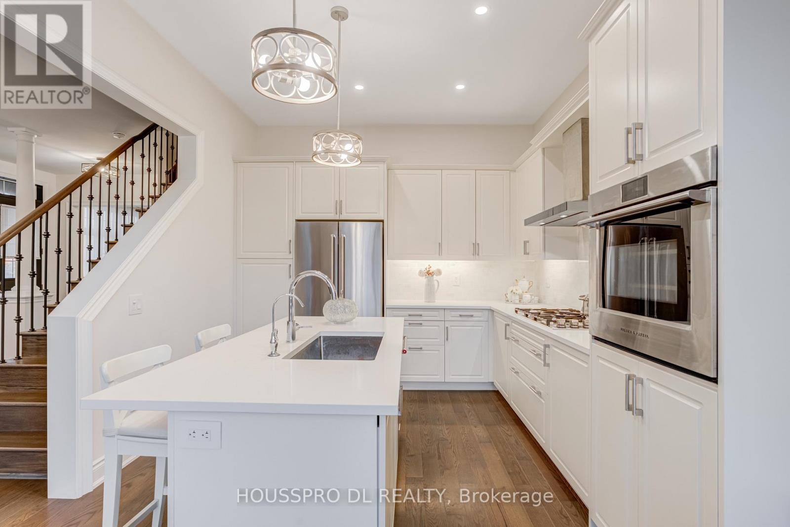 Stunning detached home on a premium corner lot, a residence that perfectly blends timeless elegance, modern comfort, and an unbeatable location.Welcome to this extraordinary detached residence perfectly positioned on a scenic corner with beautiful ravine views, offering unmatched privacy, views, and natural surroundings. Its majestic stone-and-brick exterior delivers breathtaking curb appeal, showcasing timeless design and elevated craftsmanship from the moment you arrive.Step inside the main level defined by an elegant centre hall plan featuring custom soaring 10-ft ceilings and large windows throughout creating a bright, expansive atmosphere ideal for both everyday living and sophisticated entertaining. At the heart of the home lies the gourmet kitchen, complete with built-in premium appliances, upgraded cabinetry, built in custom banquet seating and exceptional storage - a true chef's haven designed for function and style.Upstairs, the enhanced second-level floor plan offers three oversized bedroom retreats, each thoughtfully designed with its own private ensuite and walk-in closet. This rare configuration provides the ultimate in comfort, convenience, and privacy for family members and guests alike.Walking distance to community centre, parks, trails, top-rated schools, YRP Transit. With easy access to Highways, Upper Canada Mall and everything a young family needs this beauty delivers a lifestyle defined by convenience, elegance, and distinction. Every corner reflects sophistication and warmth - A true haven of refined living for families of all sizes. Come Home to your personal sanctuary and embrace the finest in living at 136 Carriage Shop Bend, Where timeless design meets modern luxury. (id:4555)