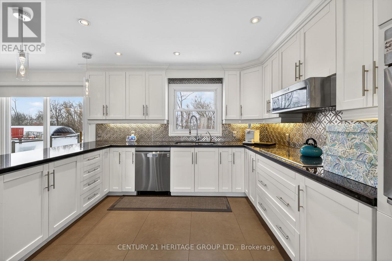 Welcome to this beautifully maintained bungalow set on approximately 3 acres of scenic land just north of Mount Albert, offering an exceptional blend of privacy, space, and convenience. Thoughtfully updated and meticulously cared for, the home features an updated kitchen and main bathroom, along with a recently renovated 5-piece primary bedroom ensuite. Elegant maple hardwood flooring flows through the bedrooms, dining room, and family room, complemented by high-end tile throughout the main level. The modern kitchen is richly appointed with granite countertops, pot and pan drawers, crown moulding, under-mount sink, under-valance lighting, backsplash, and a combination of pot and pendant lighting. Both the breakfast area and family room offer walk-outs to the rear deck, ideal for enjoying the surrounding countryside. The finished basement adds versatile living space with durable laminate flooring and a cozy WETT-compliant wood-burning fireplace. A large attached two-car garage, separate storage shed, and generous basement storage provide ample room for vehicles, tools, and recreational equipment. A fantastic opportunity to enjoy peaceful country living with modern updates and everyday comfort. (id:4555)